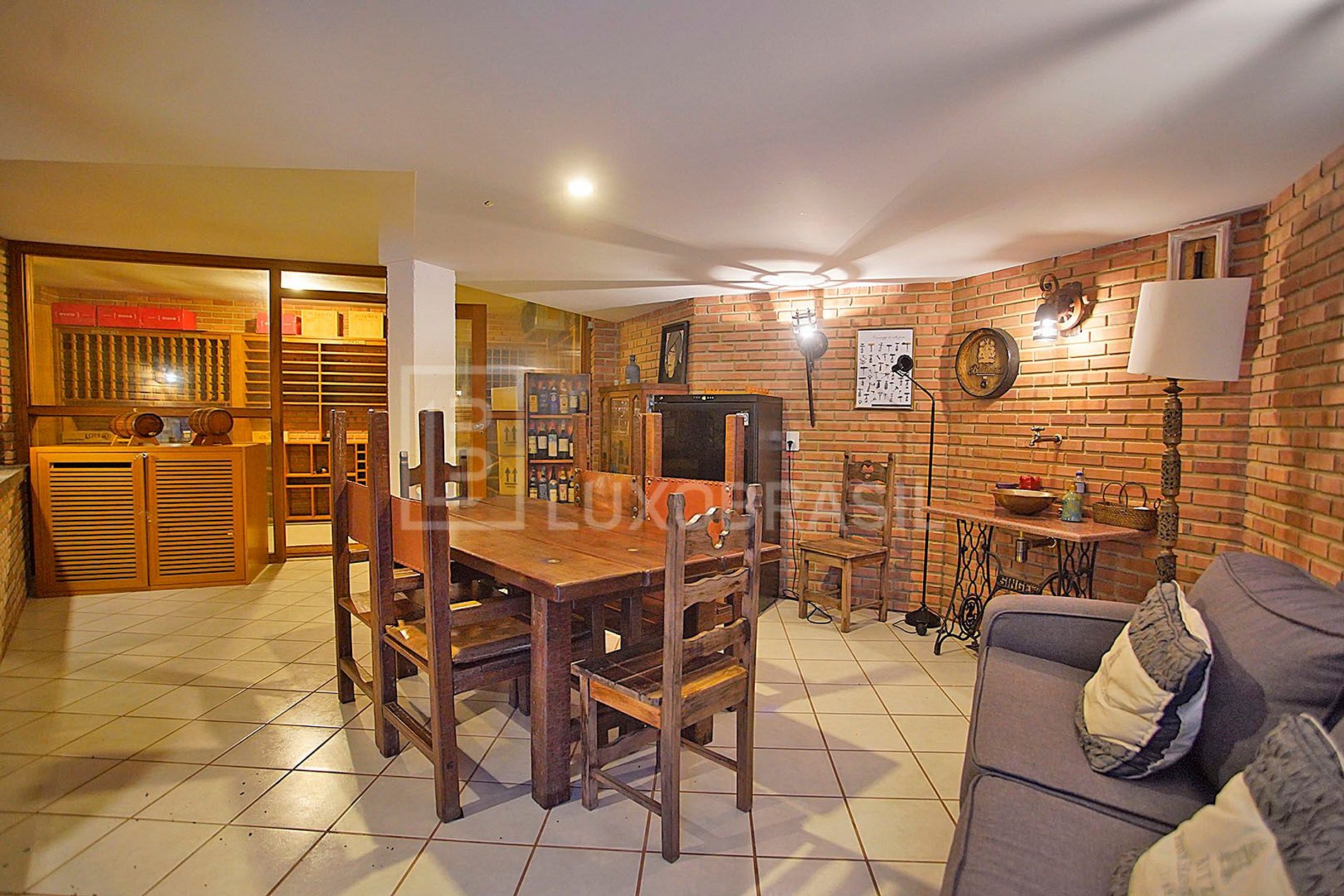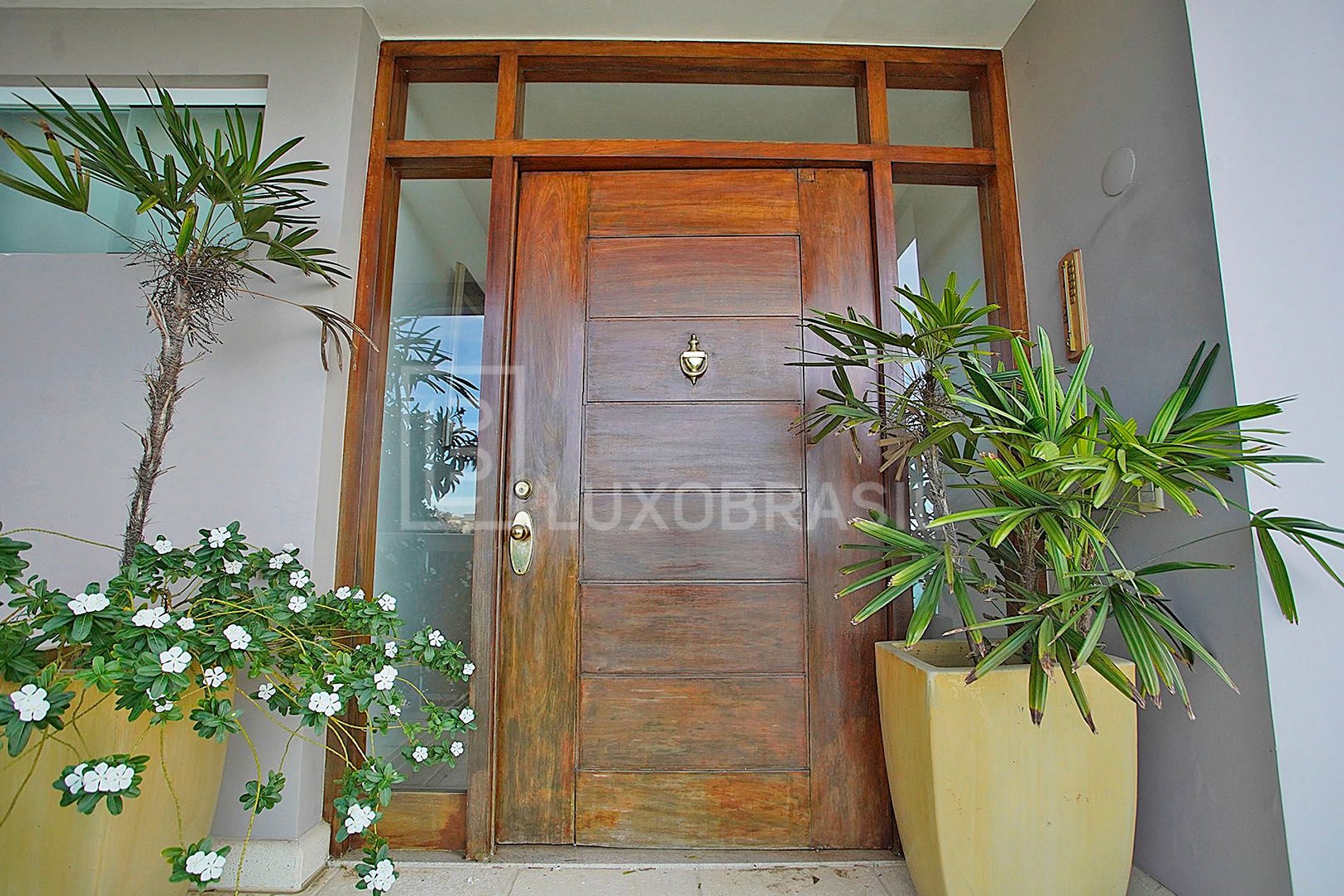 Com 60 metros de frente, e localizada em uma curva privilegiada da rua, a casa foi projetada de forma única, avançando em relação aos vizinhos, garantindo privacidade total e um cenário de tirar o fôlego.