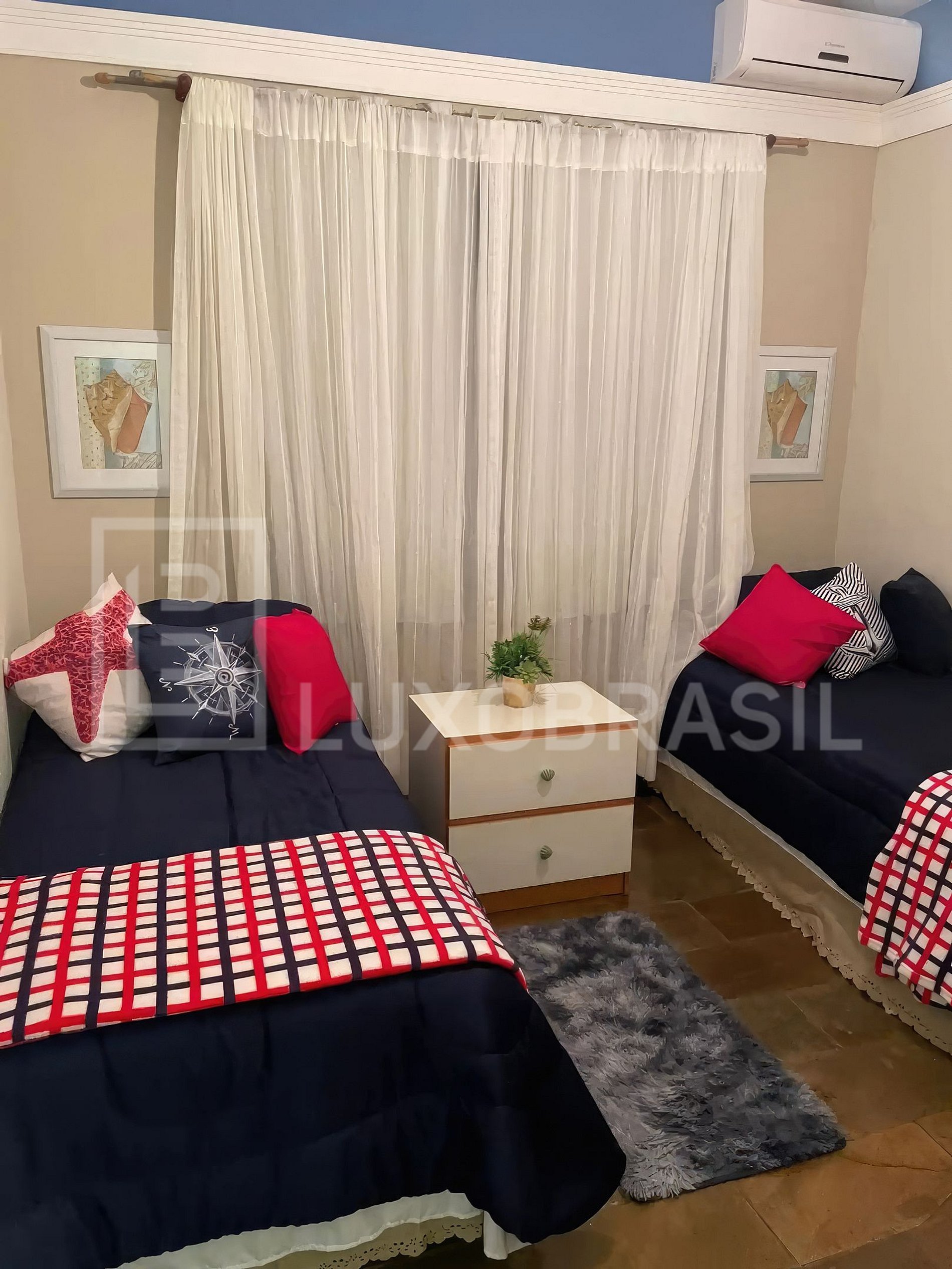 No terceiro andar, encontram-se os quartos, todos equipados com ar condicionado para garantir o máximo conforto.