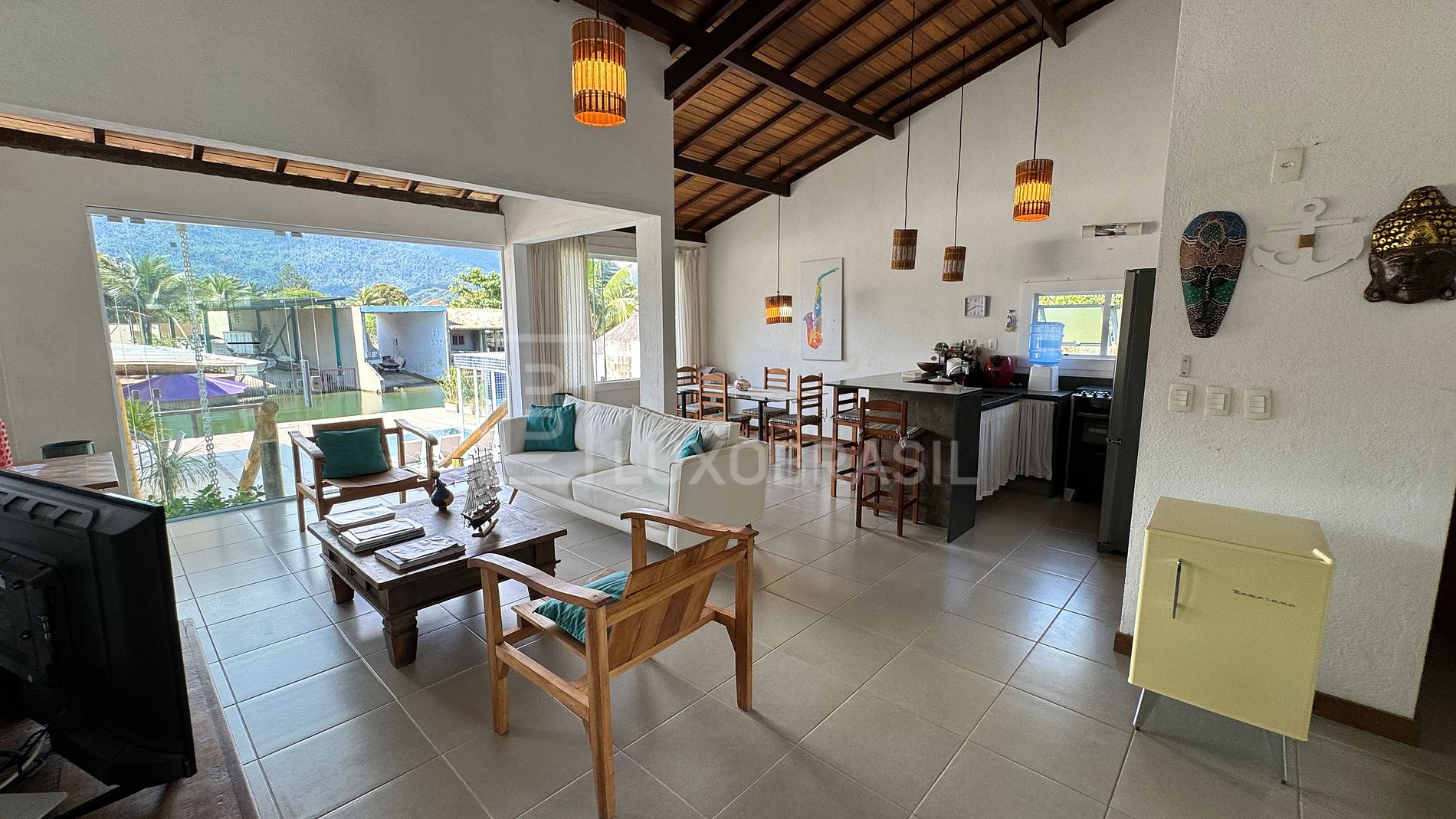 A cozinha, elegante e totalmente equipada, se funde harmoniosamente com a sala de estar e jantar, criando um espaço sociável e funcional. A ampla varanda externa é o destaque, proporcionando vistas deslumbrantes do Canal do Porto Bracuhy. Com piscina refrescante, sauna relaxante, churrasqueira e forno, esta área externa é um convite irresistível ao entretenimento ao ar livre, tornando cada momento memorável.