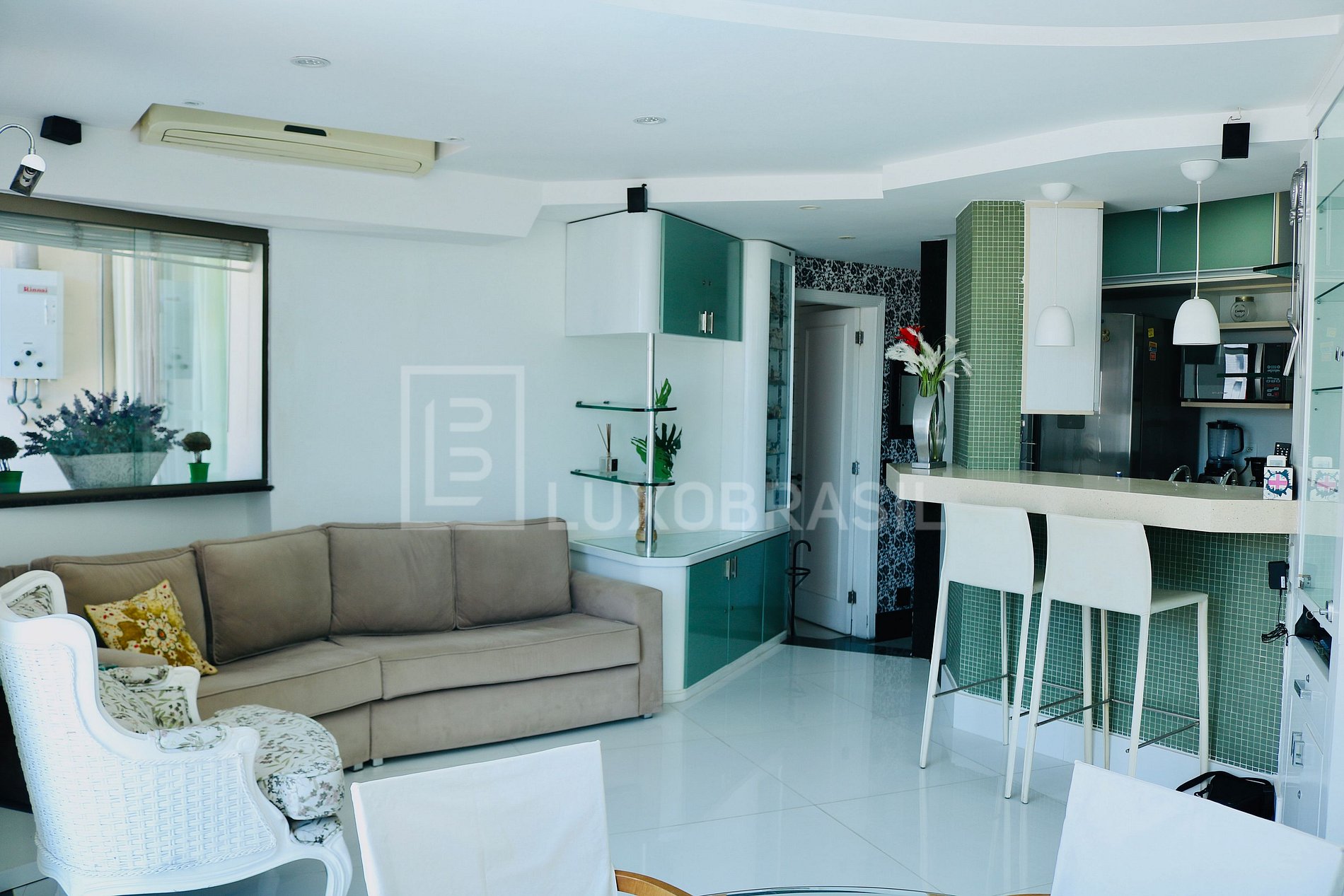 Sala ampla com cozinha americana integrada