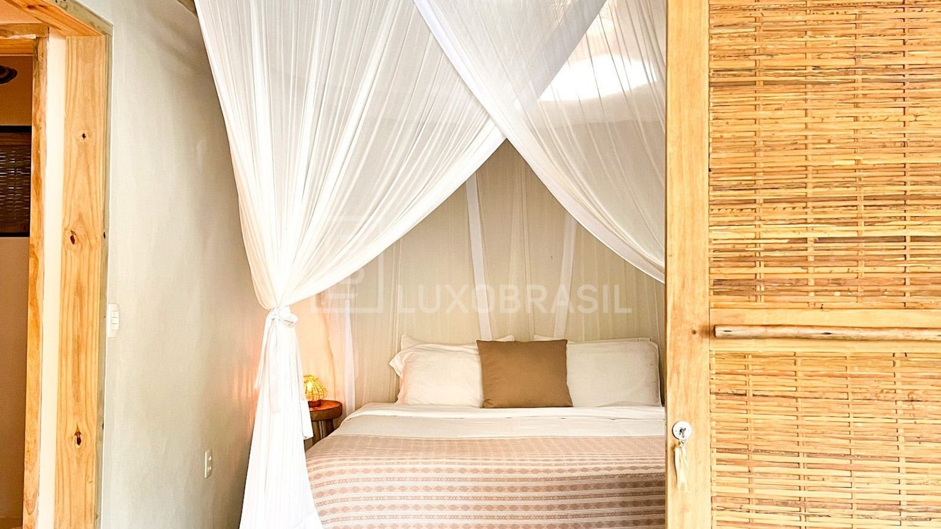 Com 5 suítes (3 na casa principal + 2 no bangalô independente), a casa acomoda até 11 hóspedes com muito estilo. Sua arquitetura rústico-minimalista se integra ao verde exuberante, criando um cenário mansinho, acolhedor e inspirador.