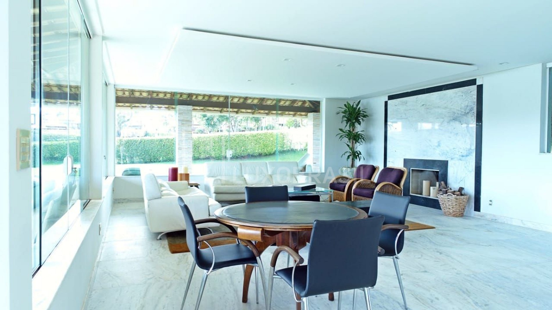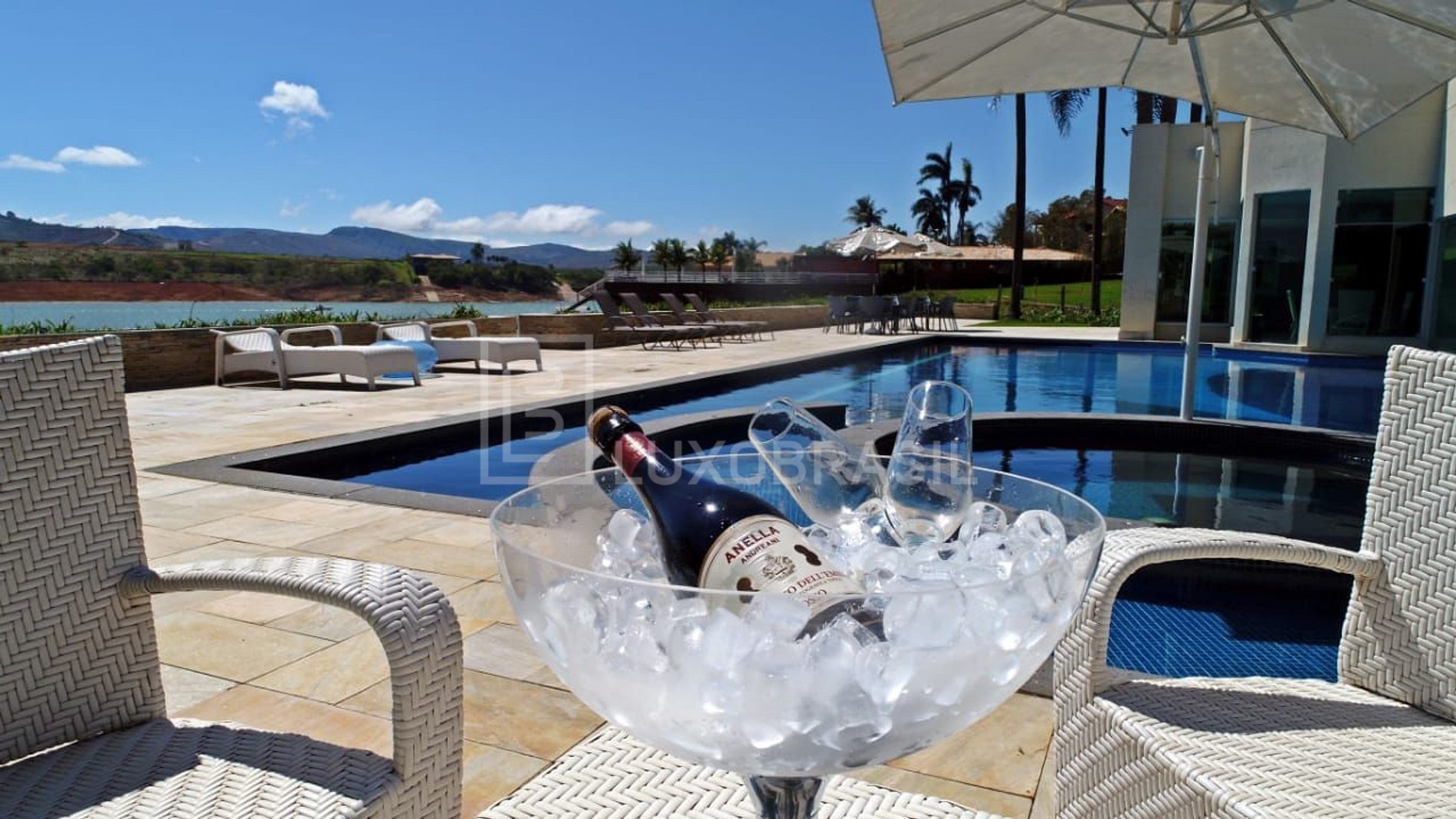 O imóvel dispõe de um píer para grandes embarcações, heliponto, uma maravilhosa vista para o lago, sol da manhã, piscina grande com prainha e hidromassagem, sauna a vapor, jacuzzi interna com água aquecida, área gourmet completa com churrasqueira, chopeira elétrica profissional, cervejeira, som bluetooth e mesa de carteado.