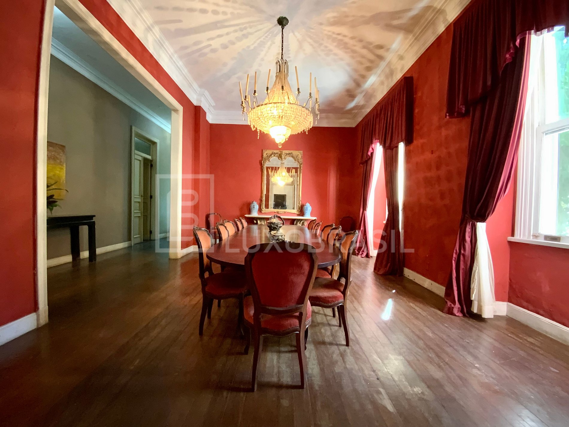 Casa para eventos, ampla e versátil, oferecendo diversos ambientes internos: elegantes salas de estar, sala de jantar, espaço de leitura, lavabo e cozinha equipada.