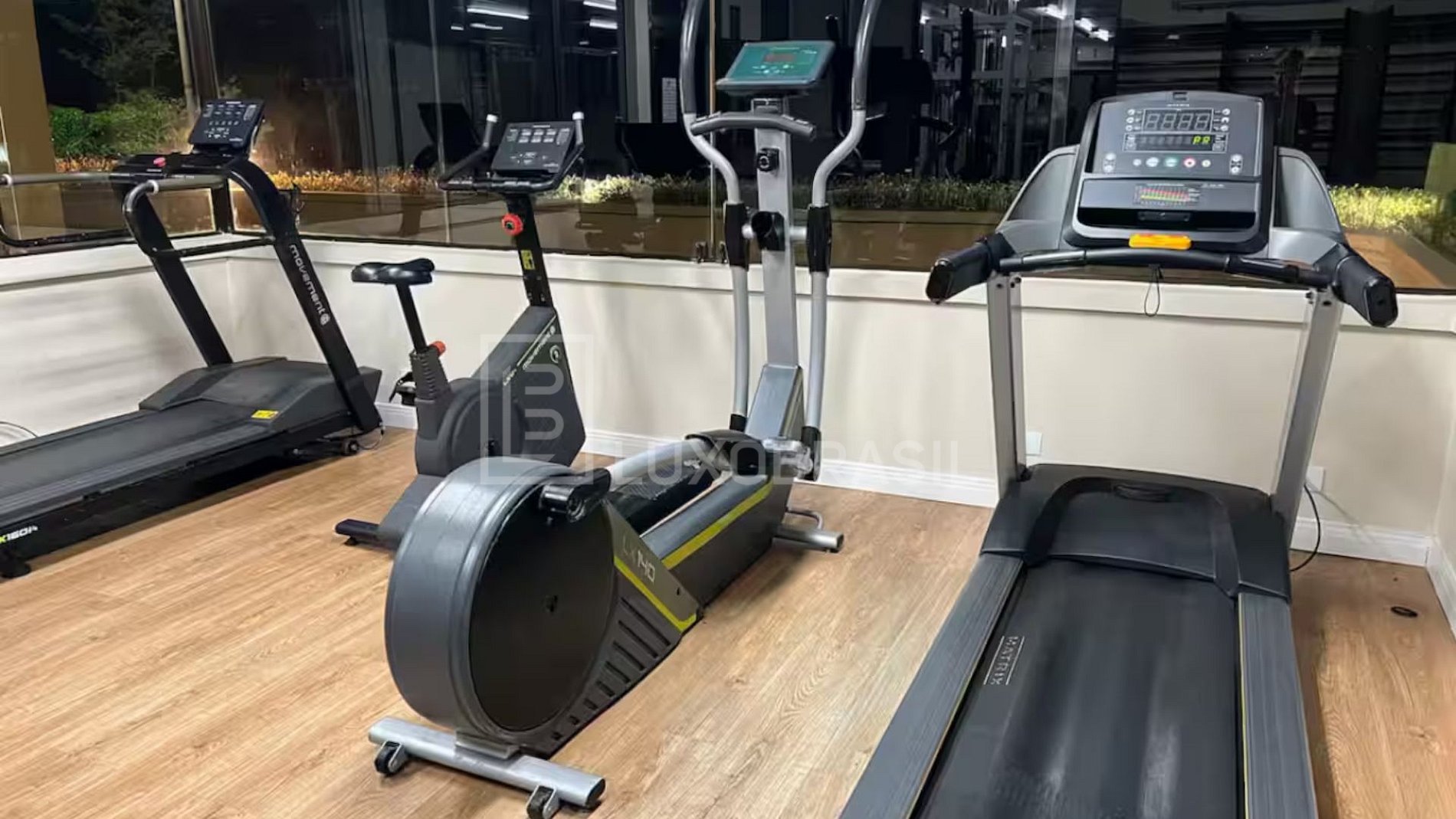 A suíte principal possui cama king com colchão Simmons, Smart TV 43”, ar-condicionado split wi-fi, closet e banheiro com chuveiro Aqua Plus Deca. O segundo quarto dispõe de cama de casal com colchão Emma, armário, ar-condicionado split wi-fi, cortina blackout e vista para o mar, atendido por banheiro completo no corredor.