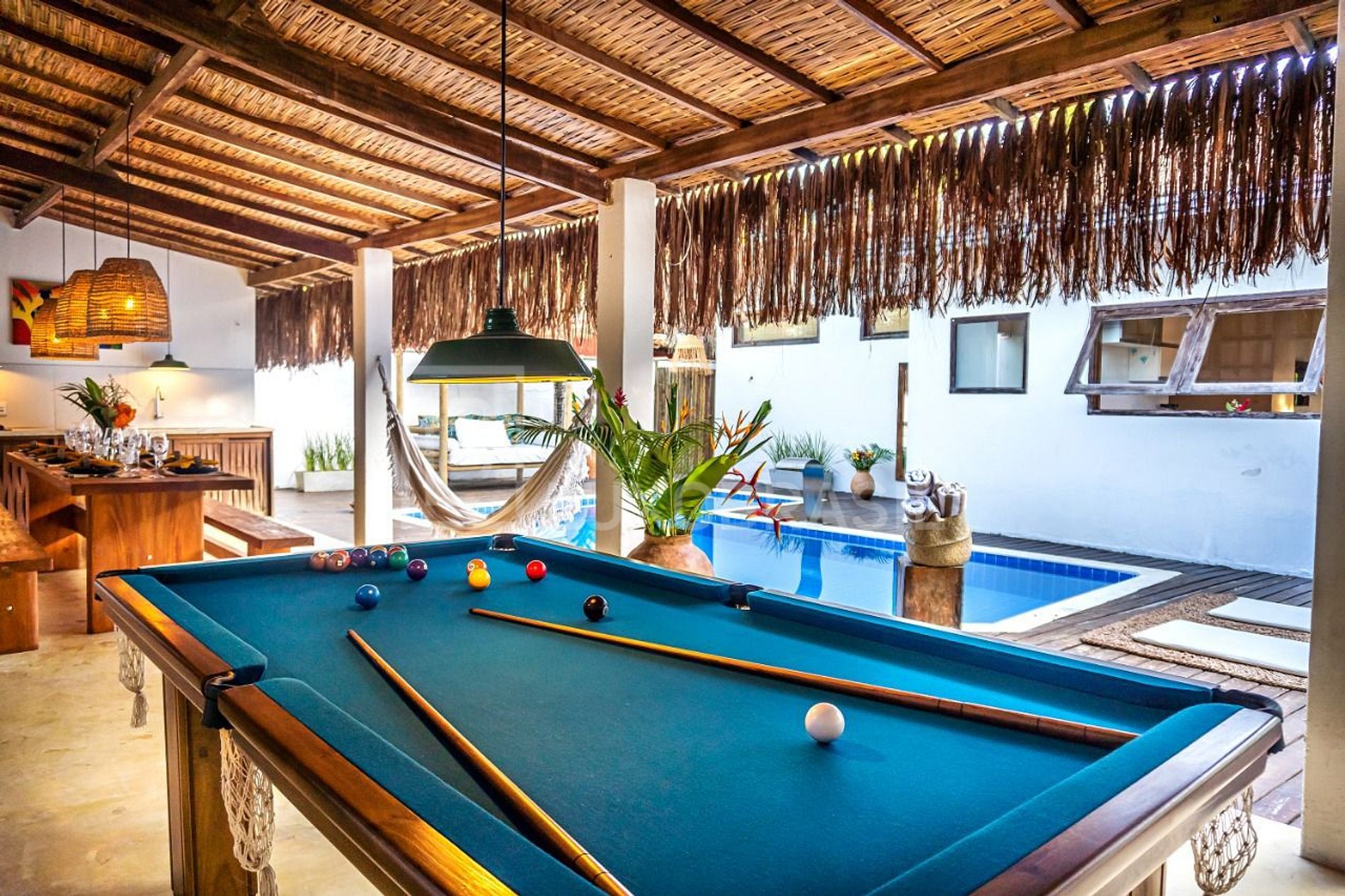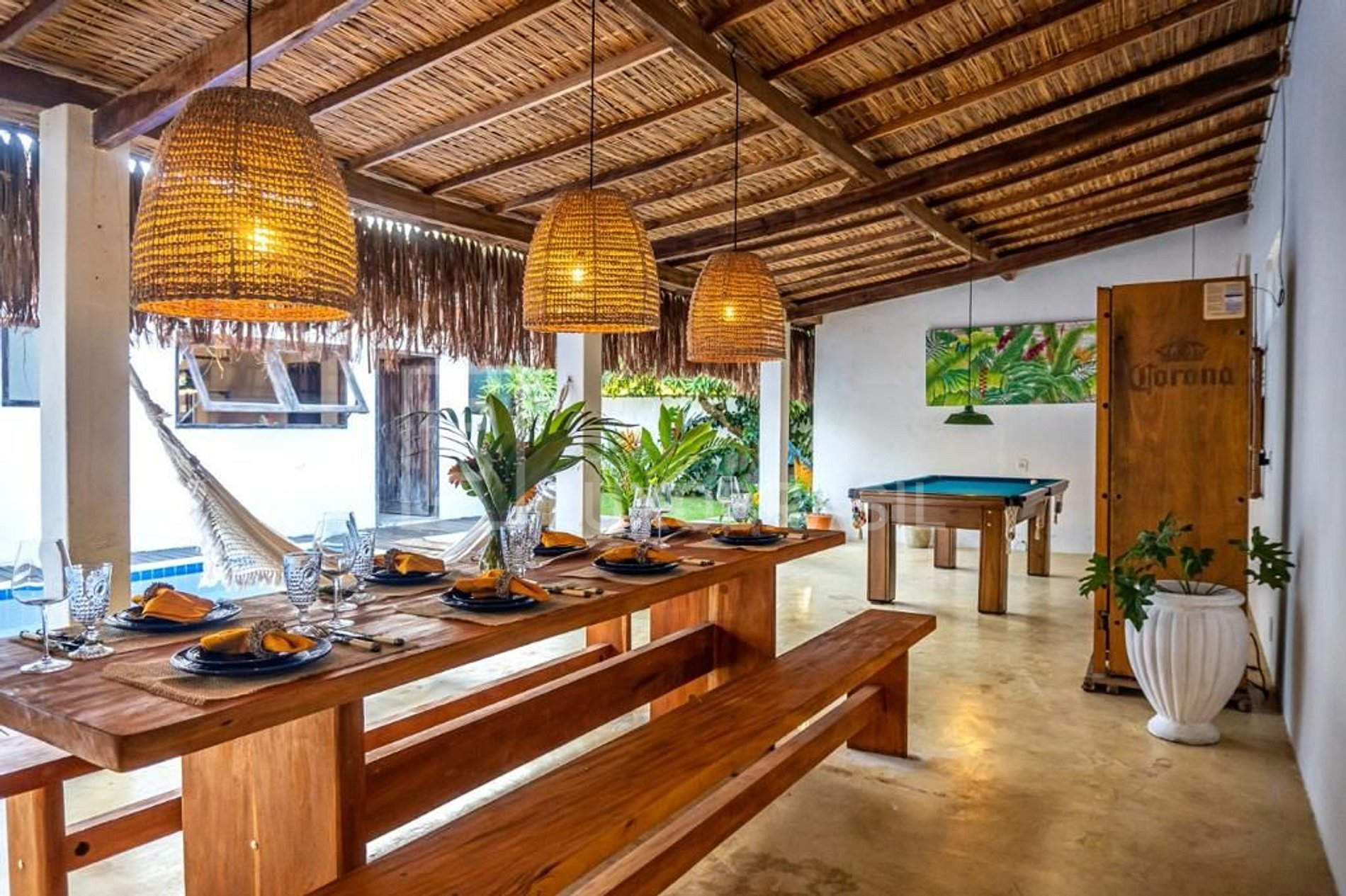 A casa Bem te vi está localizada no Condomínio Coqueiral, a 2 km do quadrado de Trancoso (Centro histórico e o coração da cidade, onde e mantido a arquitetura da época colonial), local mais procurado e badalado de Trancoso. A 2.500 metros da praia, a casa possui 04 suítes com ar-condicionado e Smartv, sala de jantar com uma mesa de raíz de madeira centenária, sala de estar com tv de 70 polegadas, cozinha completa. A área externa conta com piscina, mesa de sinuca e uma área gourmet com churrasqueira, pia, cervejeira e uma linda mesa de madeira.