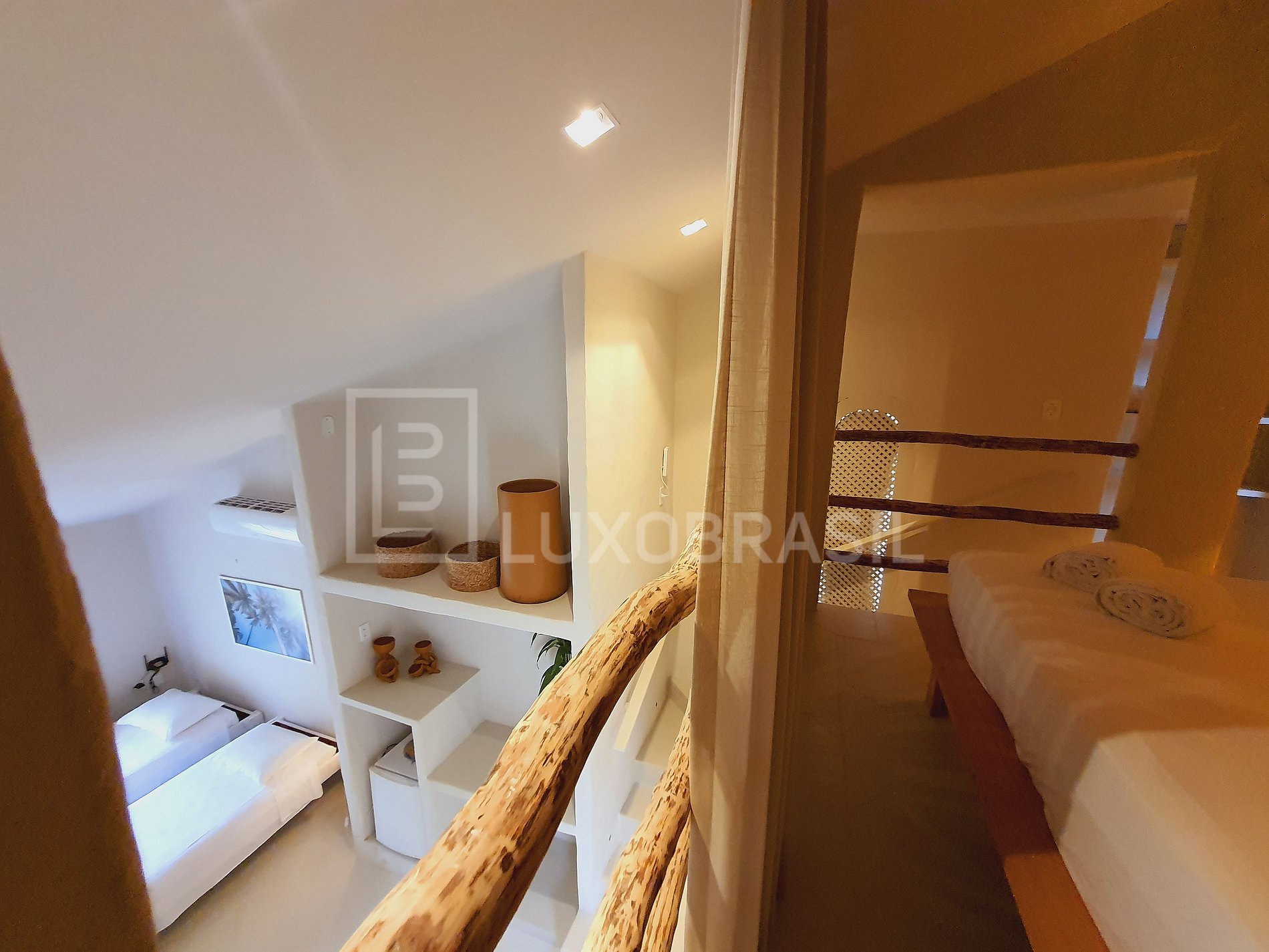 Bungalow 3: 1 suíte com mezanino de frente para o mar, 65m², 1 Queen, 2 solteiro. Até 4 pessoas