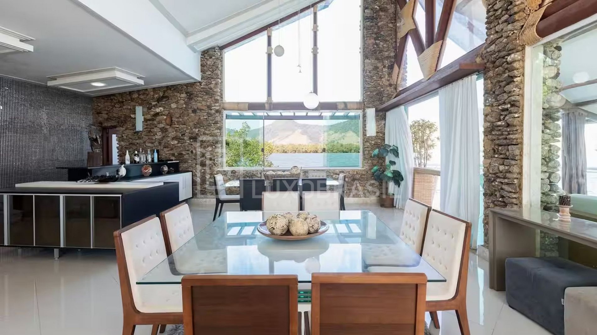 Com duas casas principais e acesso facilitado ao continente, a propriedade oferece uma praia privativa de águas tranquilas, amplos jardins e uma área gourmet integrada, ideal para reunir família e amigos com total privacidade.