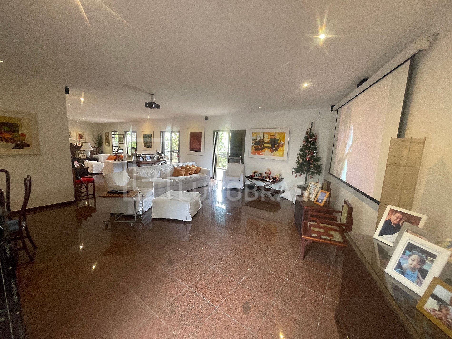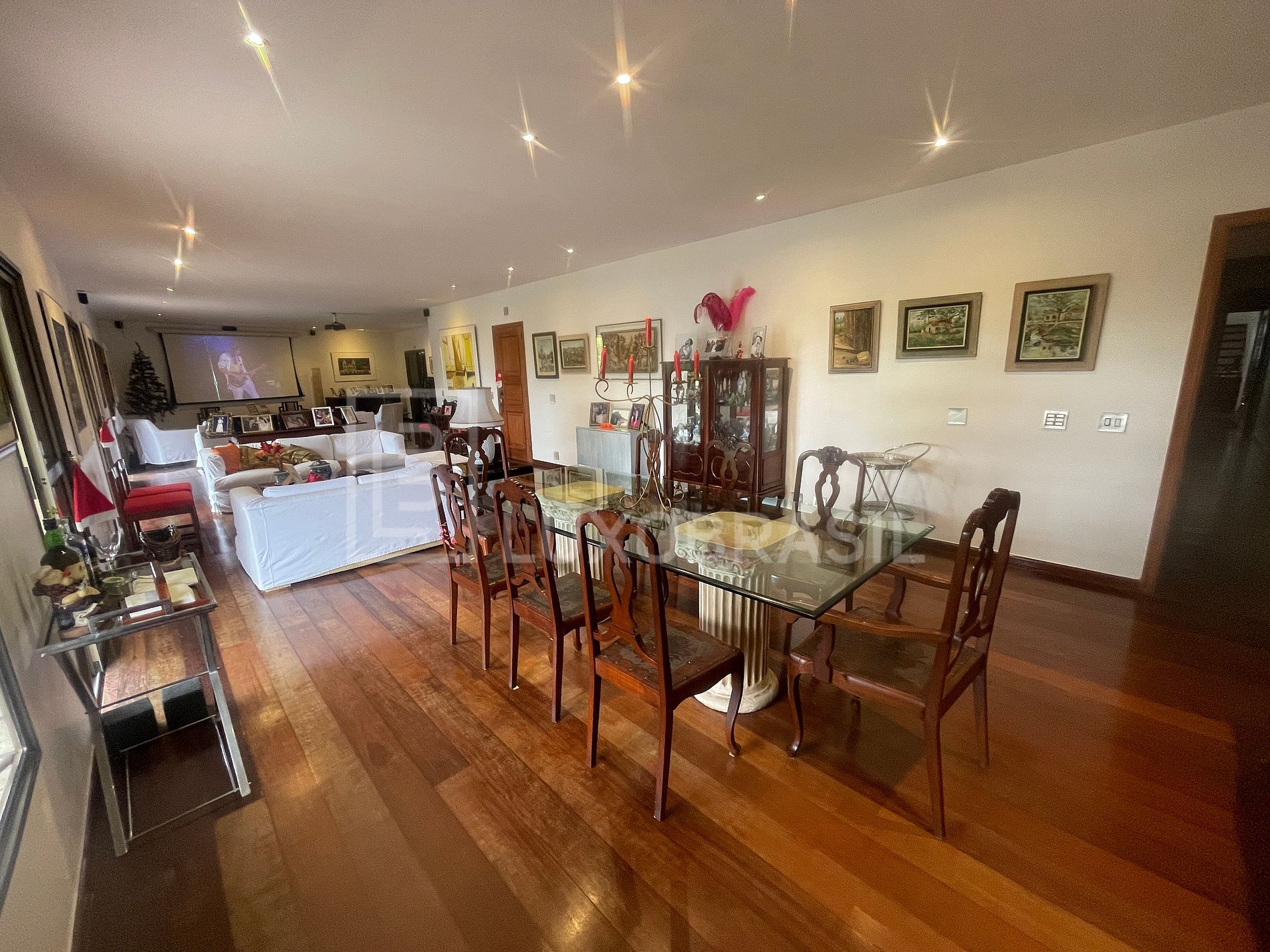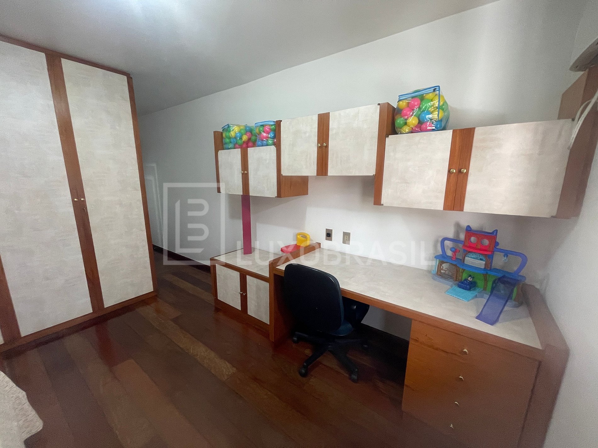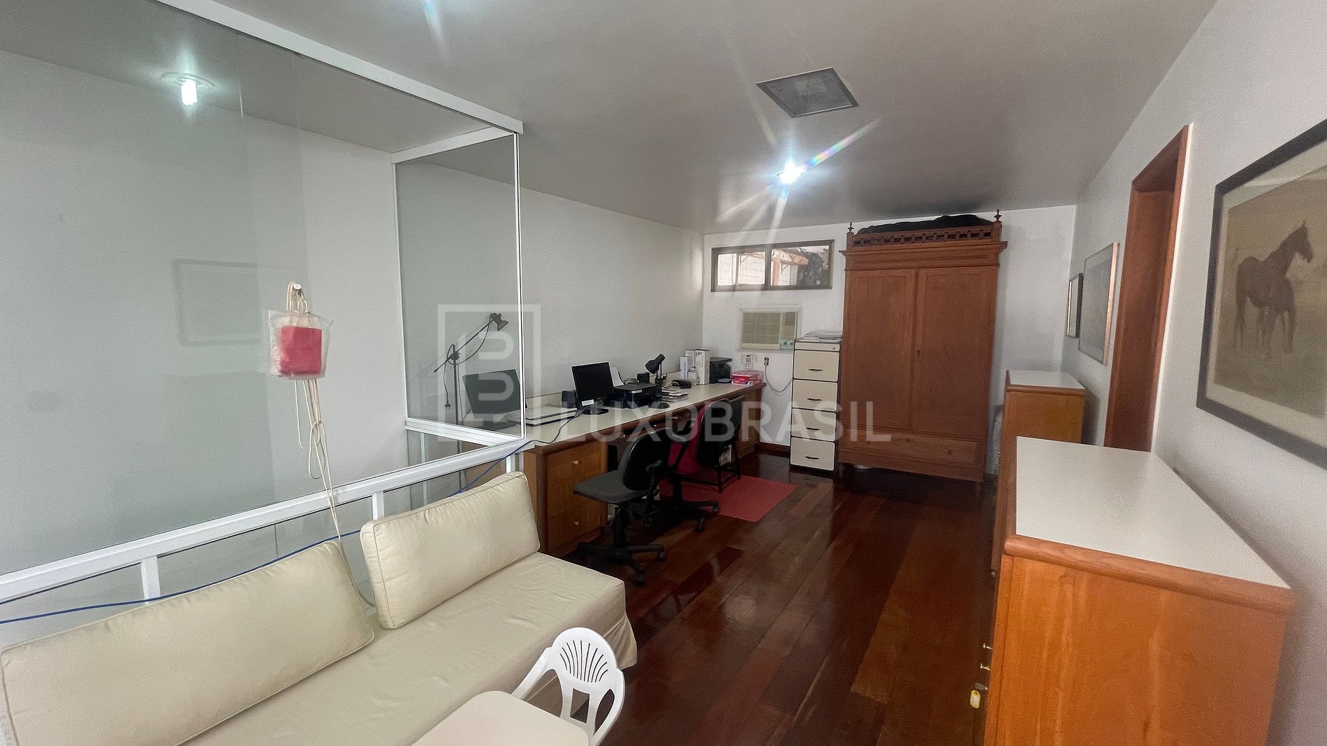 Além disso, o imóvel conta com ampla sala podendo ser dividida em três ambientes (sala de estar, jantar e tv), lavabo, living, copa cozinha, área de serviço com dependência completa e um excelente espaço para um escritório.