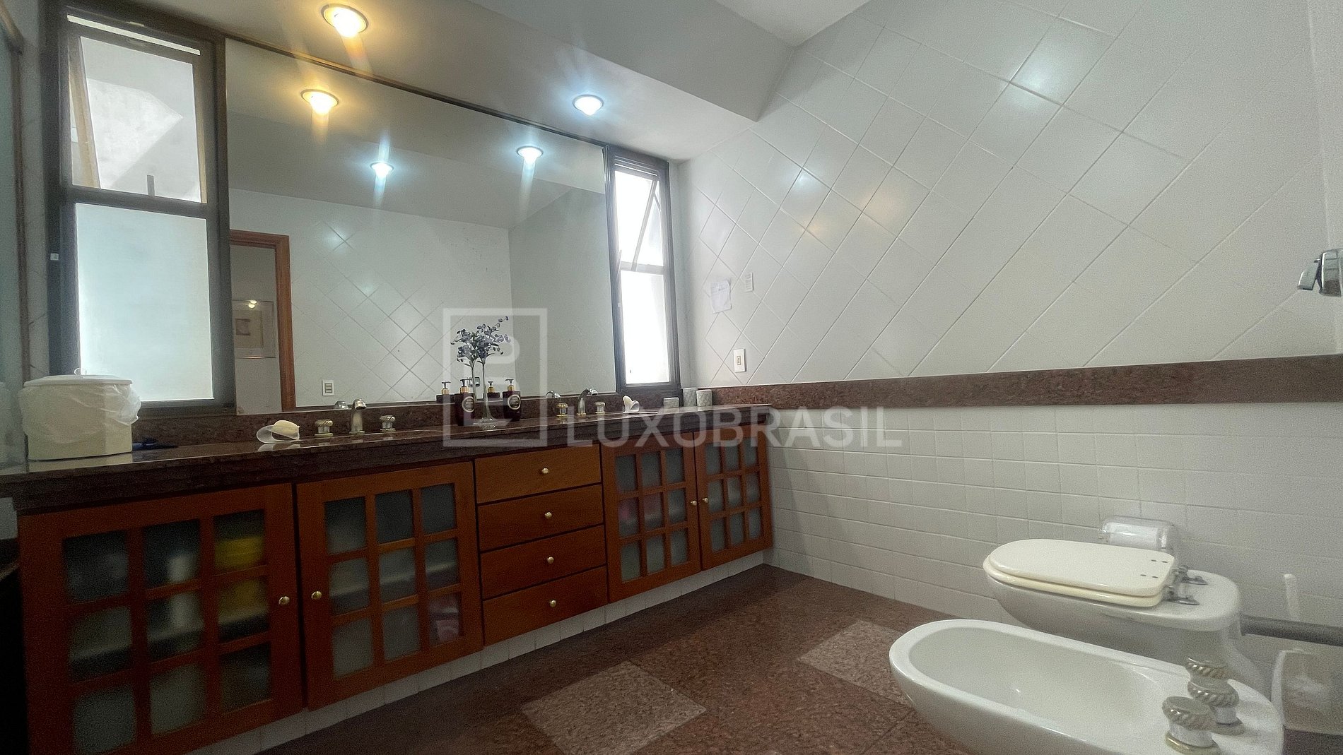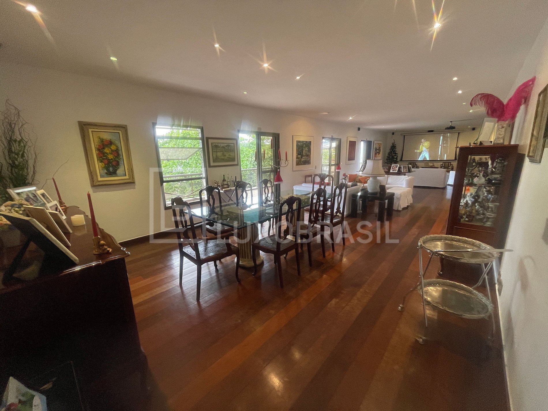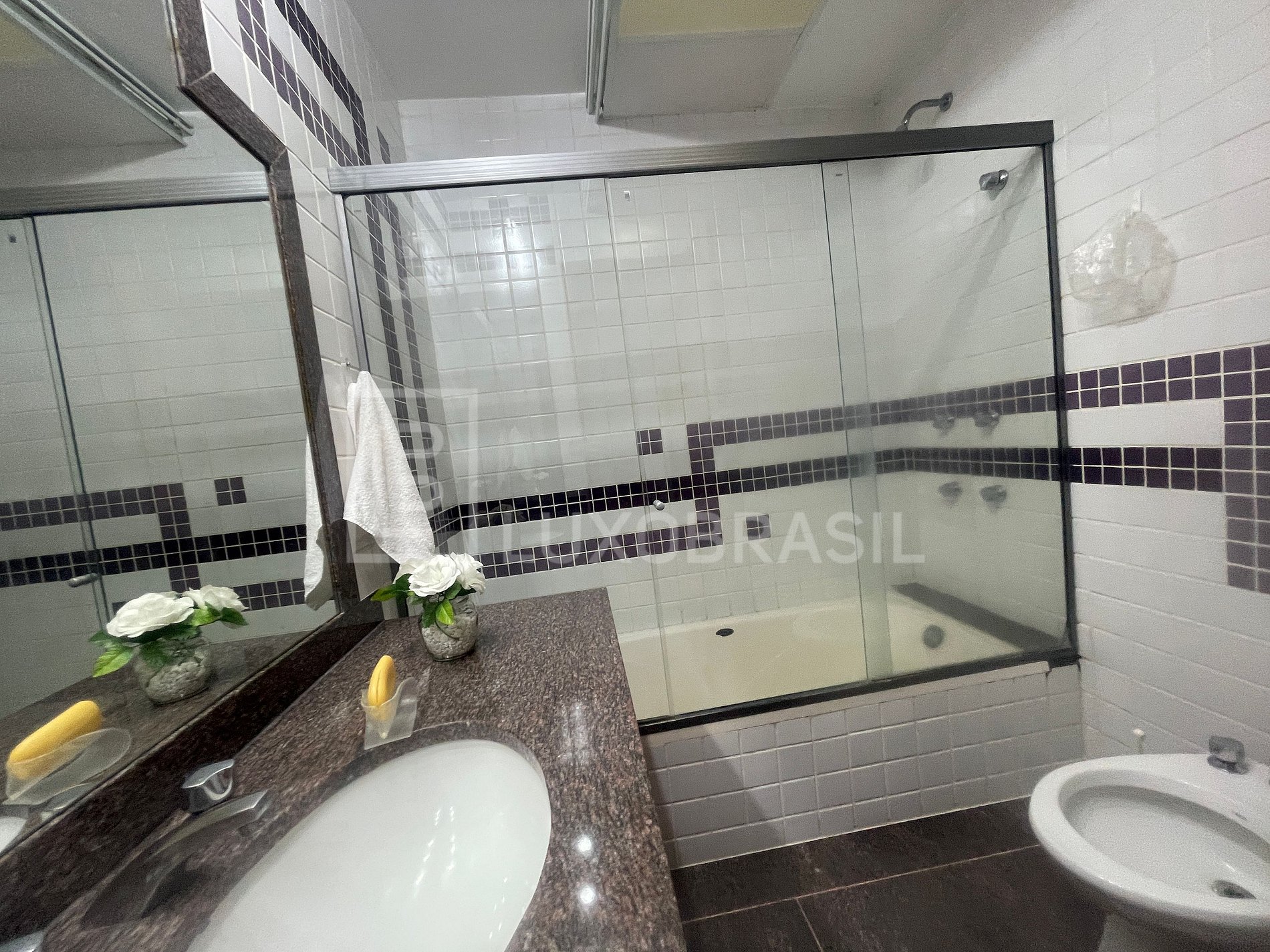 Além disso, o imóvel conta com ampla sala podendo ser dividida em três ambientes (sala de estar, jantar e tv), lavabo, living, copa cozinha, área de serviço com dependência completa e um excelente espaço para um escritório.