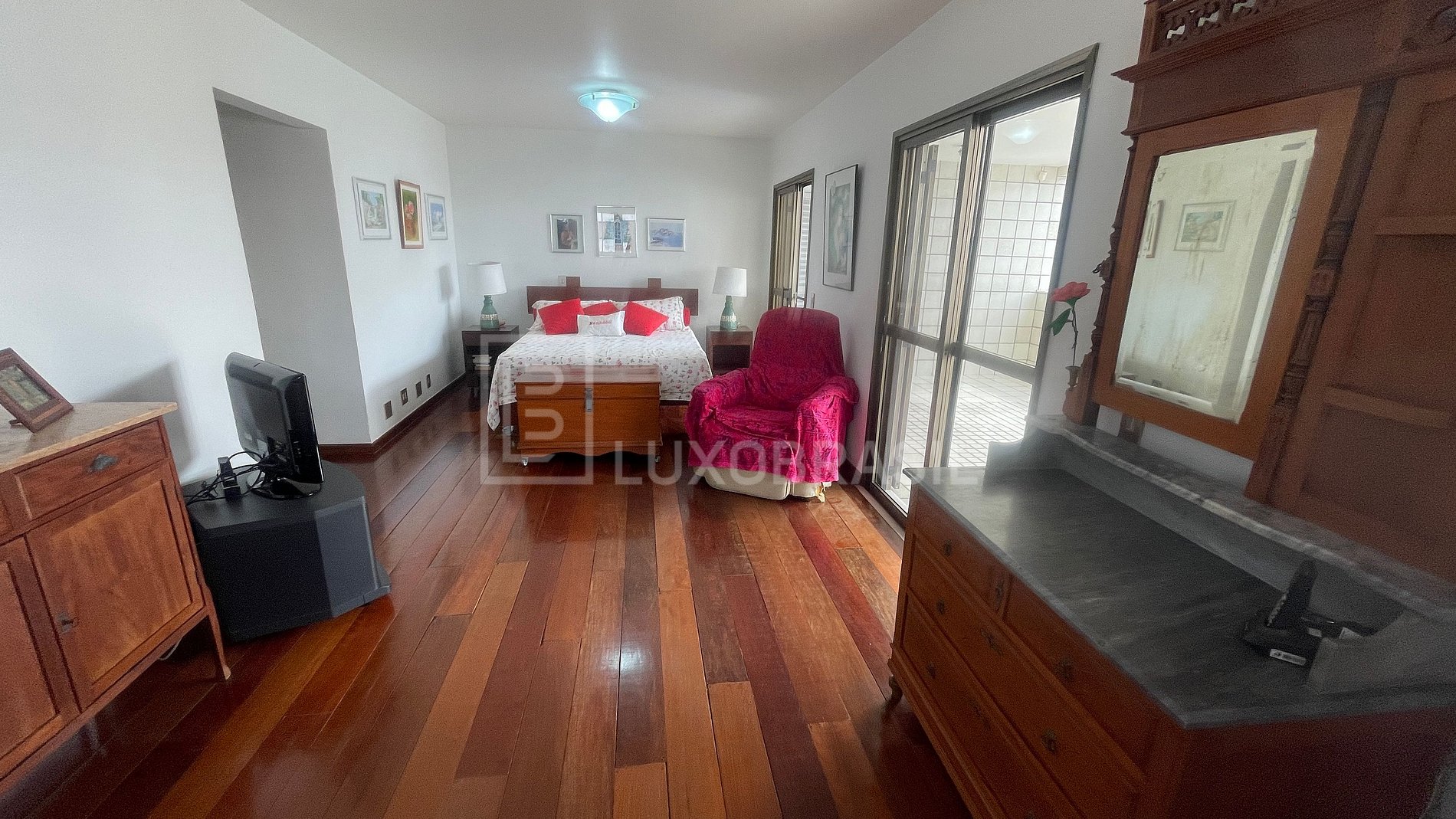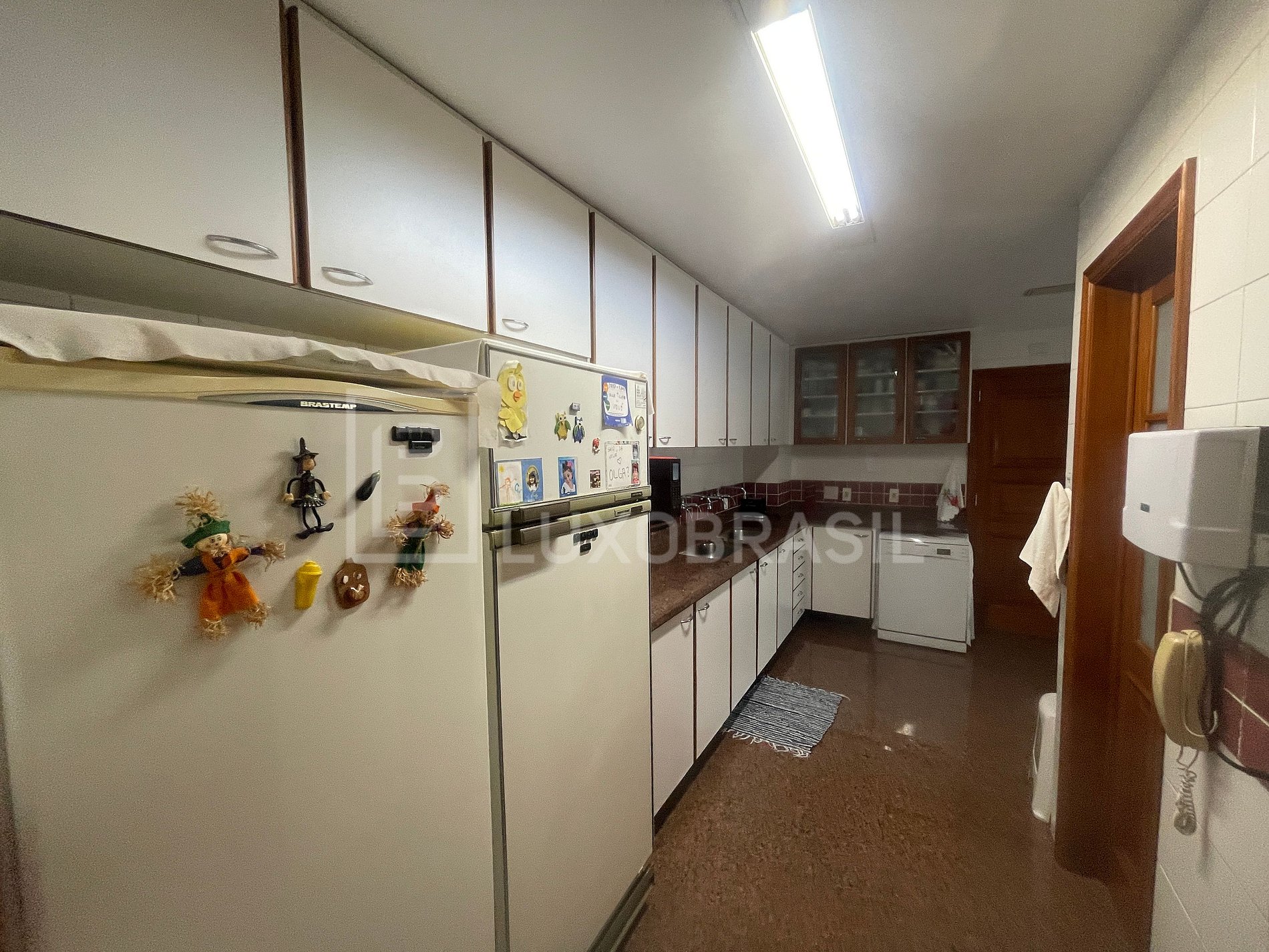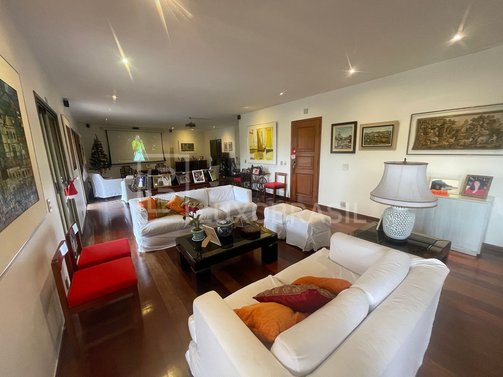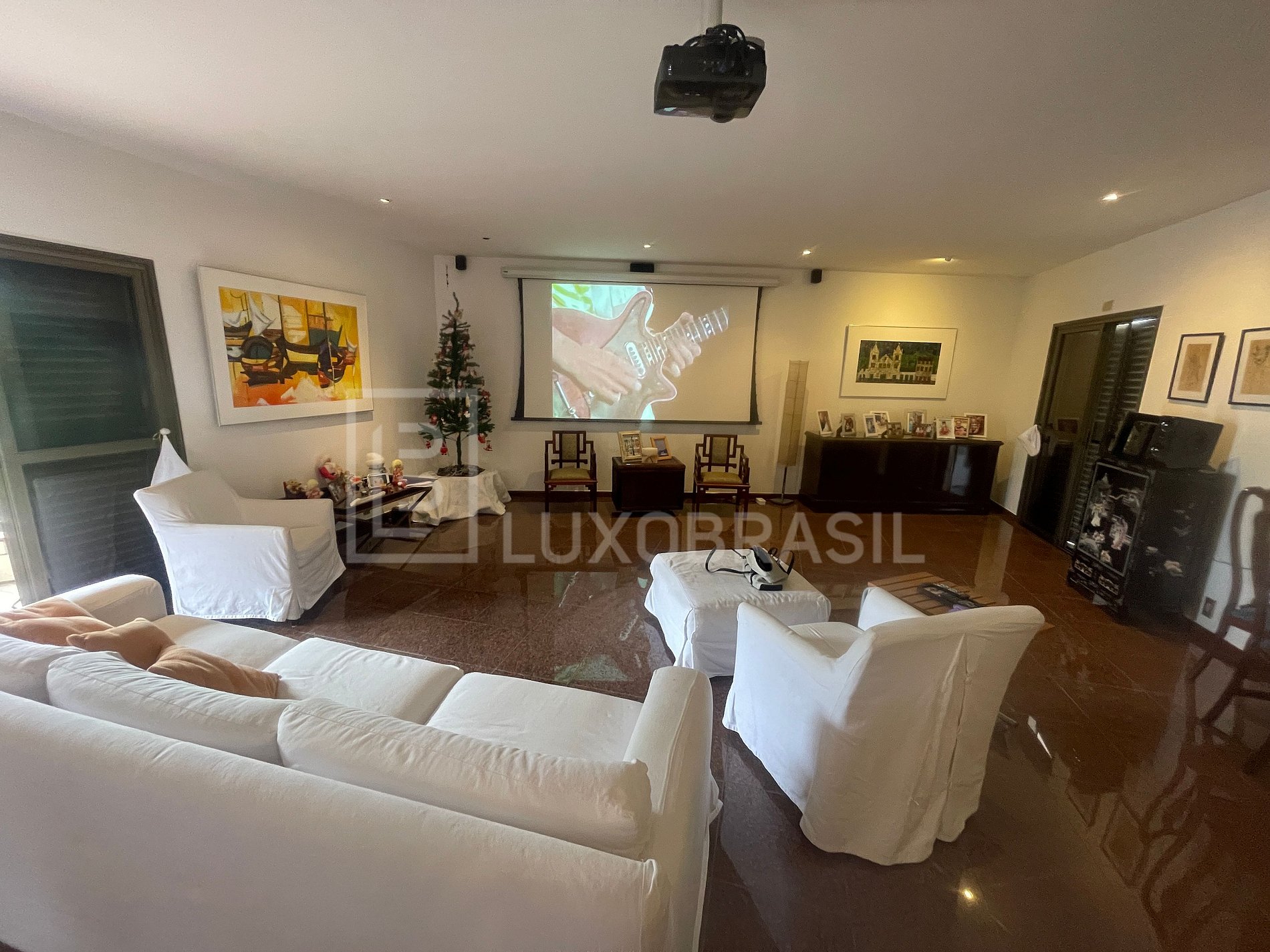 Além disso, o imóvel conta com ampla sala podendo ser dividida em três ambientes (sala de estar, jantar e tv), lavabo, living, copa cozinha, área de serviço com dependência completa e um excelente espaço para um escritório.