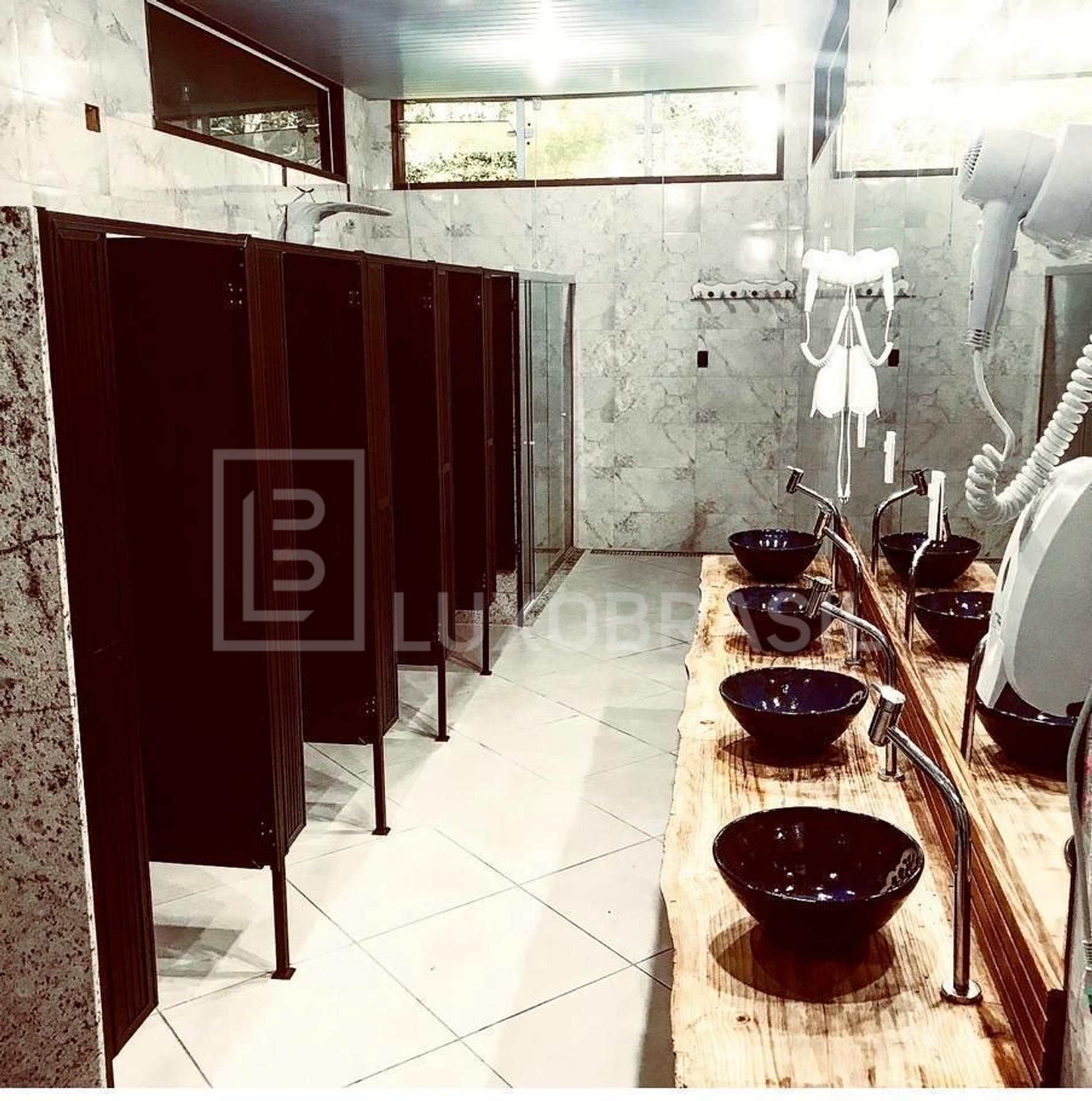 Disponibiliza 02 quiosques com churrasqueira, 02 cozinhas, sendo uma profissional, sala de eventos, sala de jogos, sala de jantar, varanda para eventos, piscina, sauna úmida, quadra de vôlei de grama, quadra poliesportiva, espaço de pesca, rampa para barco, estacionamento para 50 veículos, 23 banheiros.
