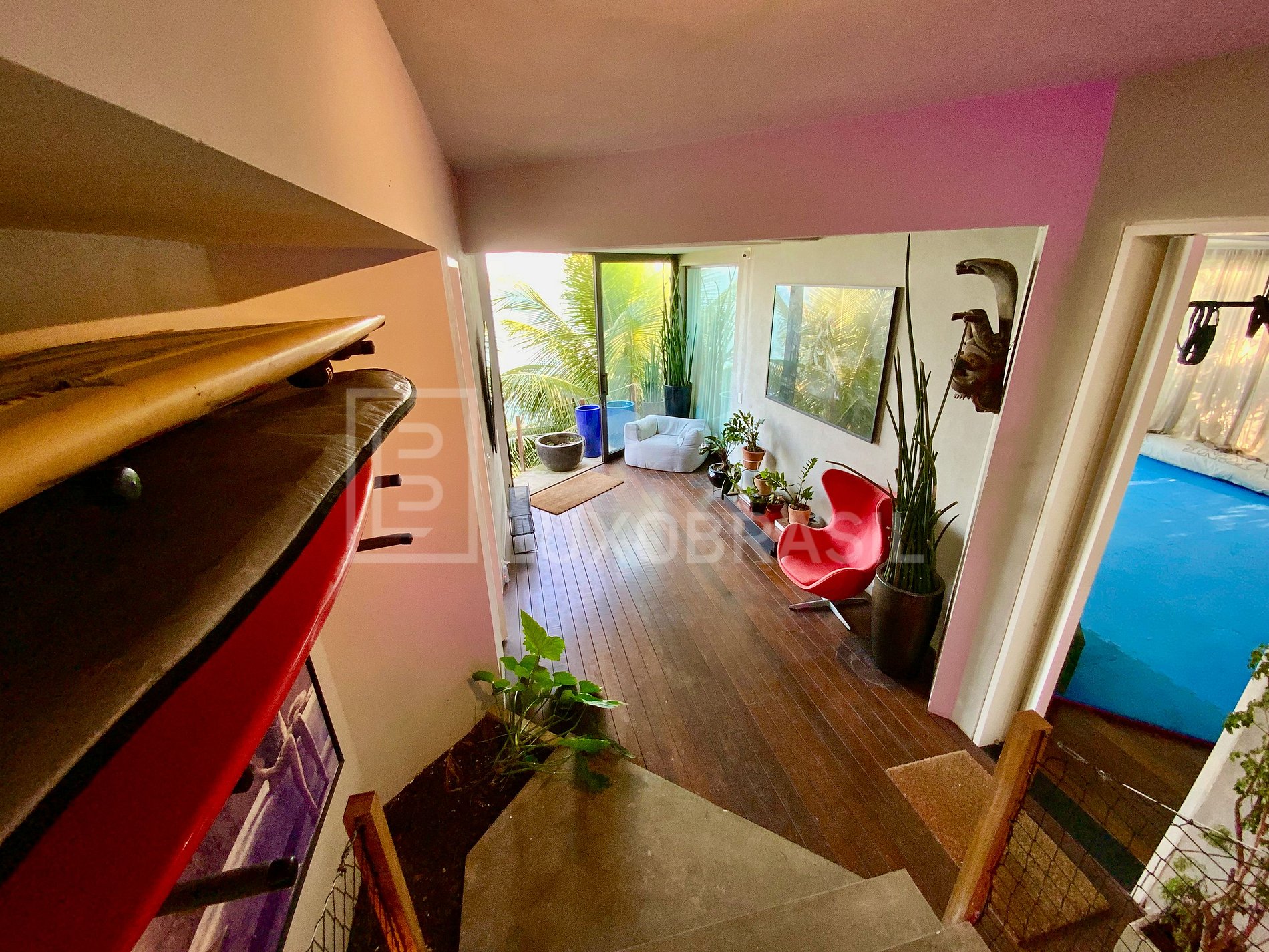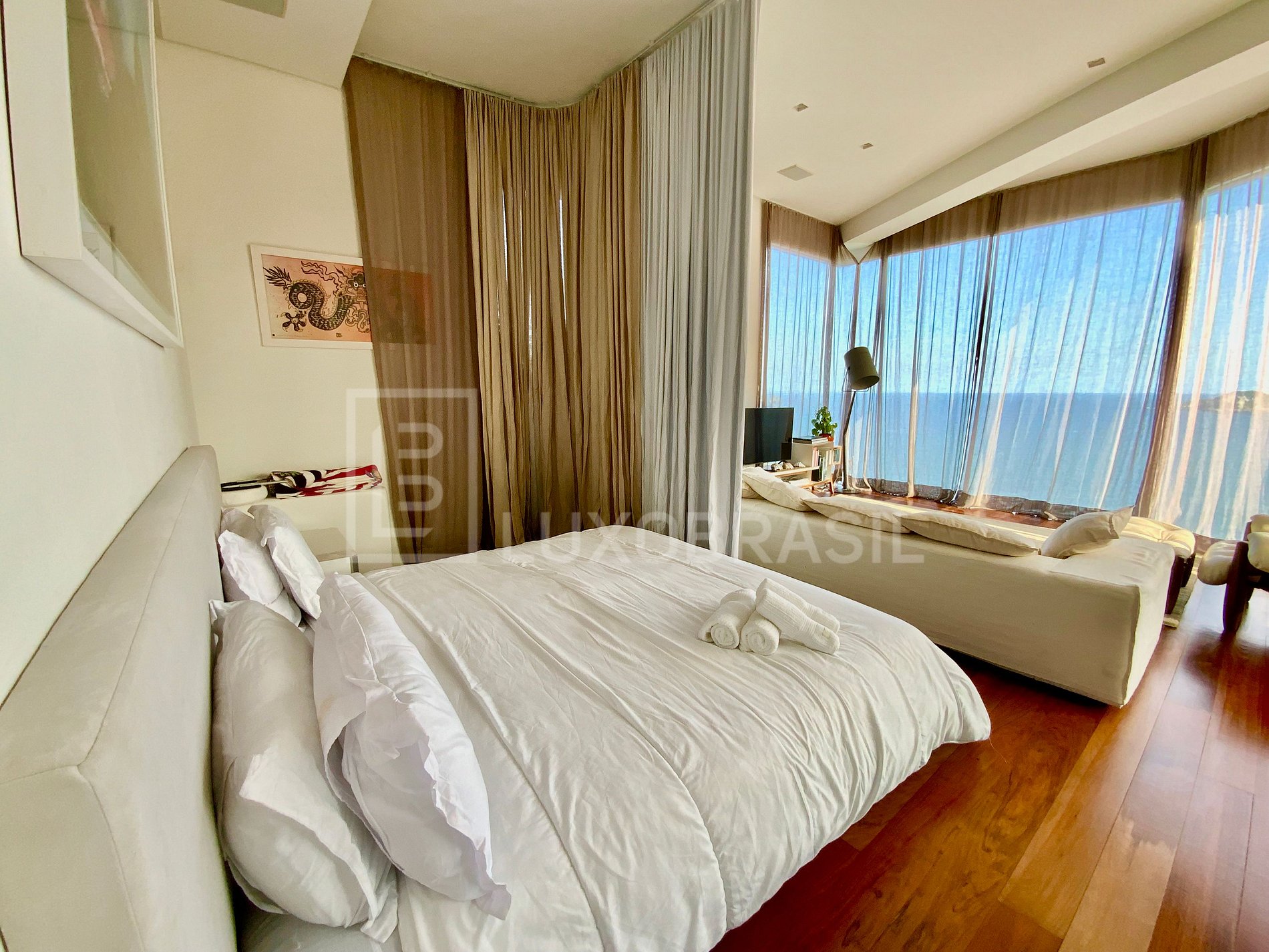 No andar superior encontra-se as 04 principais suítes da casa, sendo 02 com linda vista para o mar e 02 viradas para o jardim. A suíte master possui hidromassagem, uma ante-sala com mesa de escritório e uma vista maravilhosa do mar e da Praia da Joatinga.