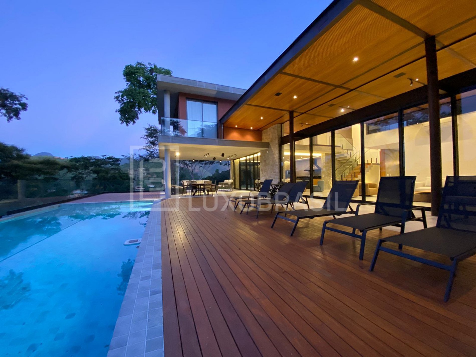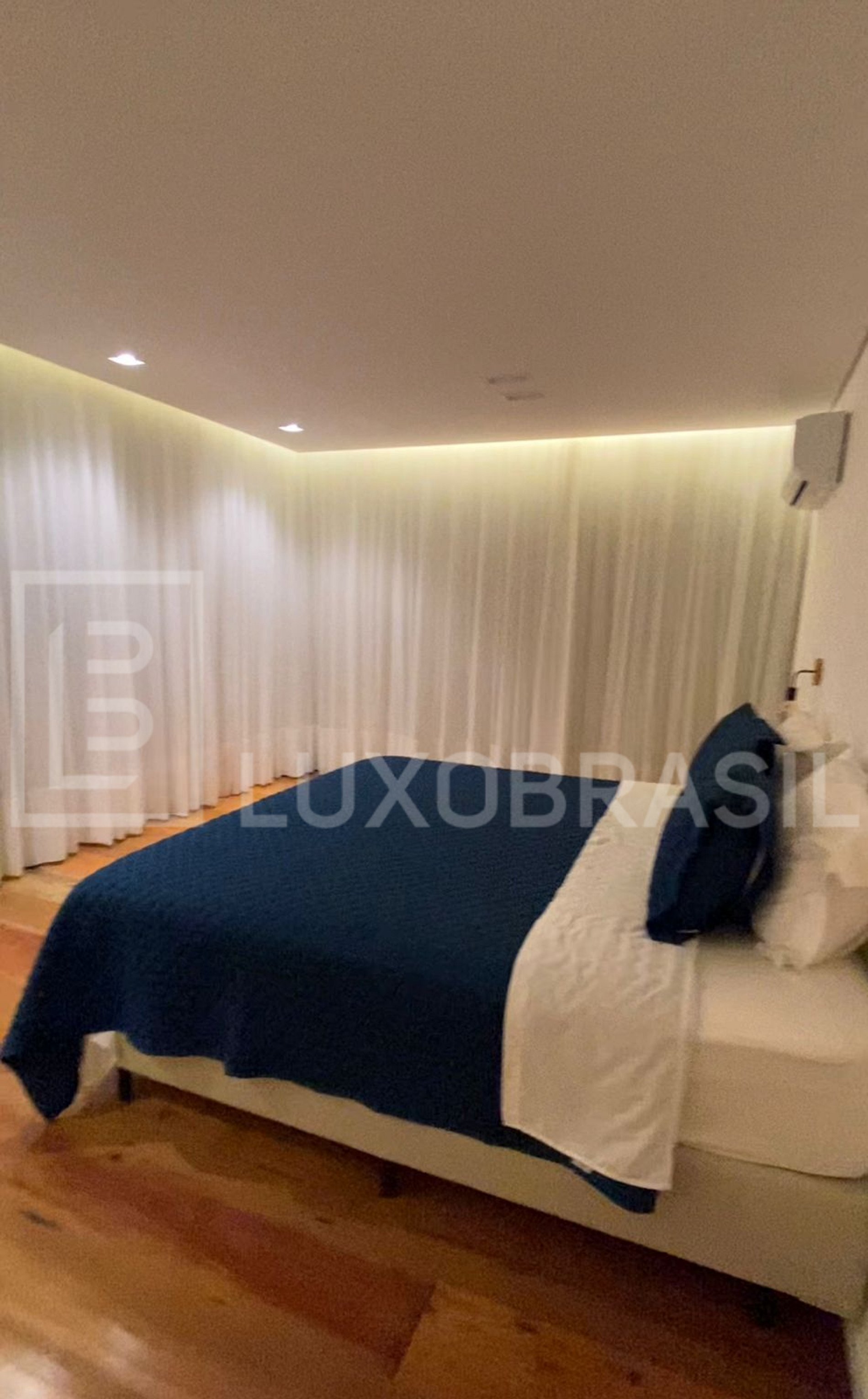Sala com três ambientes, área gourmet, equipada com churrasqueira. Acomode-se junto à lareira nas noites frias ou dê um mergulho na piscina com borda infinita, curtindo a paisagem incrível ao seu redor. Relaxe na sauna ou divirta-se com uma partida de futebol ou basquete na área de lazer.