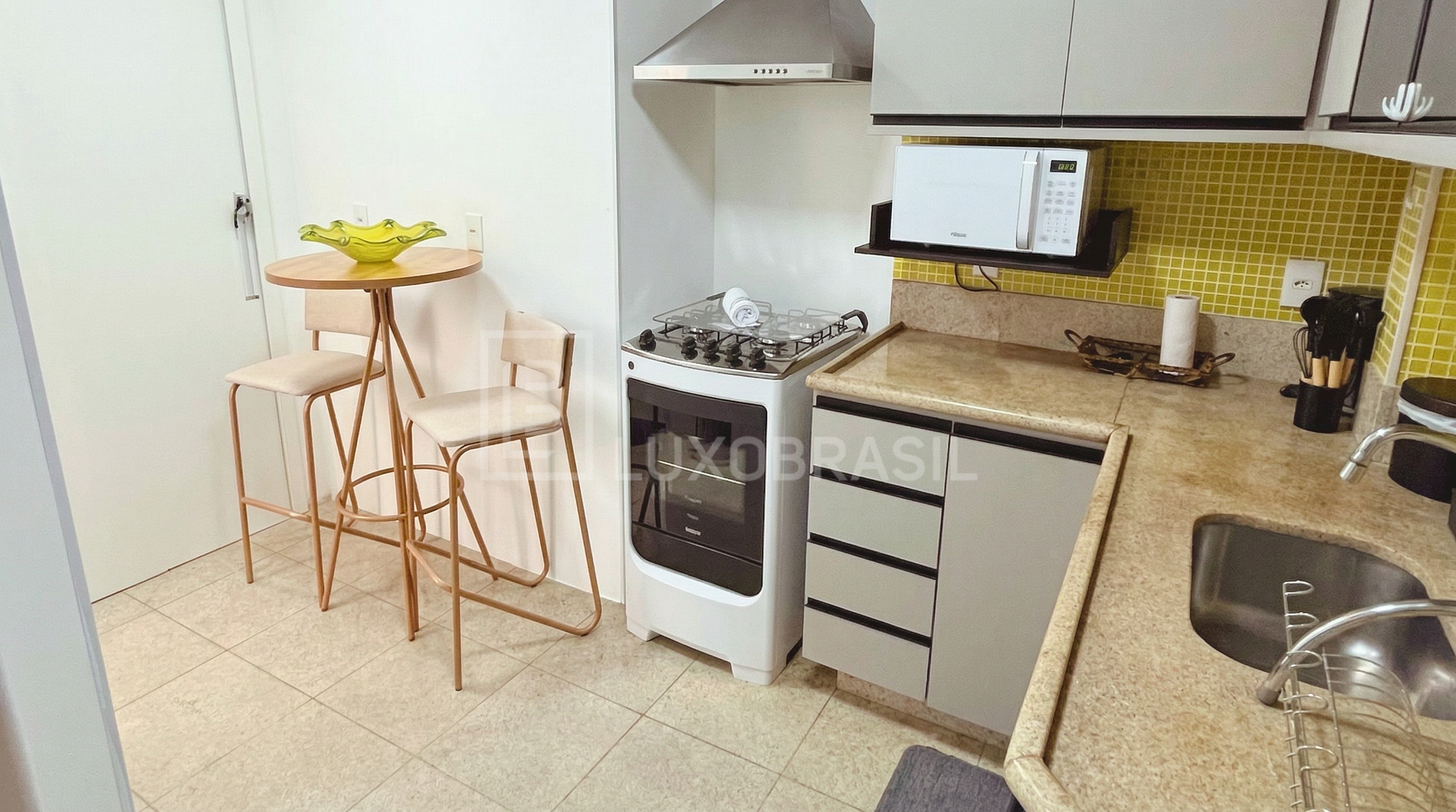Desfrute de um living expansivo ideal para receber ou relaxar, equipado com serviços de streaming de última geração. A comodidade se estende a uma cozinha moderna e totalmente equipada, área de serviço com máquina de lavar.
