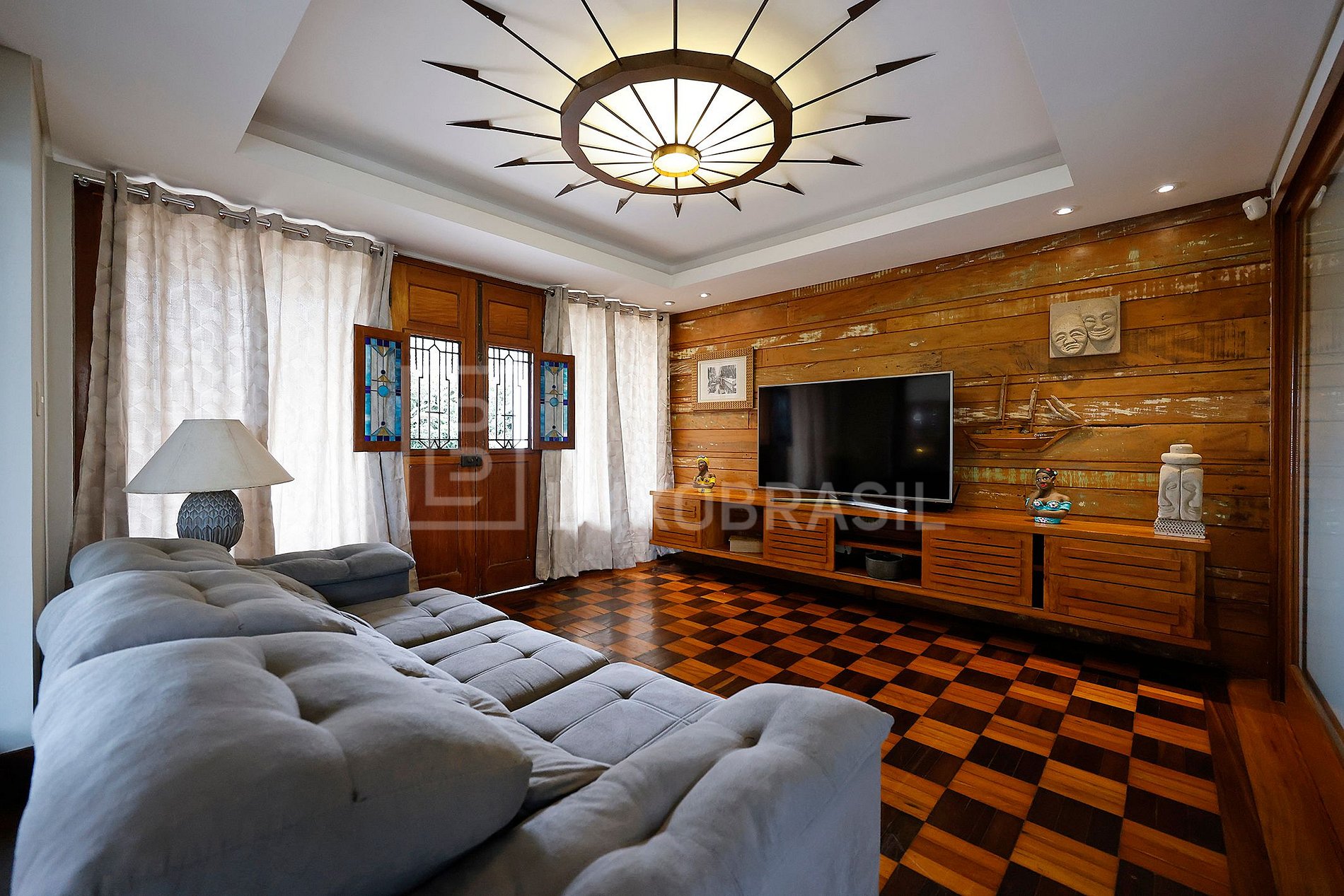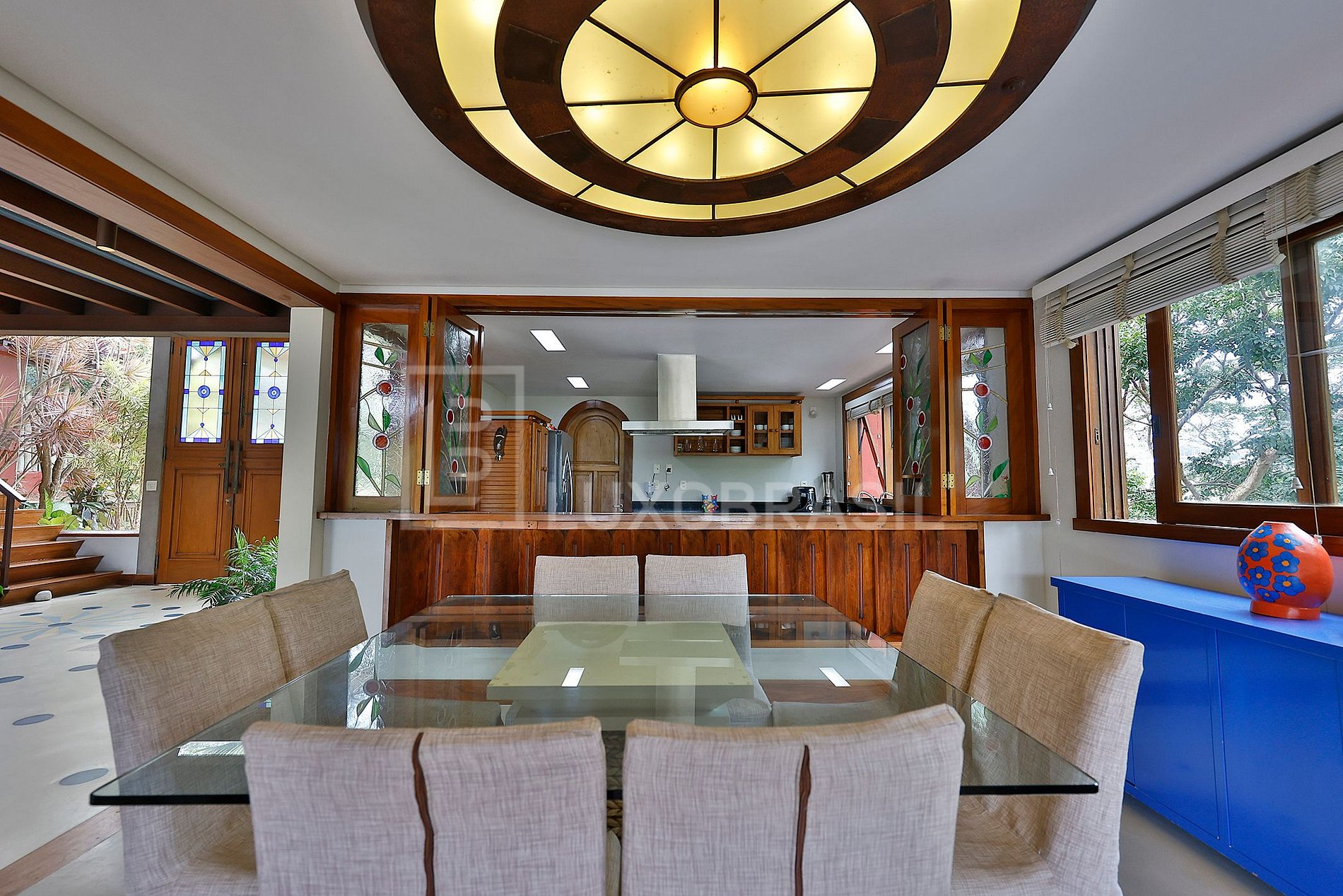 A casa possui 07 suítes, 02 banheiros extras, sala de cinema, piscina, sauna, hidromassagem, quadra de esportes, churrasqueira, sala de jantar, garagem para 04 carros.
