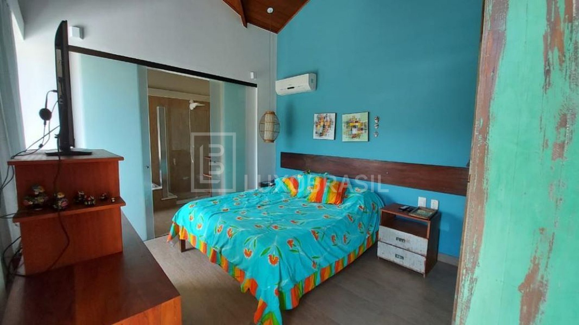 Ampla casa localizada à apenas 8 minutos a pé de Geribá, contendo área gourmet com piscina, forno para pizza, cozinha integrada com a área da churrasqueira, sala de estar com pé direito alto e paredes em vidro. O imóvel conta com 05 suítes completas (todas com ar-condicionado split), garagem com capacidade para 04 carros e estacionamento na rua. A casa é localizada a 10 minutos de carro de polos gastronômicos, comércios e do Centro.
