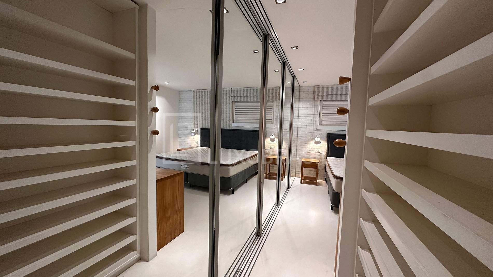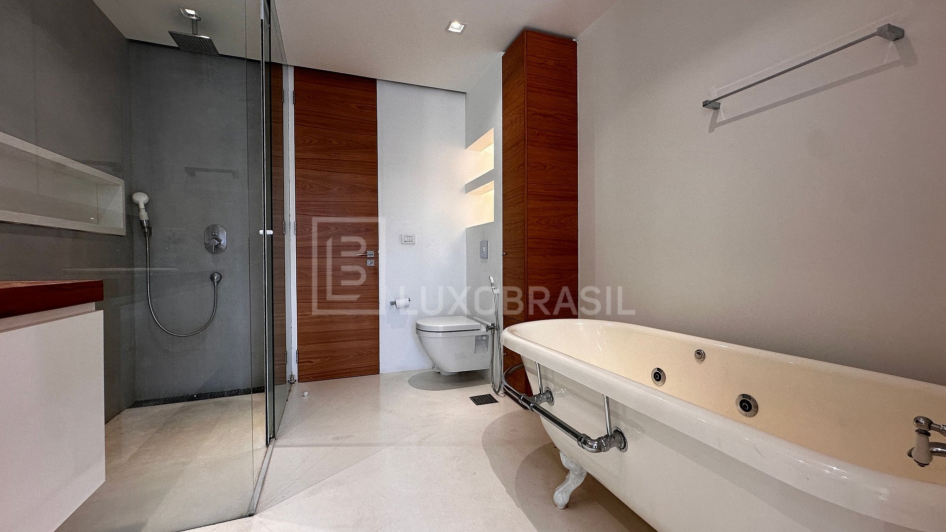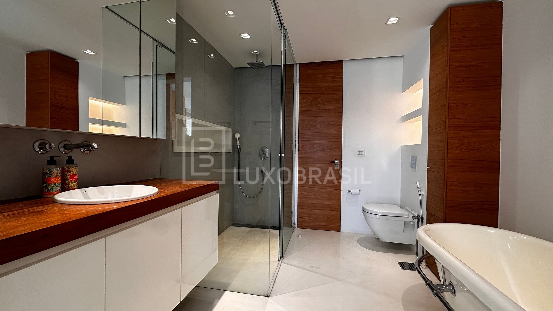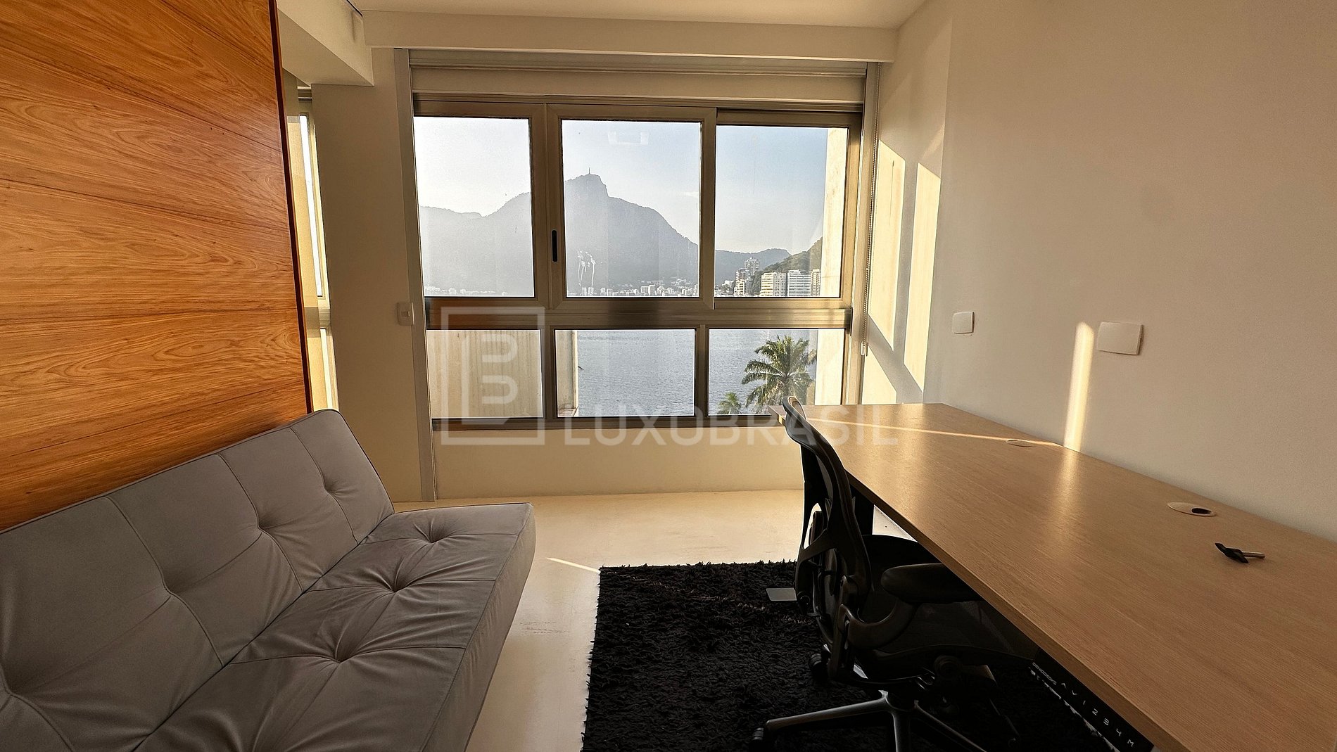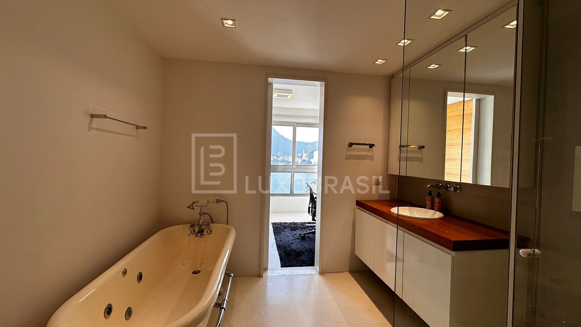 Cobertura de 200 m² na Lagoa, Rio de Janeiro. O imóvel possui 02 quartos, incluindo uma suíte master e um quarto menor com vista e banheiro canadense.