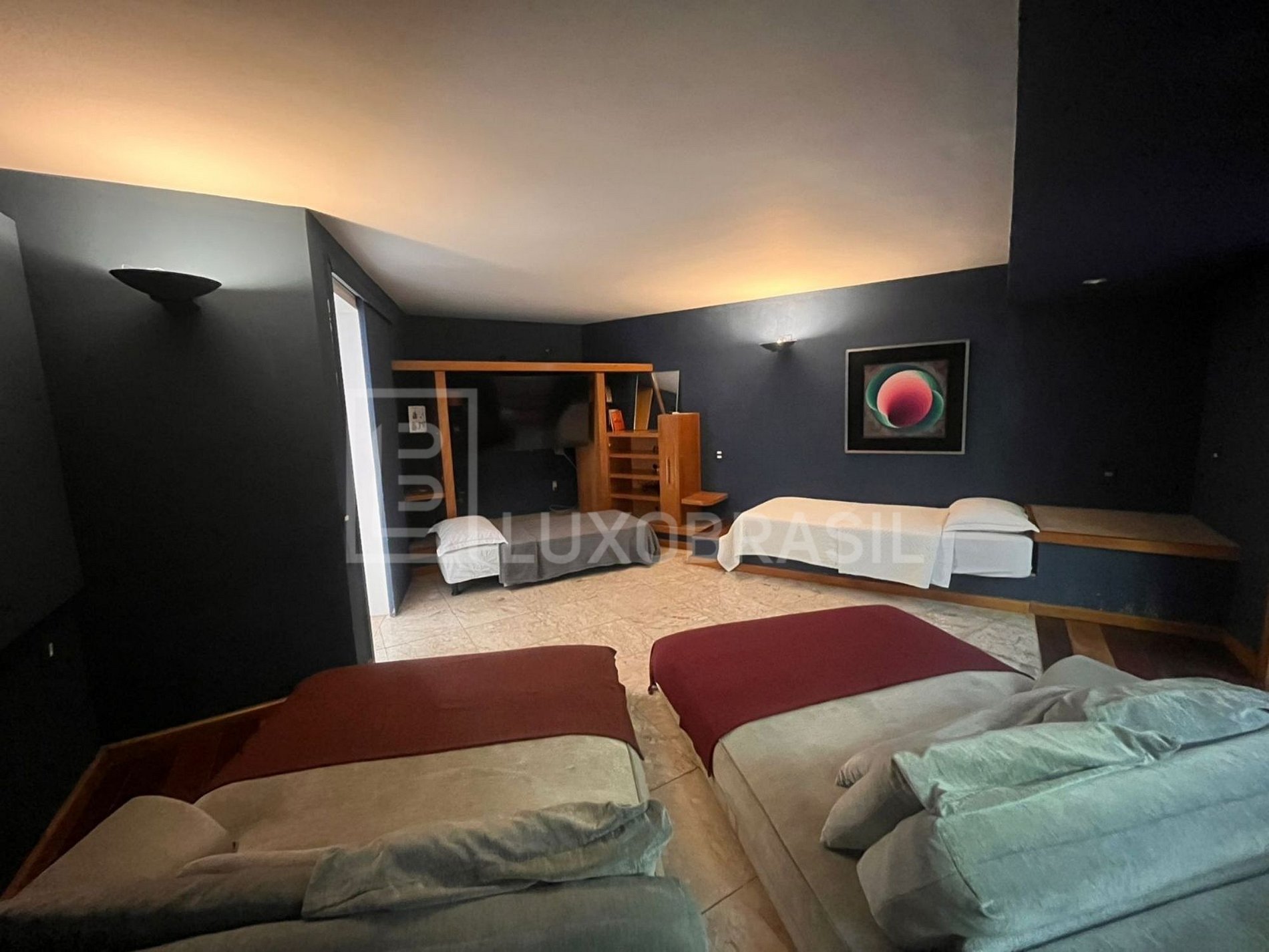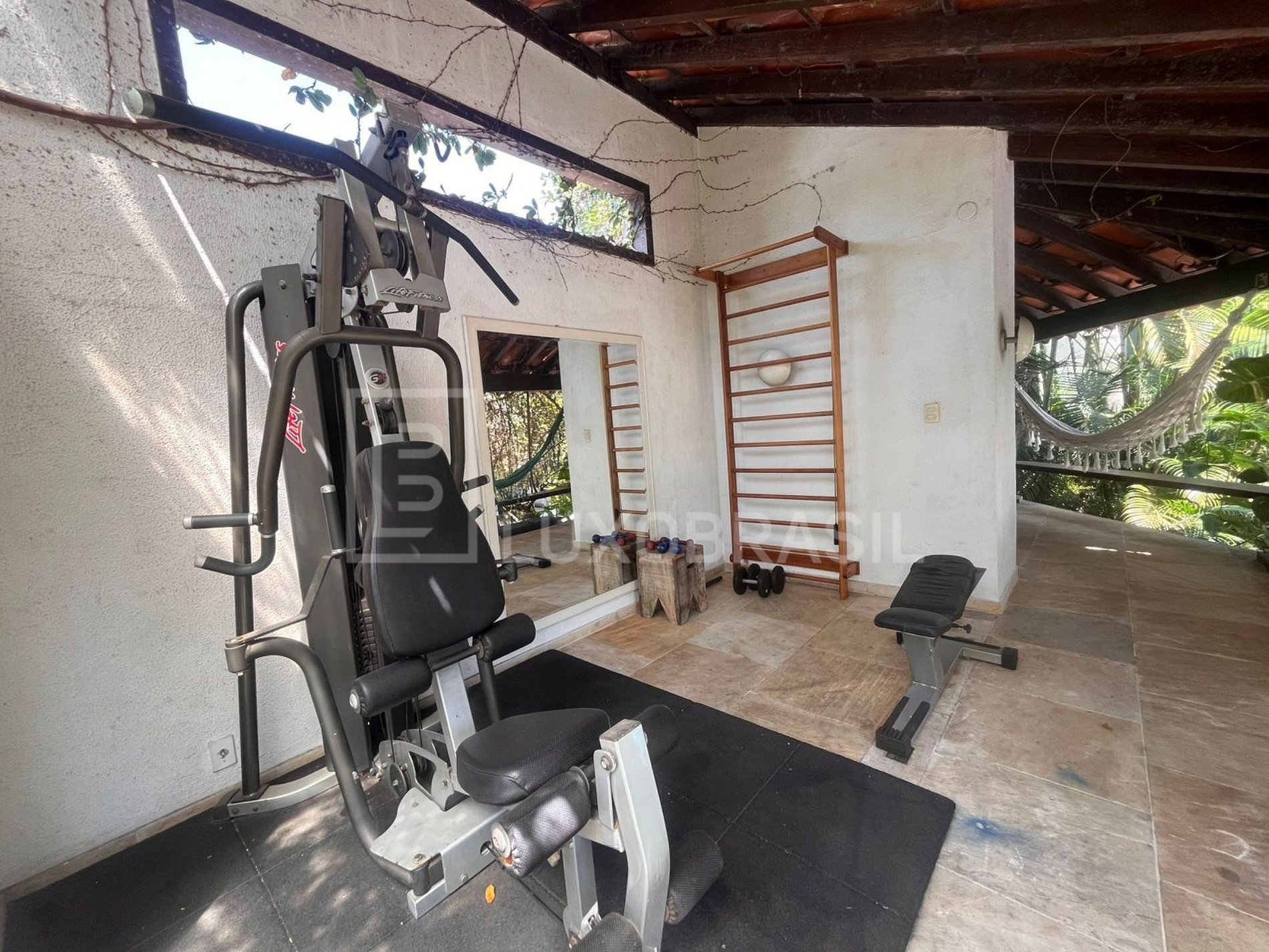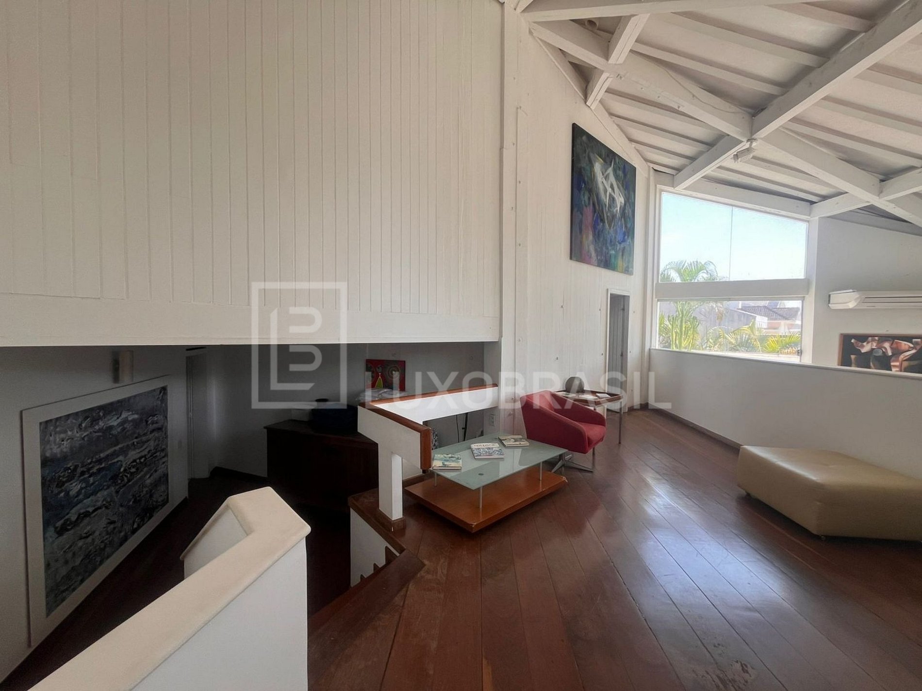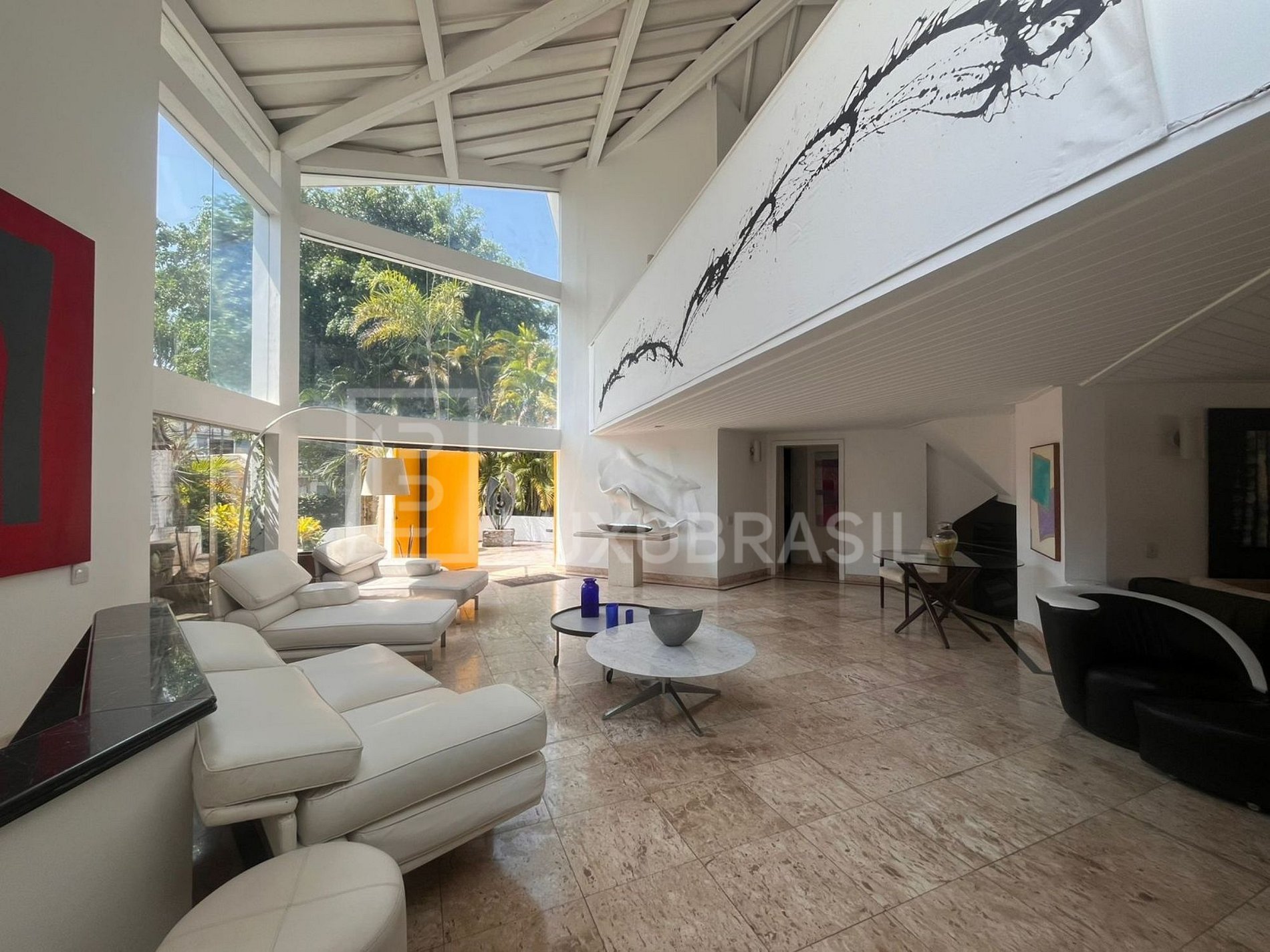 A casa possui uma ampla área externa com piscina, churrasqueira com fogão e bancada e um grande deck. Ampla sala com bar, cozinha, sala de jantar, 05 suítes com decoração moderna, grandes telas e esculturas.