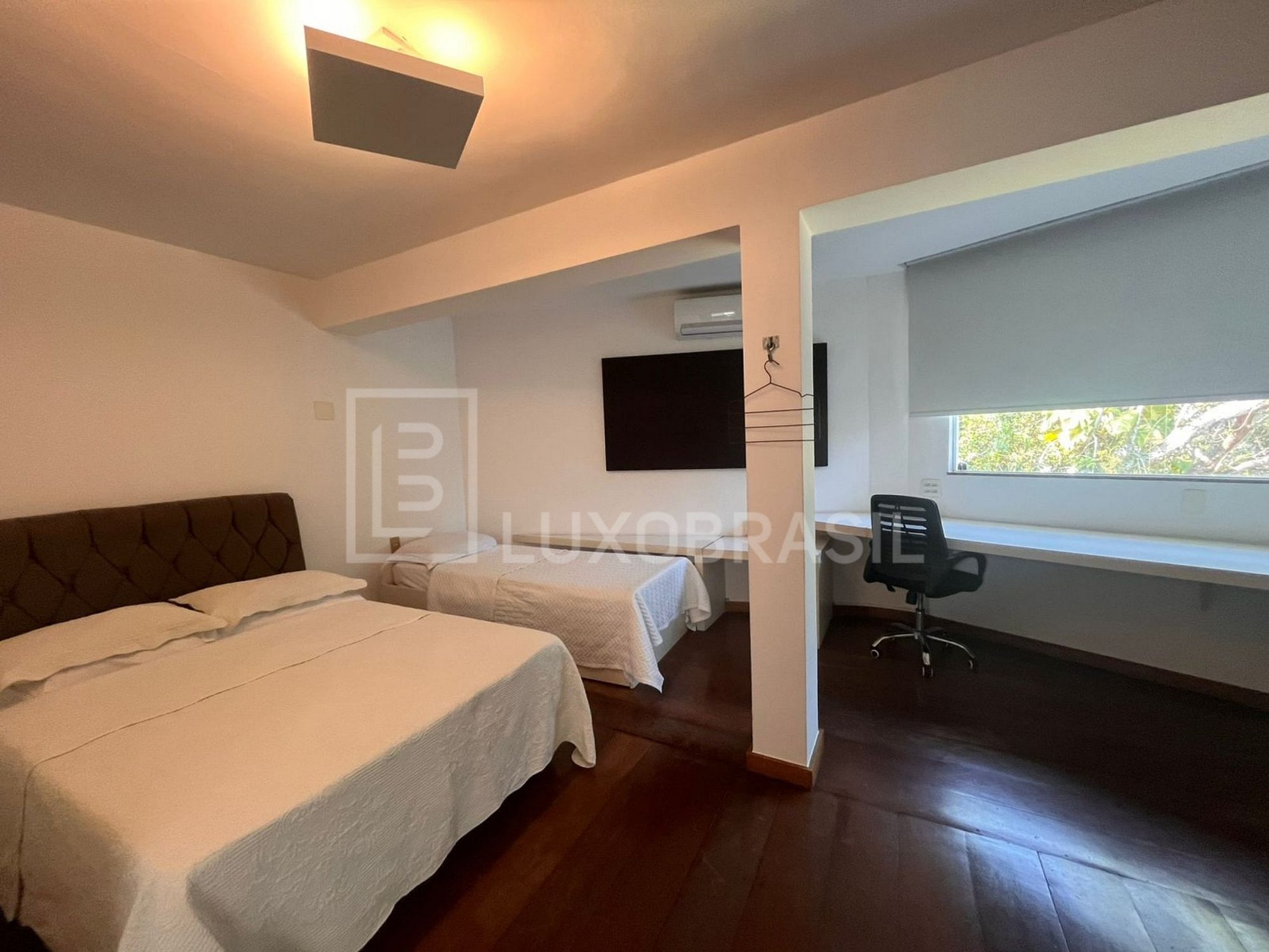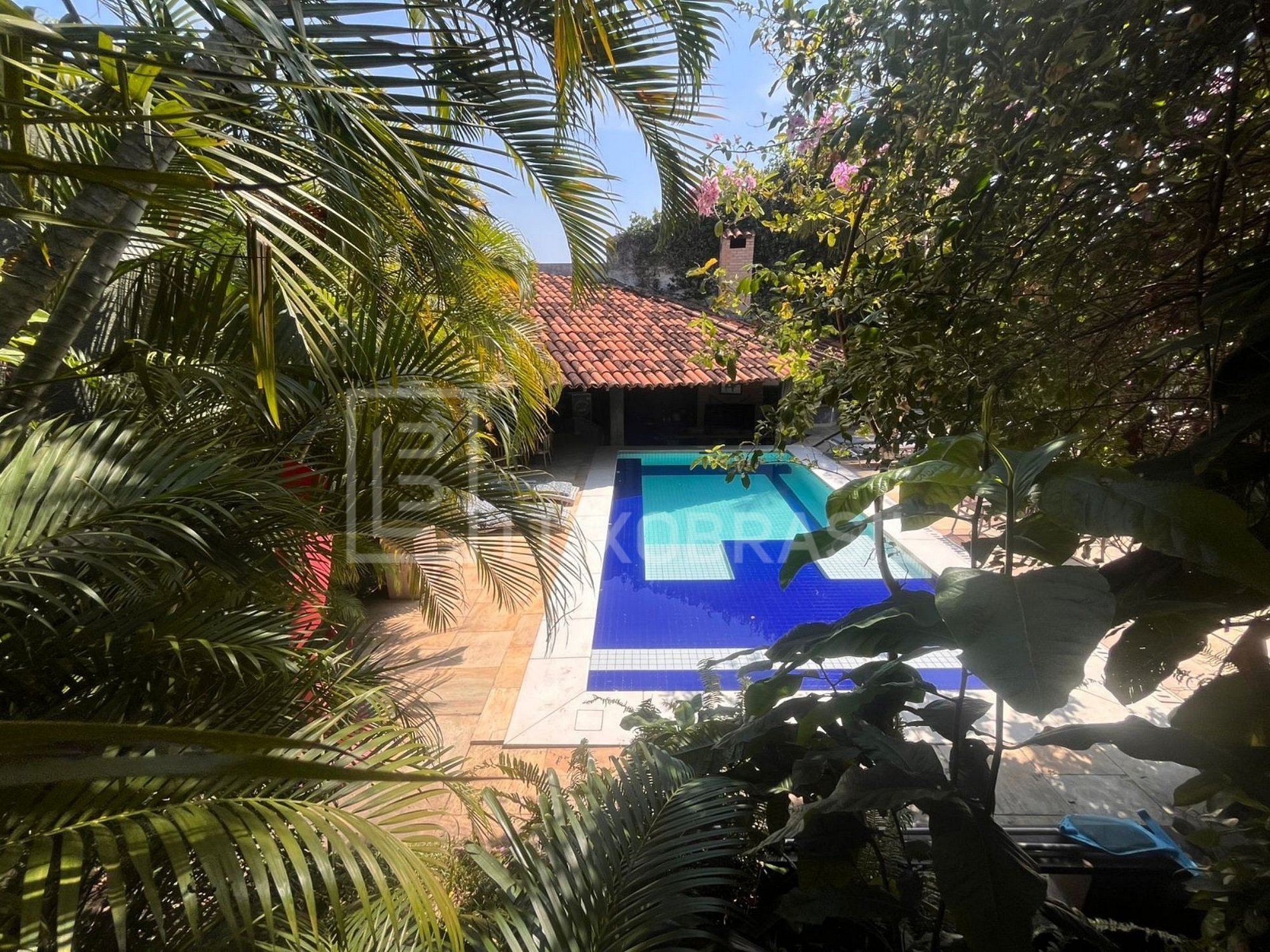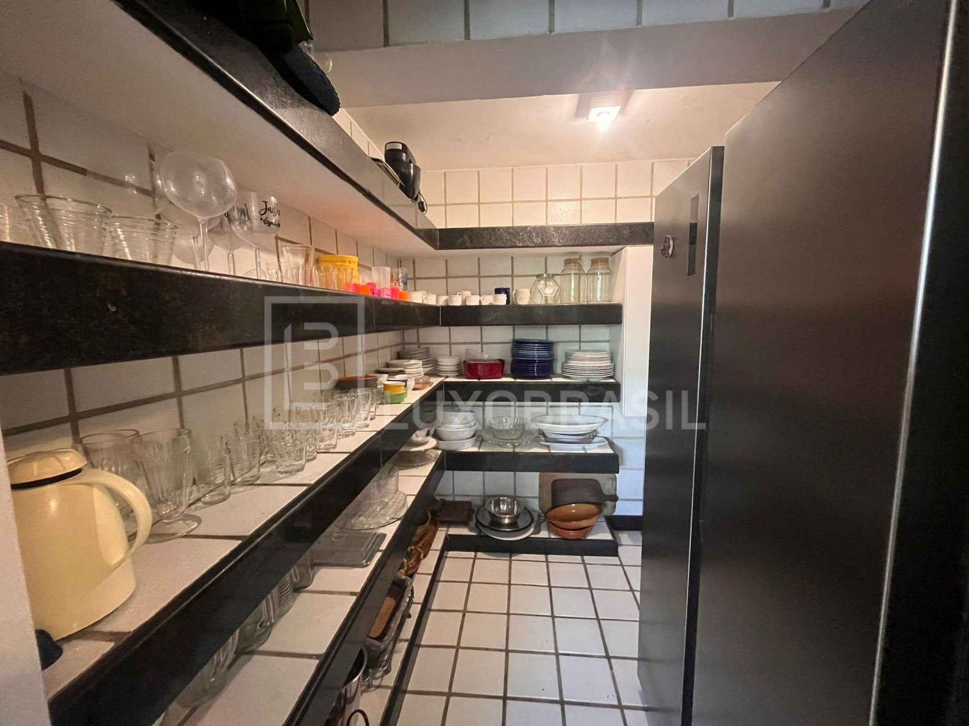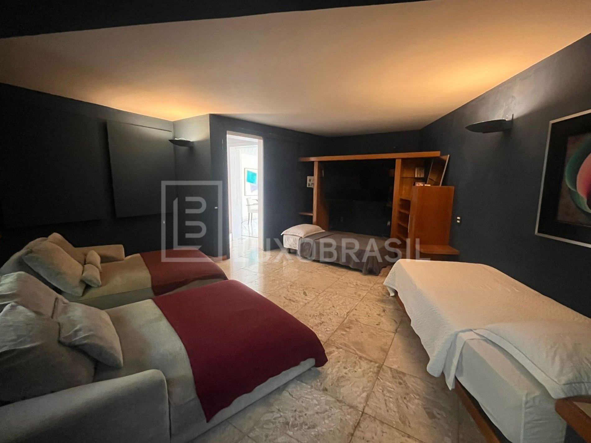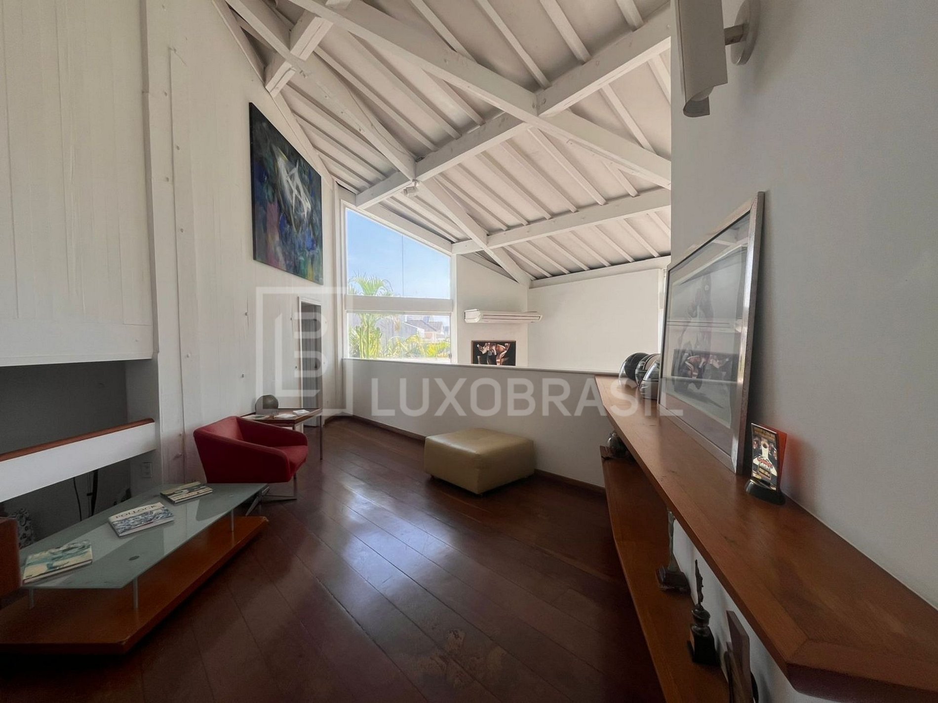 A casa possui uma ampla área externa com piscina, churrasqueira com fogão e bancada e um grande deck. Ampla sala com bar, cozinha, sala de jantar, 05 suítes com decoração moderna, grandes telas e esculturas.