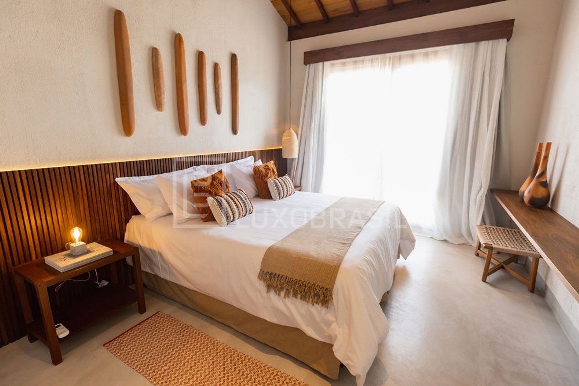 - Suíte Master Patacho: área de quase 80m², 01 cama queen, 02 camas de solteiro, 02 duchas, 02 bancadas, closet, frigobar, ampla varanda, vista para a piscina e espaço para home office.