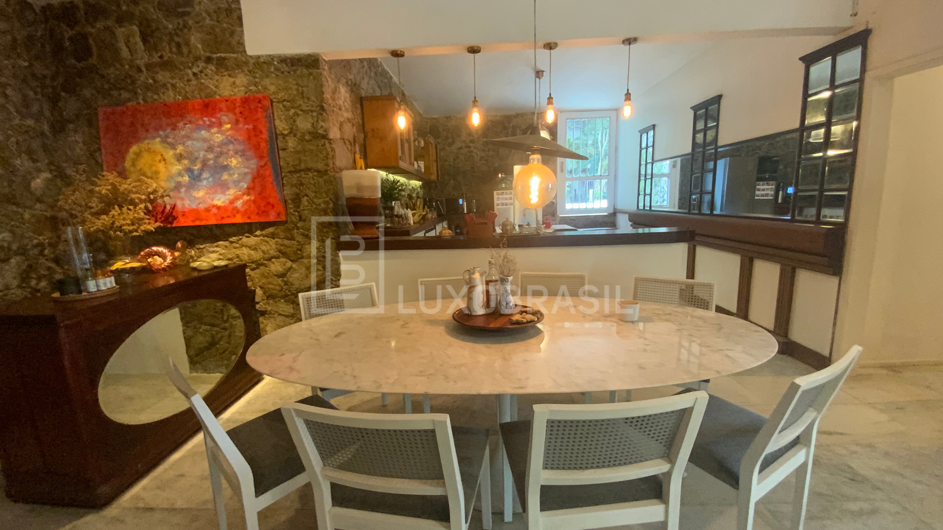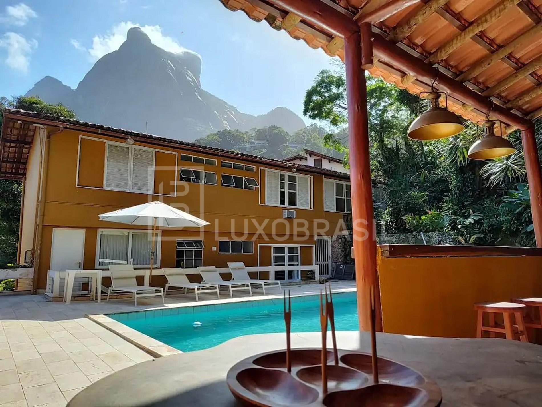 Casa com 02 andares e vista para Pedra da Gávea, com ampla sala e cozinha integrada, 03 quartos, sendo 01 suíte, conta com uma área externa com piscina, churrasqueira e quintal arborizado com jardim. Perfeito para eventos corporativos e pequenas comemorações.