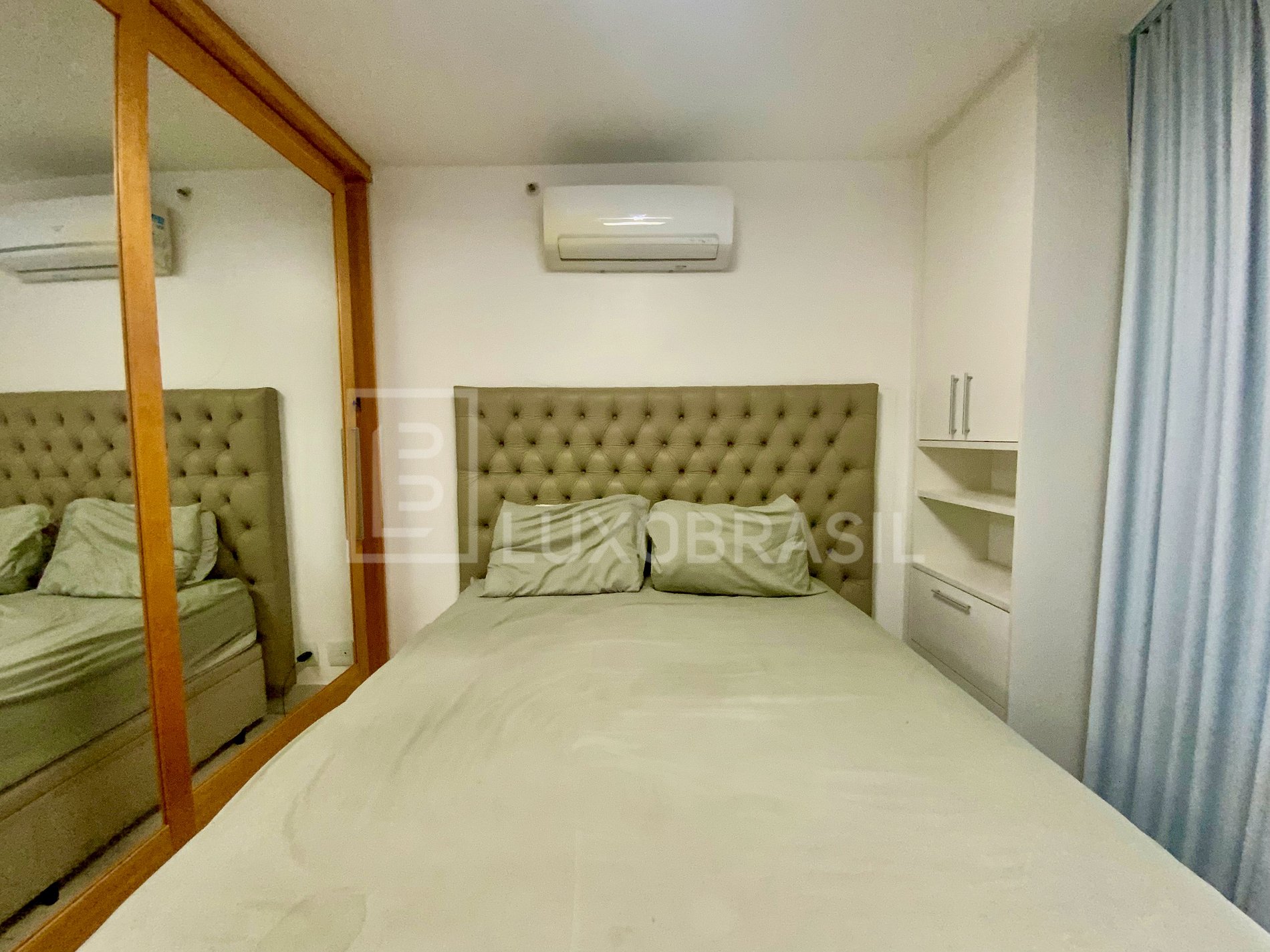 O condomínio oferece uma estrutura completa de lazer, com piscina, sauna, acesso direto à praia, lavanderia, arrumação diária, restaurante, biciletário, além de contar com portaria e segurança 24 horas e diversas comodidades próximas, como restaurantes, bares e lojas.