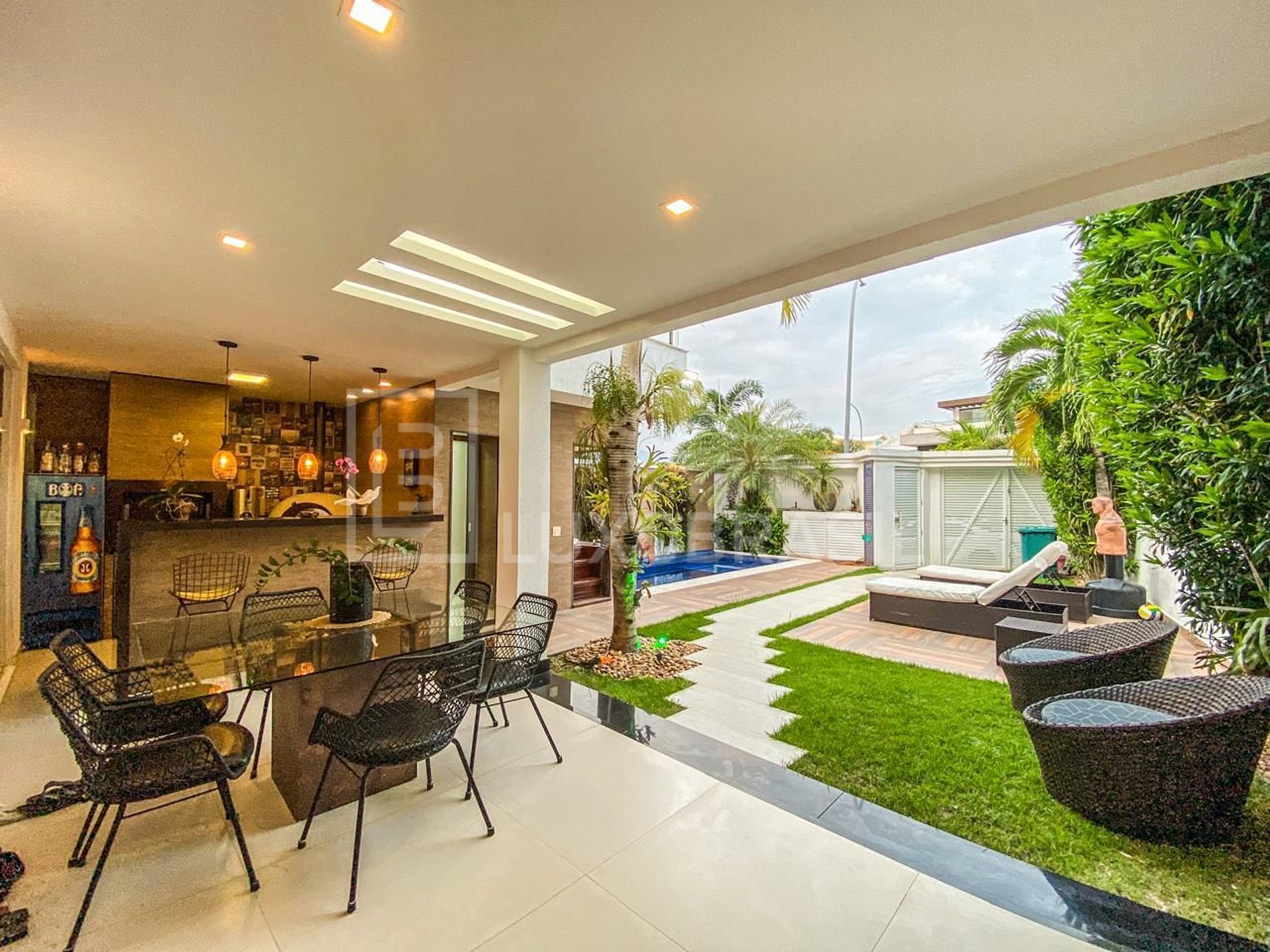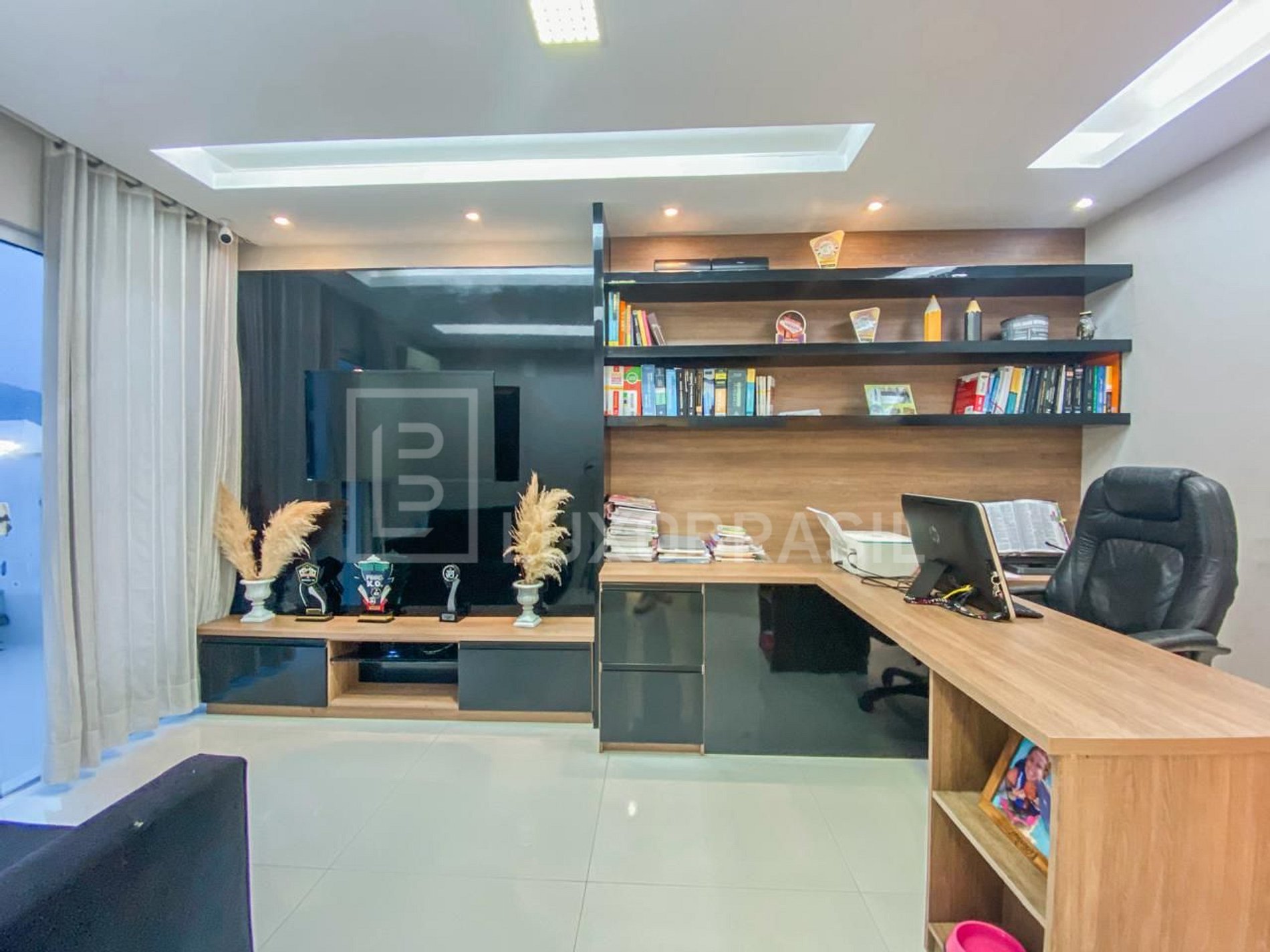 A propriedade conta com 03 andares e 04 suítes, todas com ar-condicionado. Ampla sala dividida em 04 ambientes, complementada por uma área de adega que comporta até 120 vinhos. A cozinha está totalmente equipada e há uma área de serviço com lavadora para sua conveniência.