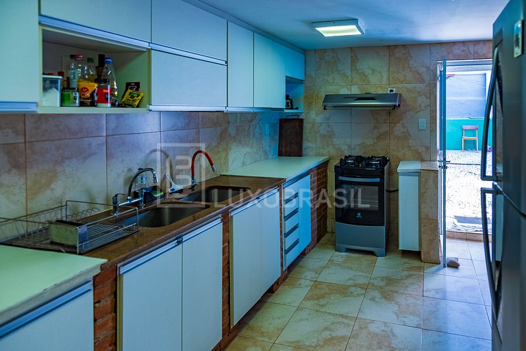 O interior é um verdadeiro convite ao conforto, com sala de estar, sala de jogos com mesa de sinuca, sala de jantar e a cozinha totalmente equipada.