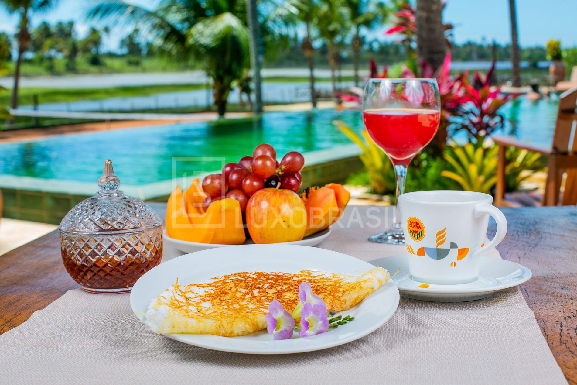 Guloseimas como pães artesanais, croissants, pães de queijo, sonhos, bolos, tortas, geleias, sucos naturais de frutas, são feitas na própria pousada, além de tapiocas e omeletes feitos na hora de acordo com a preferência do hóspede.