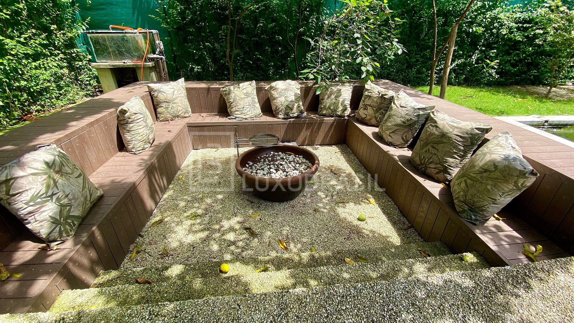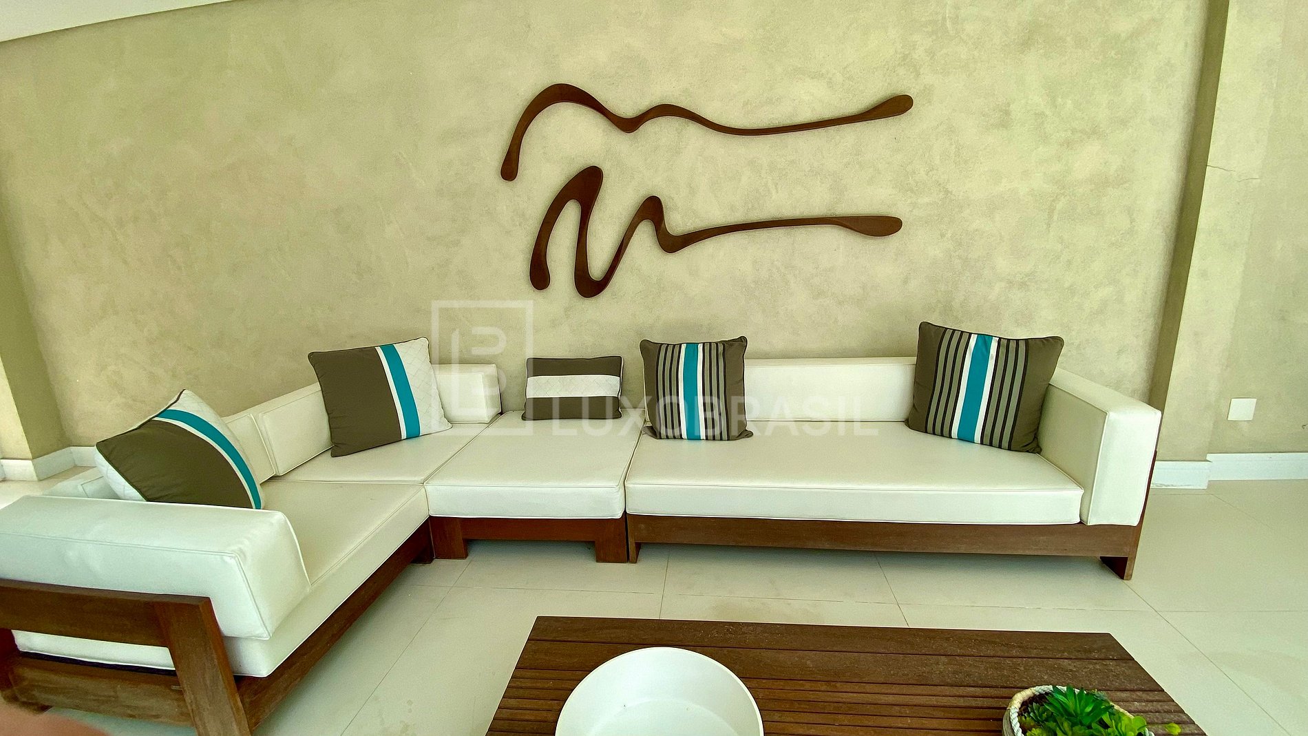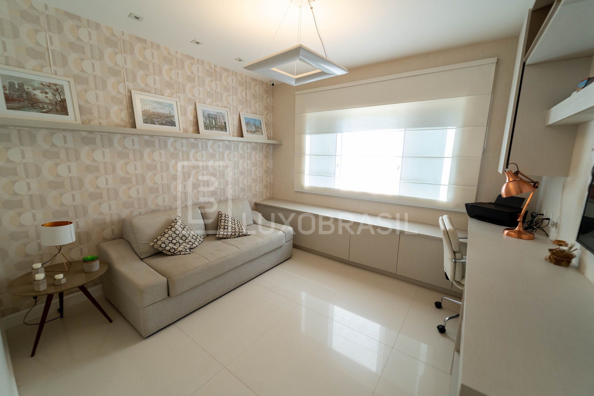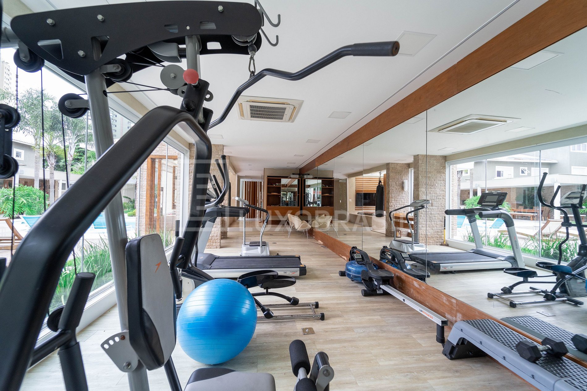 O imóvel possui duas áreas externas, a primeira com piscina, sauna, uma área de churrasqueira, pergolado com pufs, academia com hidromassagem com TV a segunda com um lago, área de jogos com mesa de sinuca, mesa de pôquer, ambiente com lareira externa.