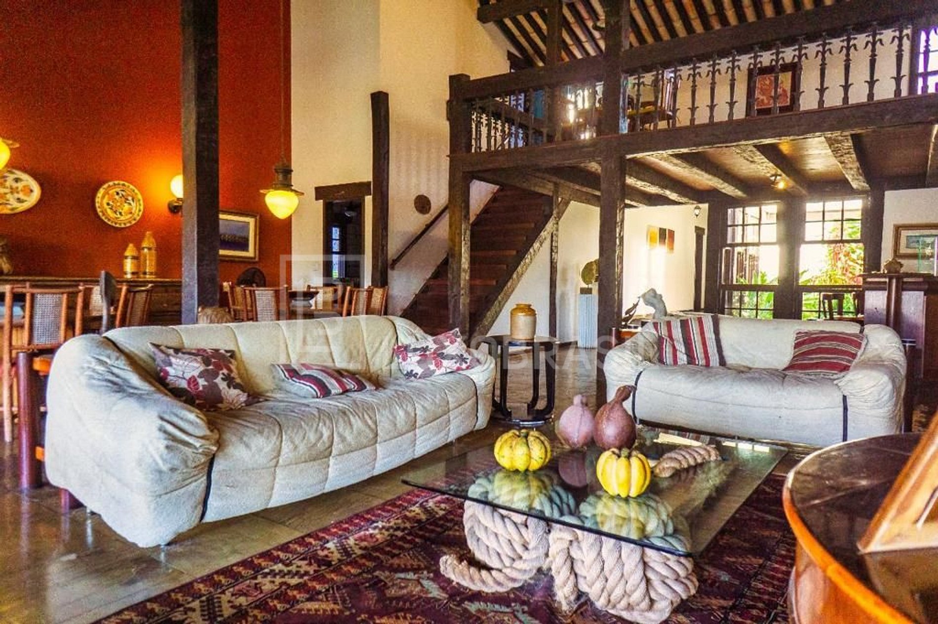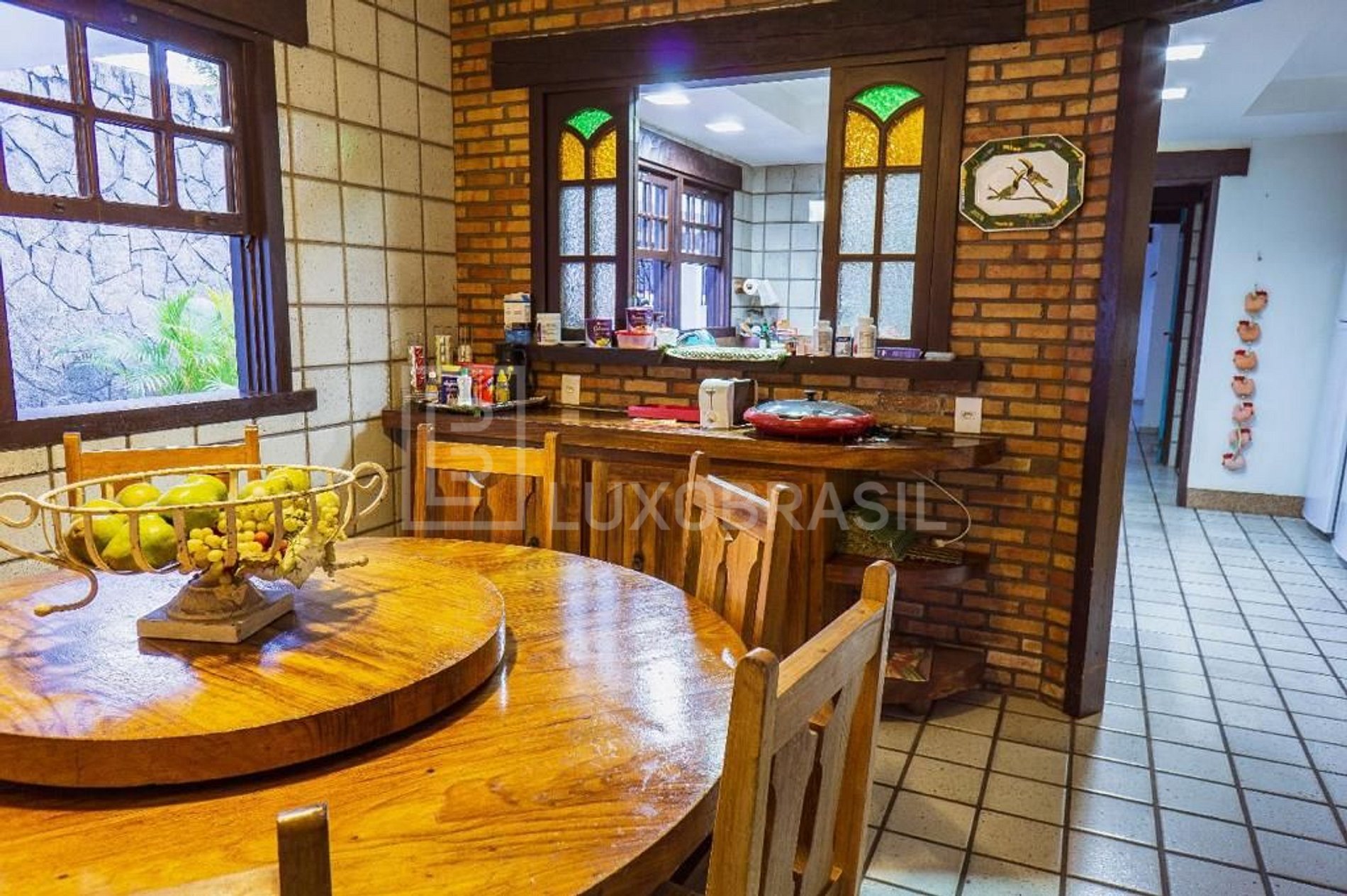 Ampla sala dividia em três ambientes com sala de estar, sala de jantar e bar, para receber convidados ou desfrutar momentos em família, copa e cozinha com fogão industrial de 6 bocas.