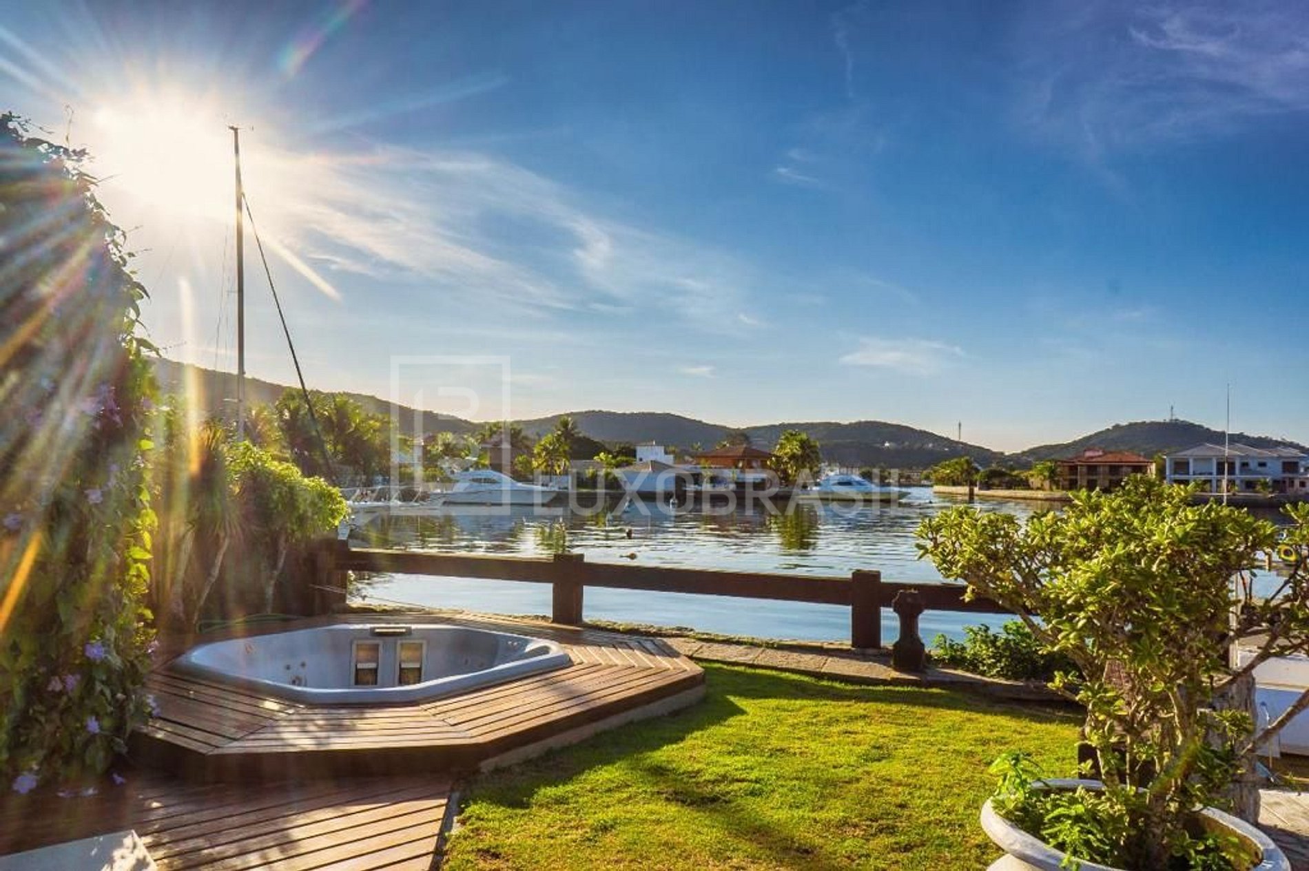 A área de lazer é um verdadeiro oásis, com jardim exuberante, piscina com áreas rasa e funda, sauna, duas duchas, jacuzzi, e área gourmet completa com churrasqueira, freezer embutido, fogão a gás e forno de pizza. O deck oferece acesso direto ao canal, com píer exclusivo para atracar barcos e Jets skis.