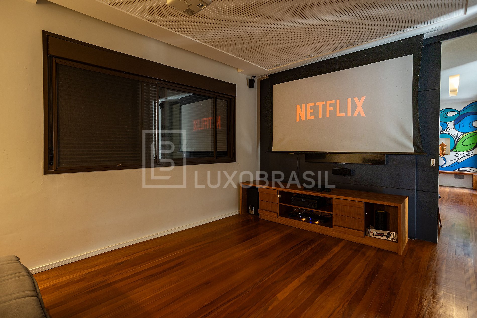 O imóvel oferece amplos espaços, incluindo sala de estar, sala de jantar, lavabo, cozinha americana em conceito aberto completamente equipada, lavanderia e sala de cinema. São quatro quartos, sendo 03 suítes, proporcionando conforto e privacidade.