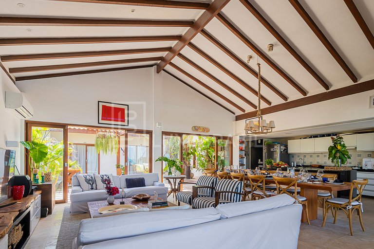 O layout privilegia o convívio. A área externa conta com uma imponente piscina de borda infinita, integrada à área gourmet com churrasqueira e forno à lenha, tudo isso de frente para o mar. No coração da casa, um charmoso deck com bar, piscina aquecida e uma hidromassagem acolhedora compõem o cenário ideal para relaxar e aproveitar a vida. O interior oferece espaços generosos, com sala integrada à cozinha americana, além de uma segunda sala com cozinha de apoio, mesa de pingue-pongue e futmesa. O sistema de som de alta performance Cambridge Áudio / B&W garante trilha sonora à altura da experiência.
