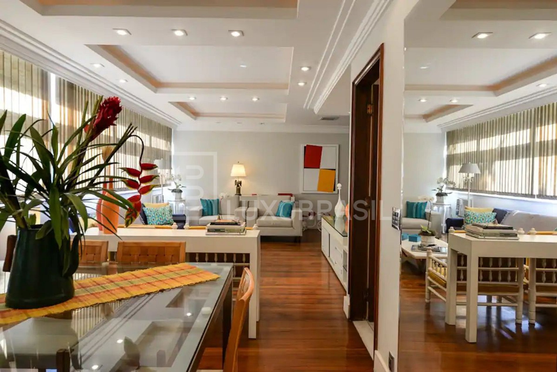 Elegante apartamento localizado em Ipanema com vista panorâmica do Cristo Redentor, com 03 quartos, sendo 01 suíte (todos posicionados na parte de trás do imóvel para total privacidade) com TV's de tela plana, ar condicionado e cortinas blackout, 02 banheiros, projetada com cores vibrantes e muita iluminação ambiente, a sala de estar aberta é o coração da casa e o lugar perfeito para entreter ou simplesmente relaxar depois de um dia de visita turística. Desfrute de uma refeição na mesa de jantar para 06 pessoas acentuadas por uma parede espelhada, arte original e um candelabro elegante. A propriedade está totalmente mobiliada e bem designada. A cozinha é estocada com tudo o que você precisará: eletrodomésticos, utensílios de cozinha, pratos, etc. 01 Vaga de garagem.