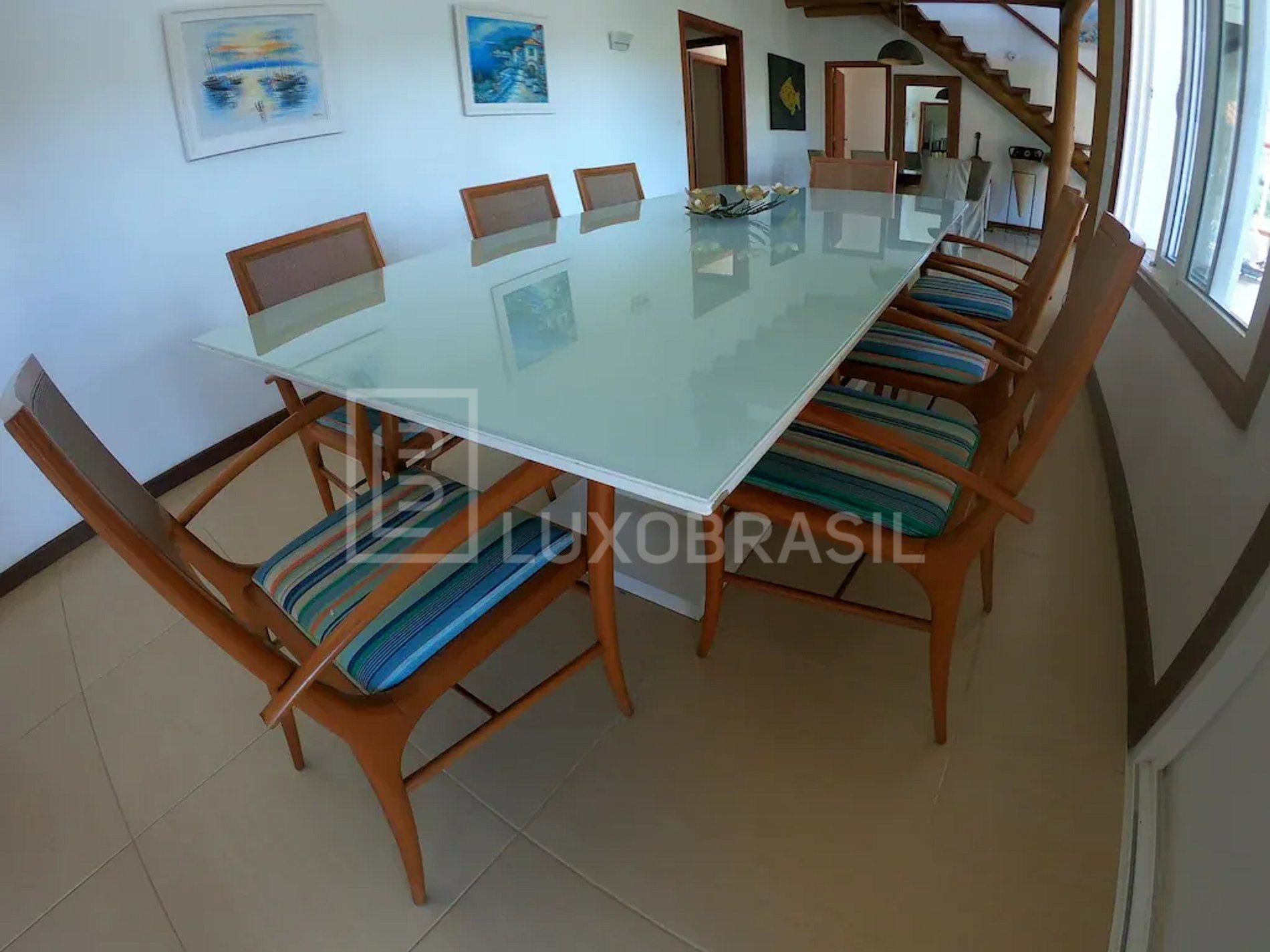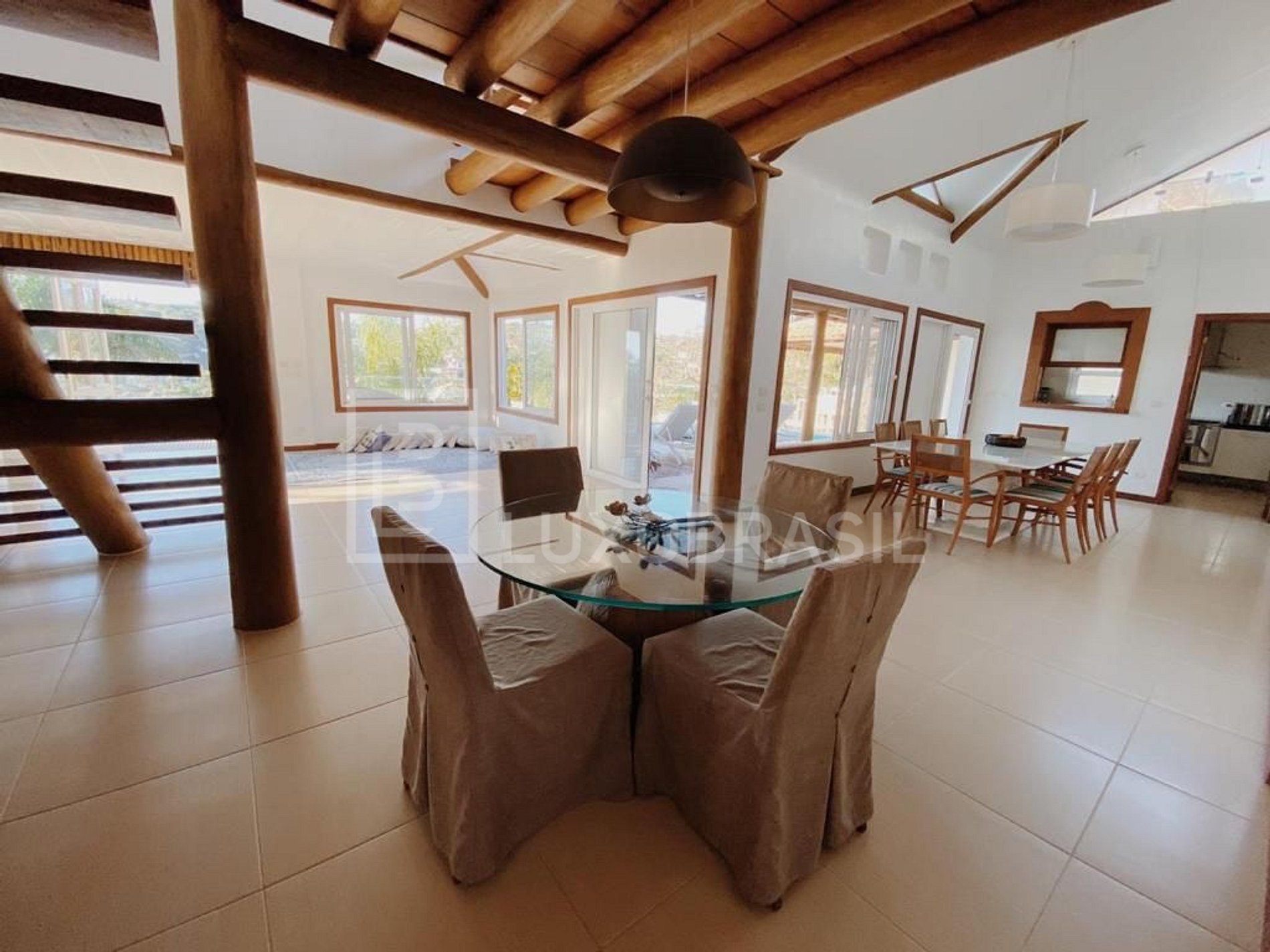 A casa possui 06 suítes, todas com ar-condicionado e TV, sala de estar com sofá e Smart TV 55", ampla sala de jantar, espaçosa e iluminada cozinha equipadas com todos os utensílios necessários e um espaço com adega de vinhos com mesa de 04 lugares para apreciar um bom vinho, seguido de uma boa conversa.