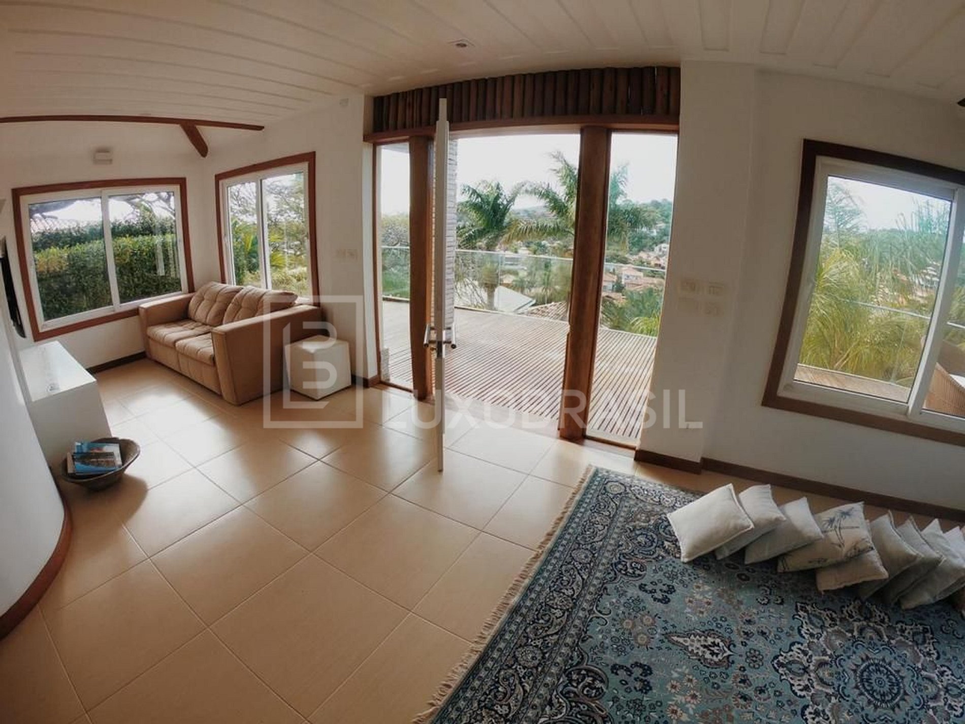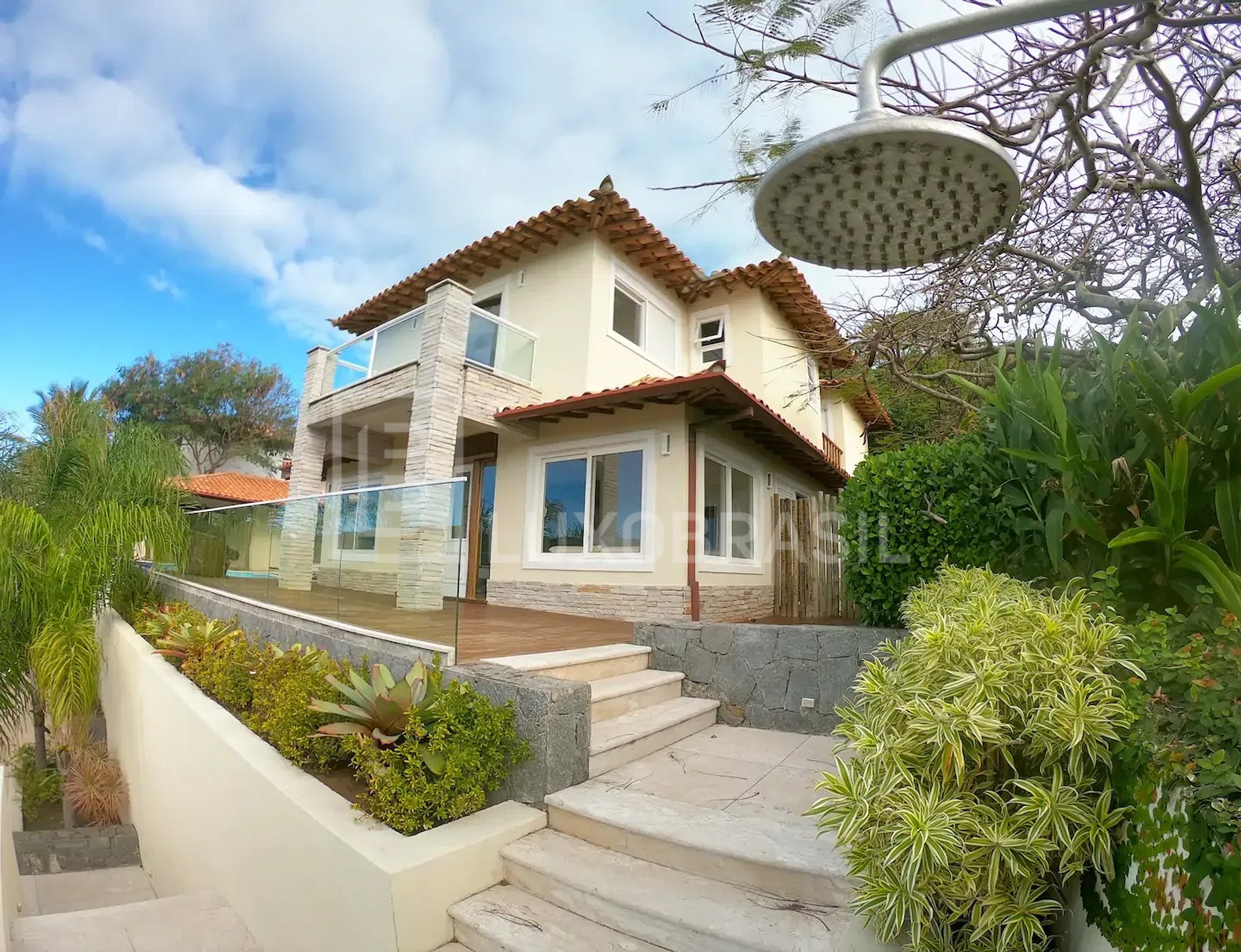 Deslumbrante mansão em condomínio fechado com segurança 24h, entrada exclusiva com amplo gramado, conforto e privacidade para Praia da Ferradurinha. Localizada à 300 metros da Praia de Geribá.