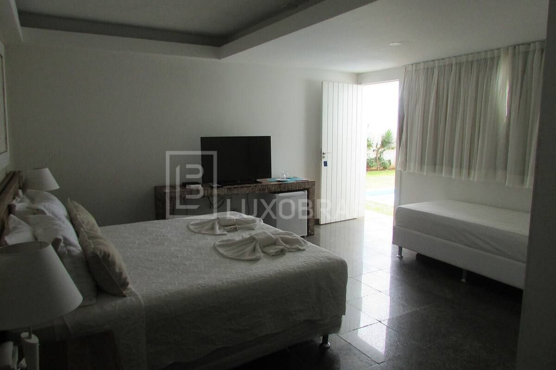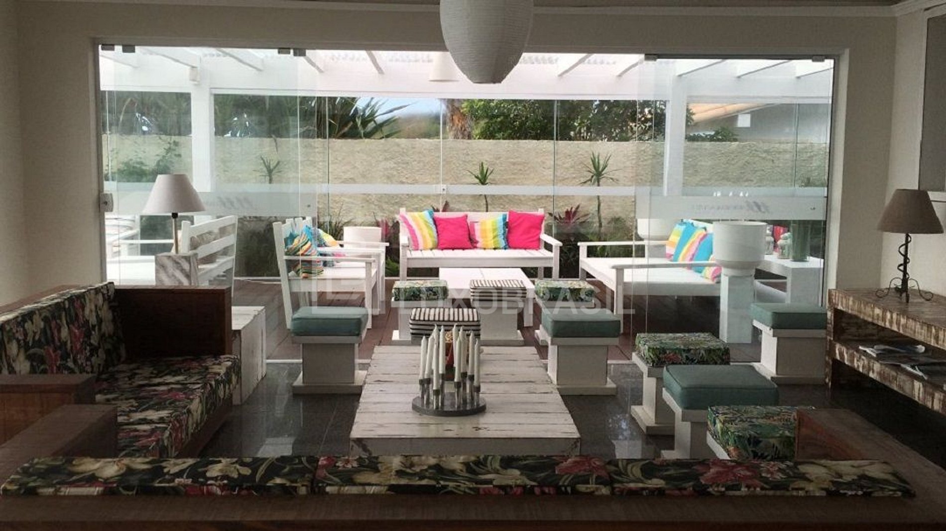 A casa é composta por 05 amplas e aconchegantes suítes, todas equipadas com TV e ar-condicionado, sendo 04 suítes com vista mar e 01 suíte com vista do jardim. A casa ainda conta com sala de estar com dois ambientes, espaçosa sala de jantar, bar e cozinha completa. Na área externa você encontra uma linda piscina, churrasqueira portátil, 03 banheiros sociais, deck revestido em vidro com vista para o mar, além de uma faixa de areia particular, onde você poderá relaxar e admirar uma bela vista.