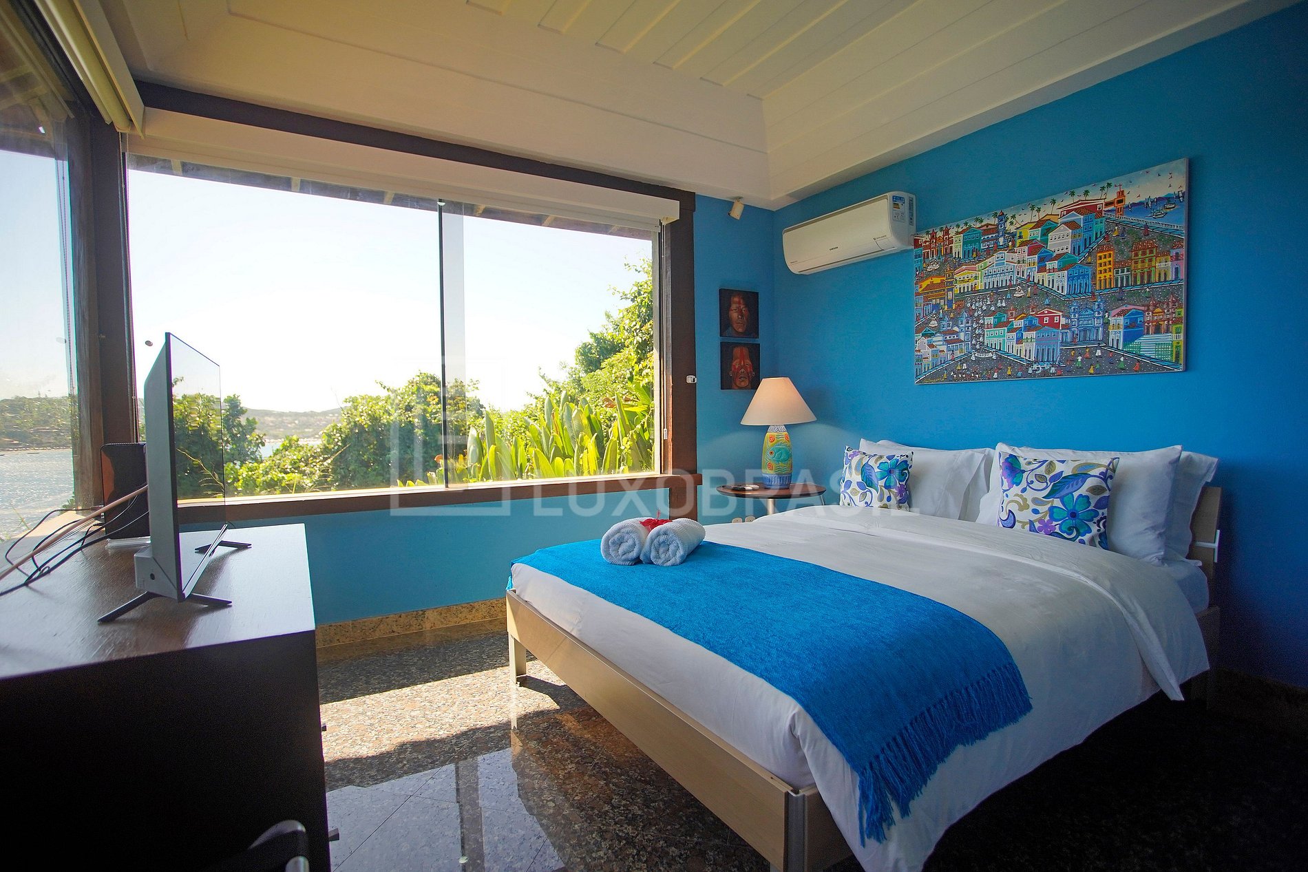 Espetacular Villa com vista para o mar e Praia da Ferradura, com 06 amplas suítes, janelas panorâmicas e varanda com vista, TV com canais a cabo, ar-condicionado e frigobar. Também possui ampla sala de TV, 02 salas de estar, sala de jantar e cozinha americana com todos os utensílios. A área externa dispõe de uma piscina com borda infinita, jacuzzi, varanda e área gourmet com churrasqueira e forno para pizza separadas em três ambientes. Cenário com águas cristalinas, perfeita decoração e ambientação. Lugar esplêndido com sossego, conforto e muita beleza natural.