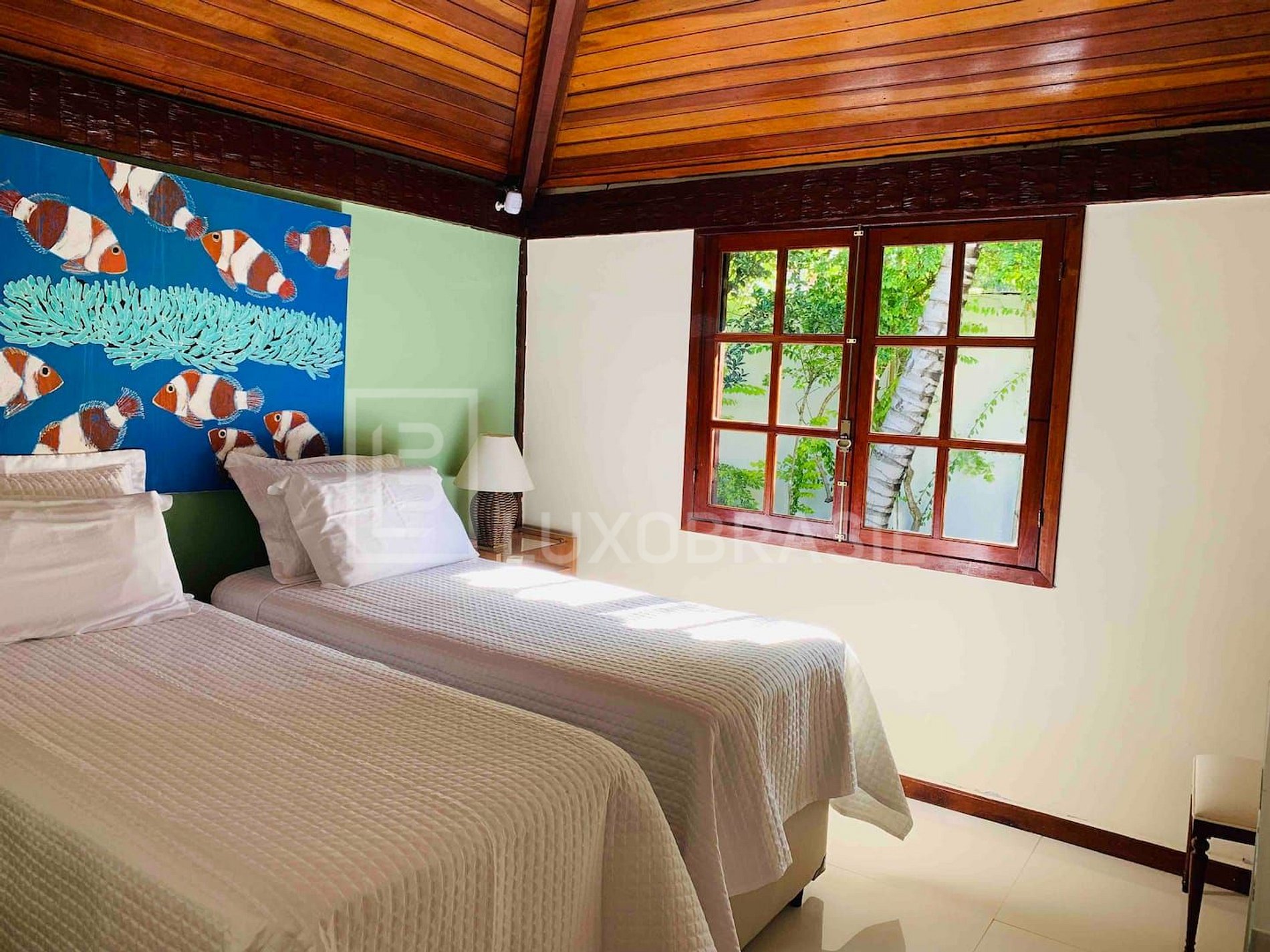 A casa possui decoração moderna, sem perder a delicadeza e aconchegante que nos remete a um conceito de lar. Composta de 04 quartos, sendo 01 suíte, ampla sala de estar, 07 banheiros, sala de TV, sala de jantar e cozinha totalmente equipada.