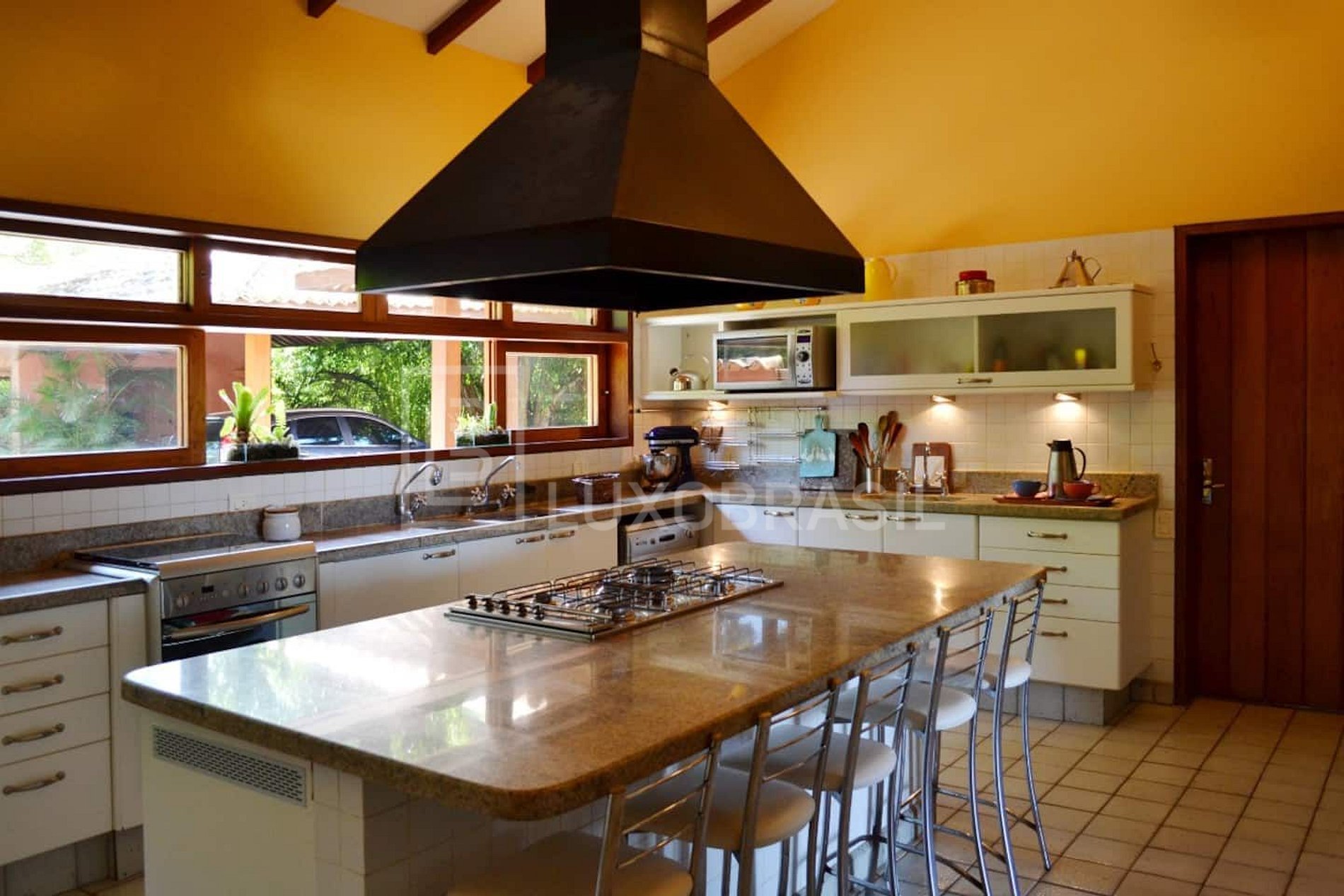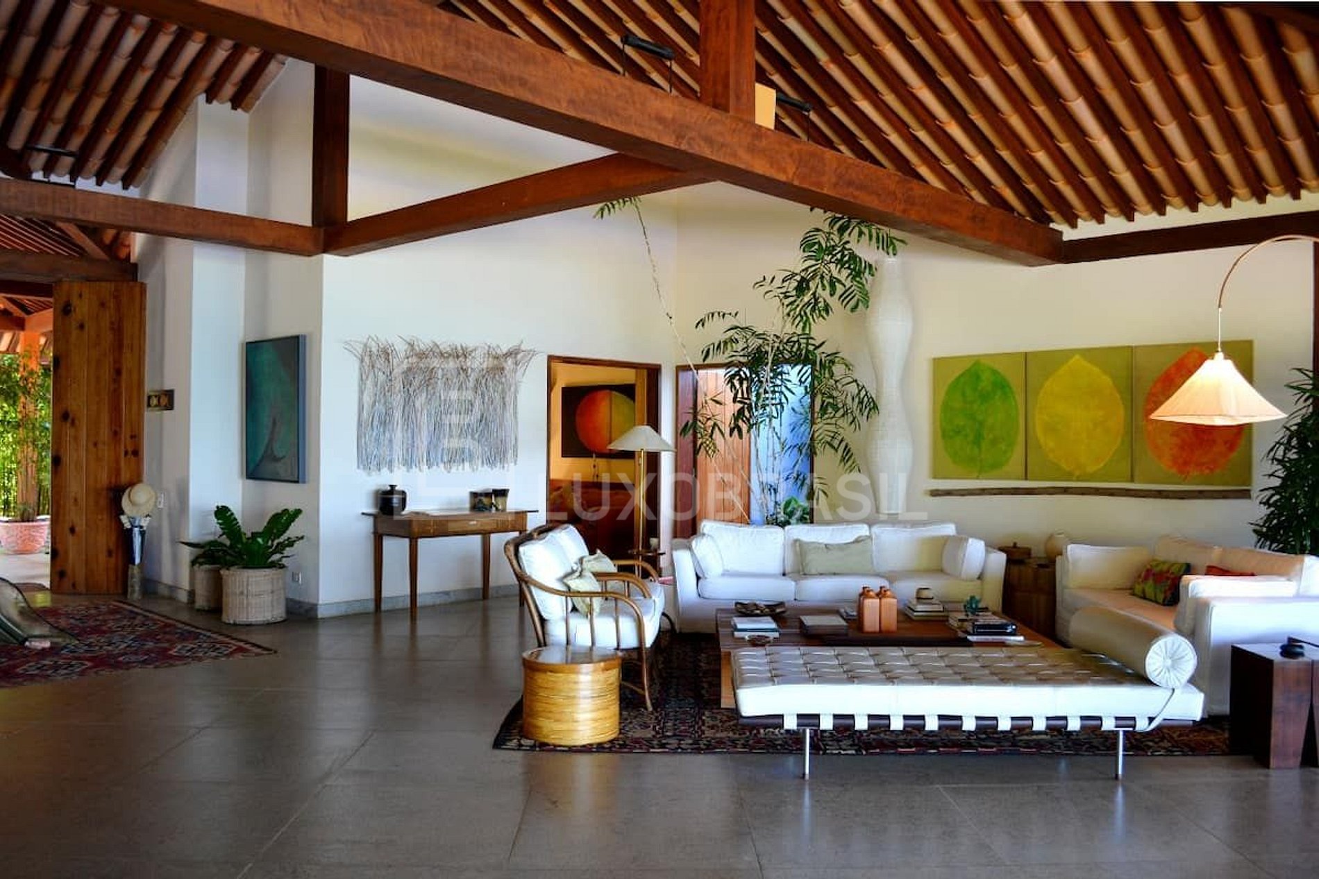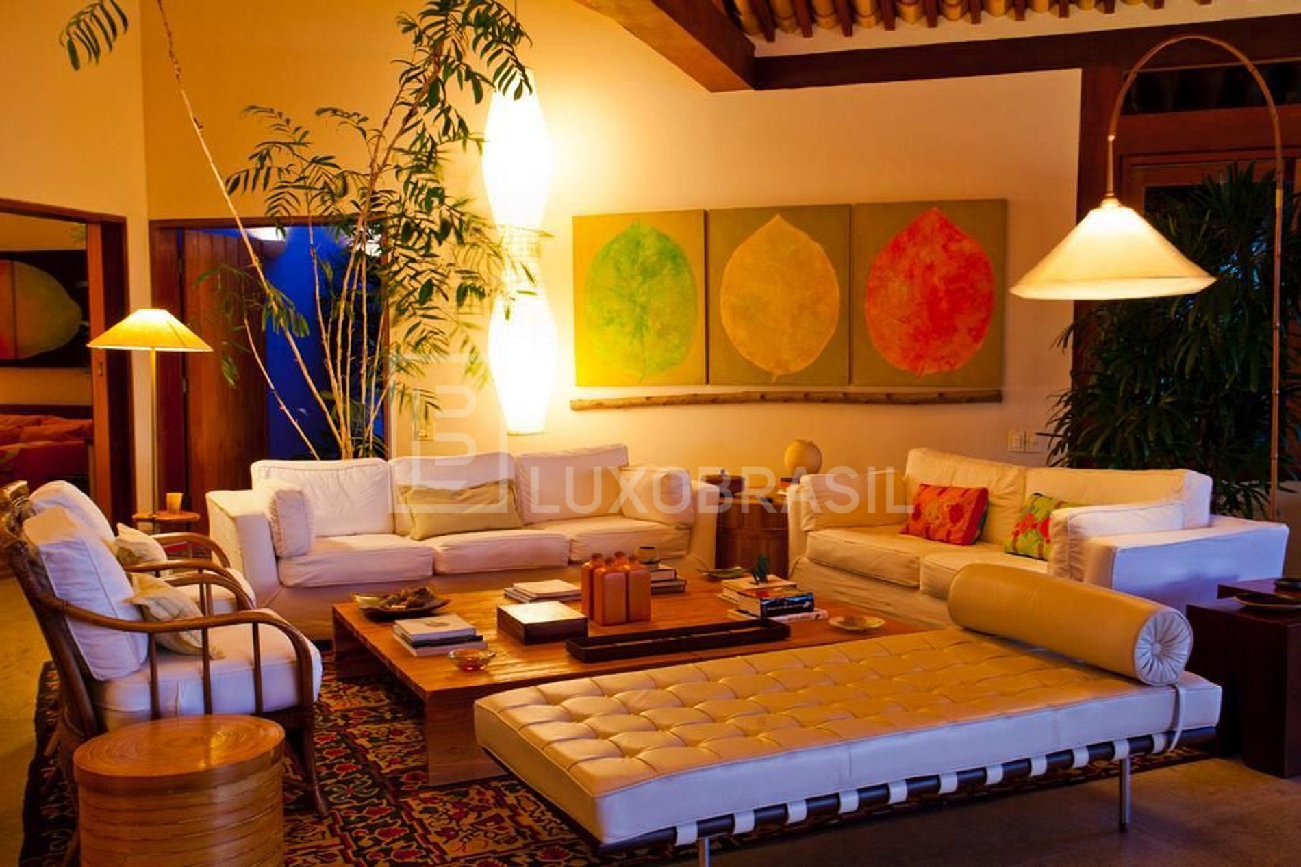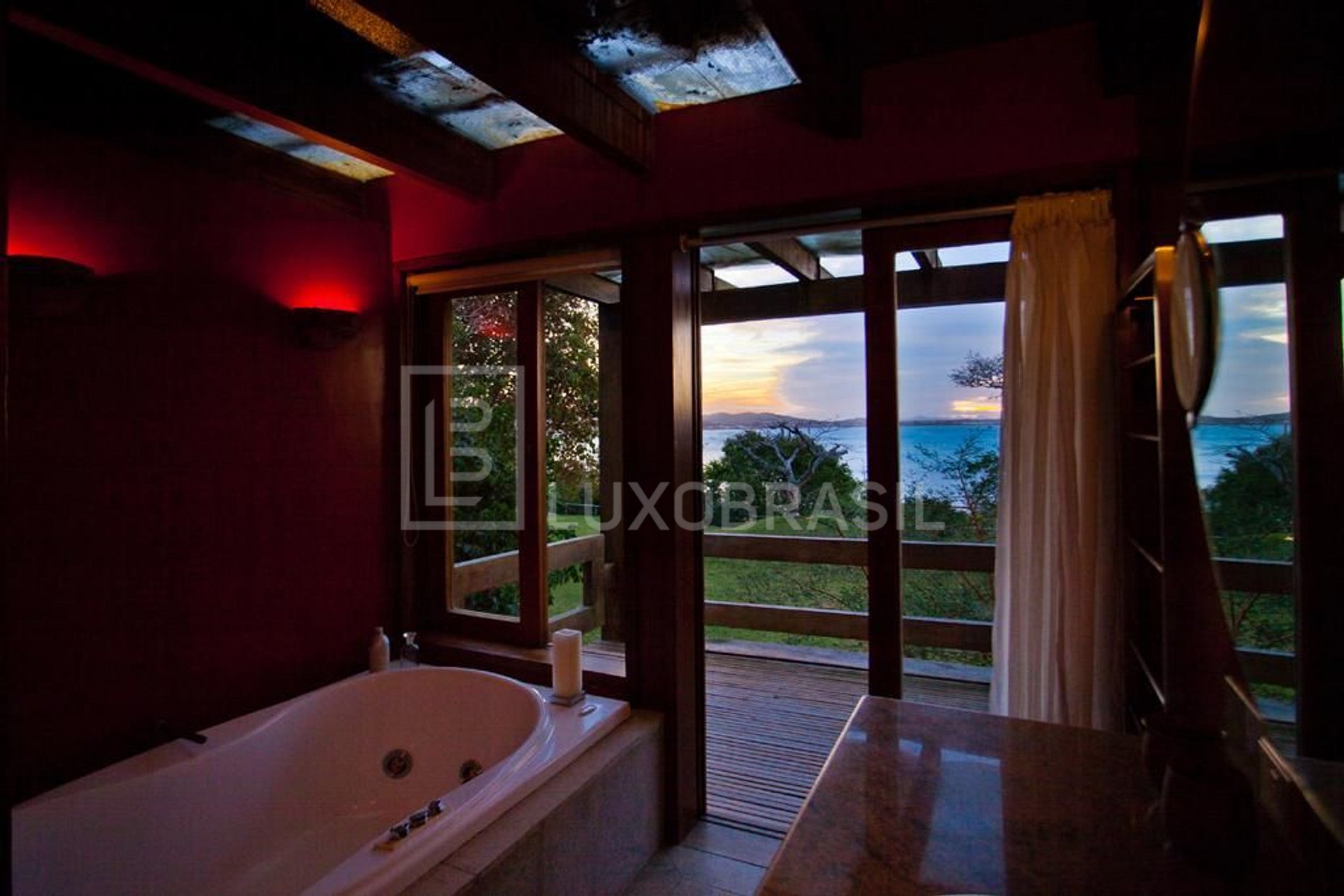 Deslumbrante Villa frente mar, com espetacular arquitetura, composta com 07 suítes, todas com ar-condicionado split, 04 salas, cozinha totalmente equipada, lareira interna e espaço de trabalho exclusivo com Wi-Fi.