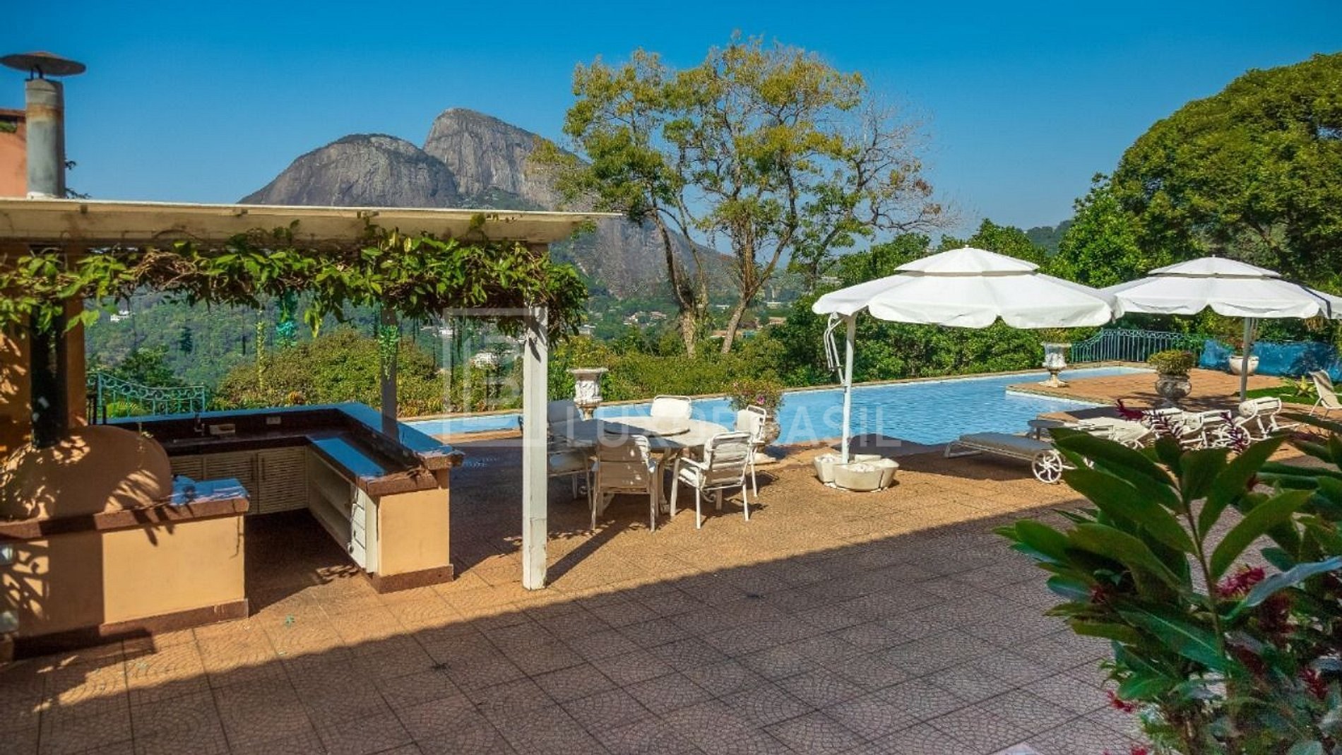 LUXOBRASIL vende deslumbrante mansão, localizada em condomínio fechado na Gávea, bairro nobre do Rio de Janeiro. Esta impressionante propriedade conta com 1.600 m² de área construída, sem incluir a área da piscina, e um terreno total de 5800 m².