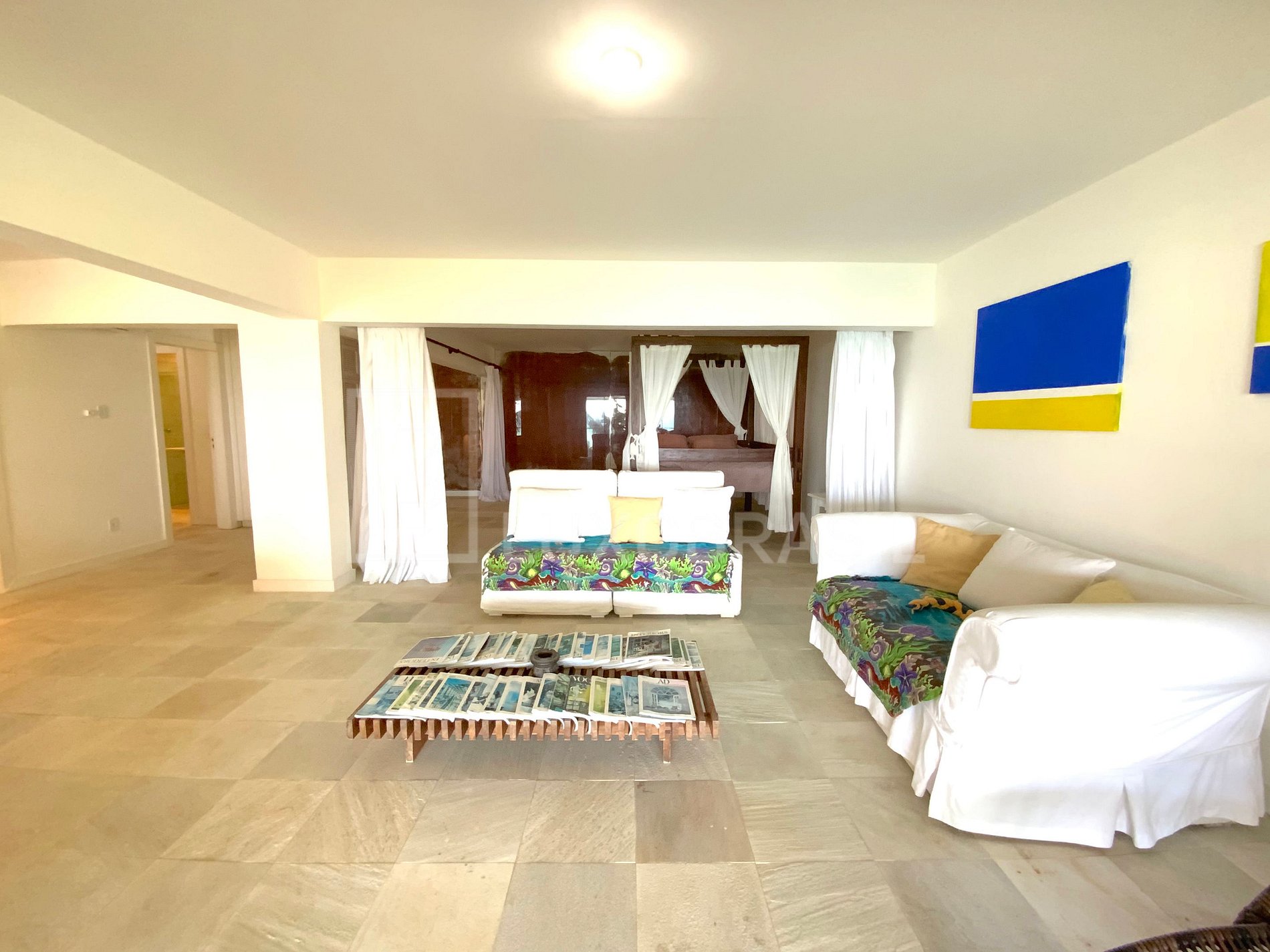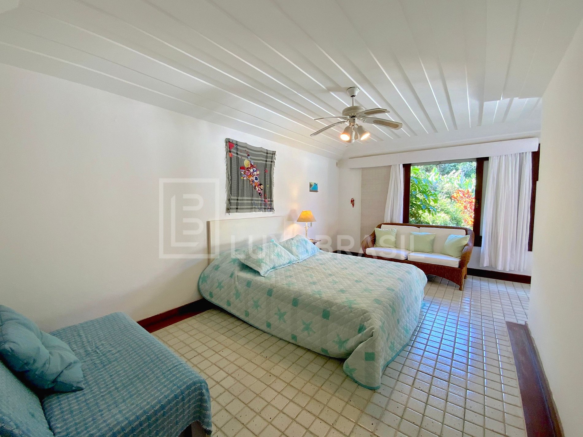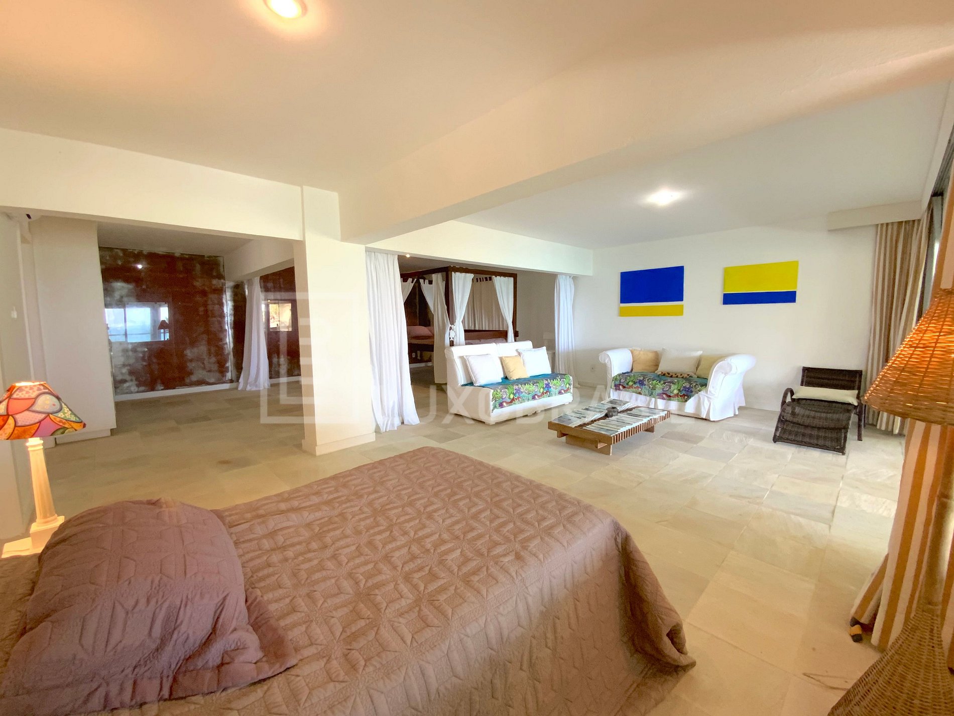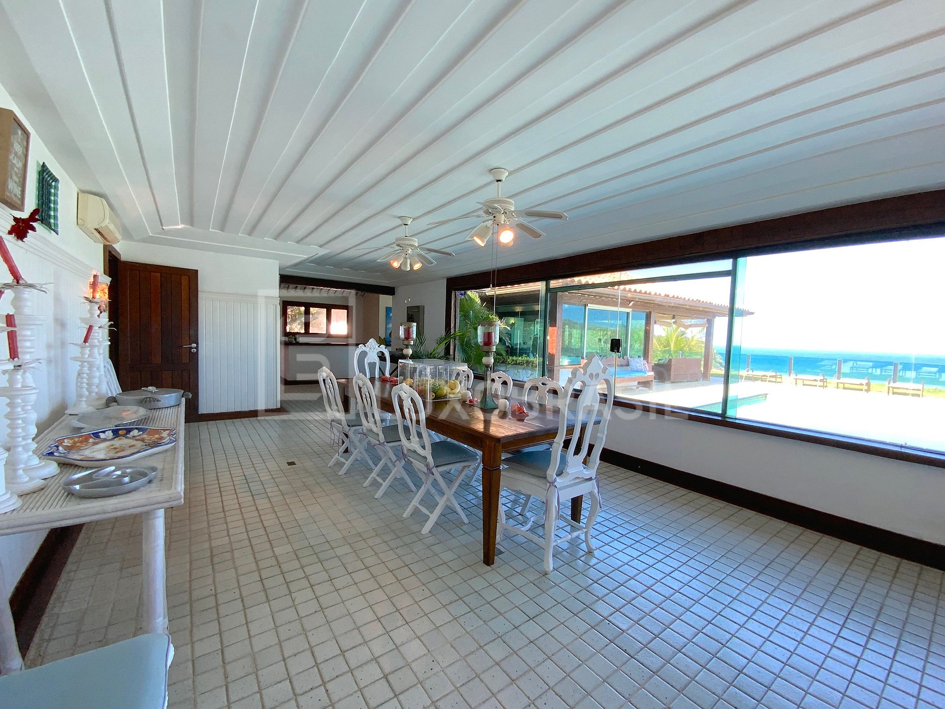 A Villa conta com 11 quartos, sendo 10 suítes luxuosas, uma sala de estar com 03 ambientes, todas com vista para o mar, um lavabo, uma ampla sala, um bar, uma cozinha espaçosa, uma sala de jogos e uma quadra de squash.