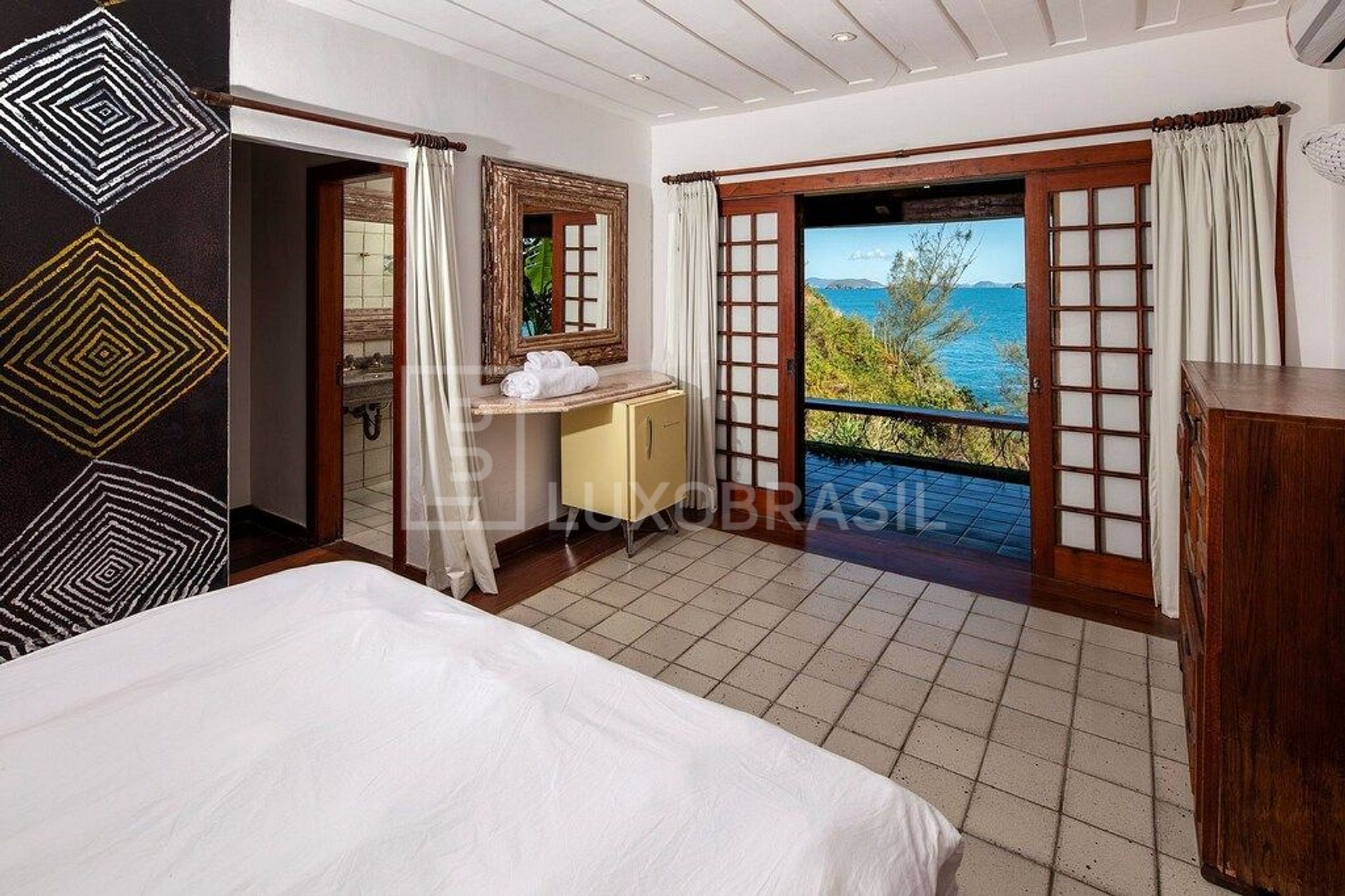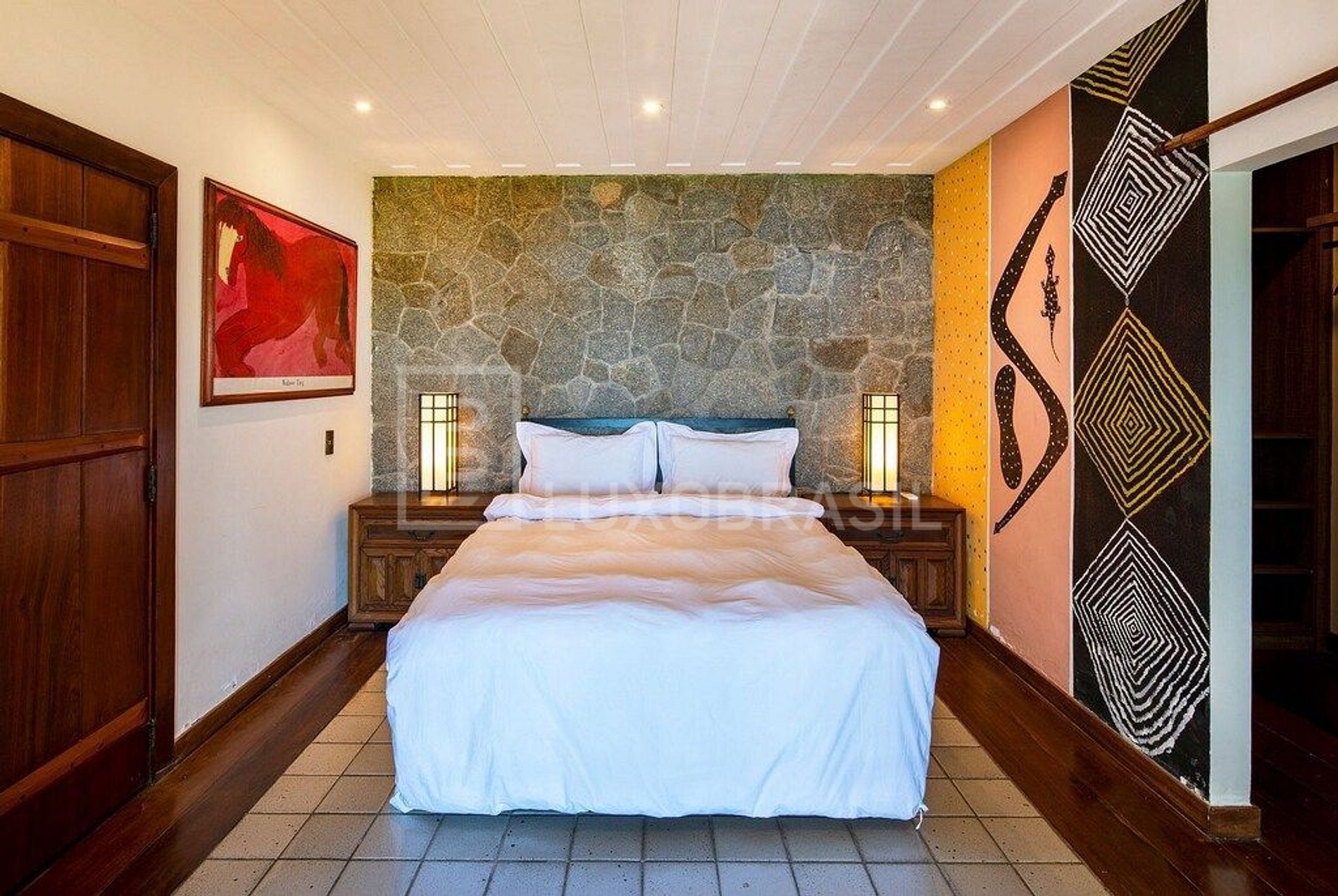 A arquitetura da casa foi pensada de forma que se aproveite ao máximo o seu entorno natural, decorada no estilo africano, obra do grande decorador israelense Mooni EzraCom. A mansão possui amplo deck de madeira com bela vista do mar e das praias que rodeiam o lugar. Você poderá curtir e se encantar com o pôr do sol todos os dias a partir das espreguiçadeiras ou a partir da maravilhosa piscina infinita da casa, que vai de encontro ao mar. Devido a sua estratégica localização, no alto de uma formação rochosa, você se sentirá flutuando sobre as águas do mar.