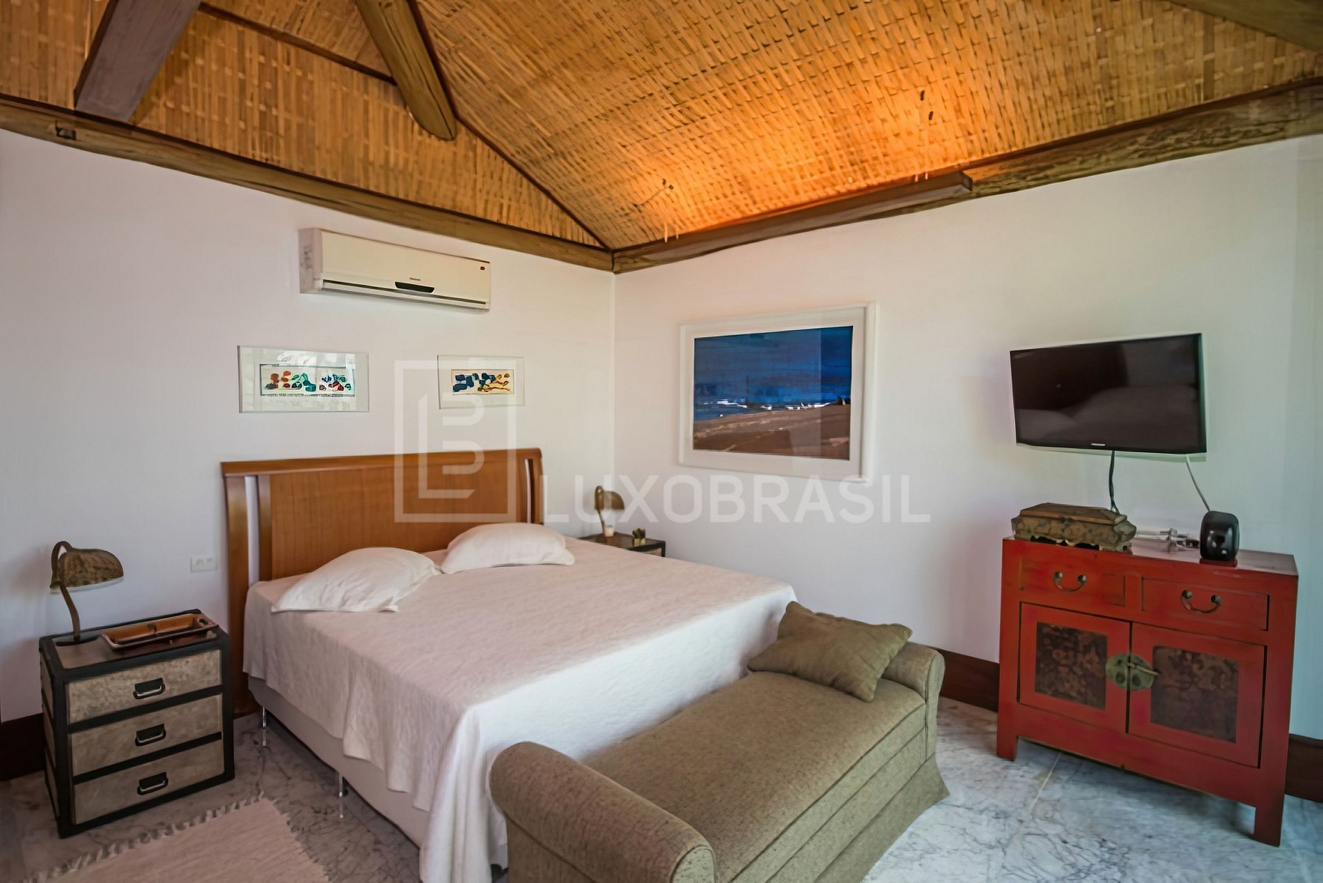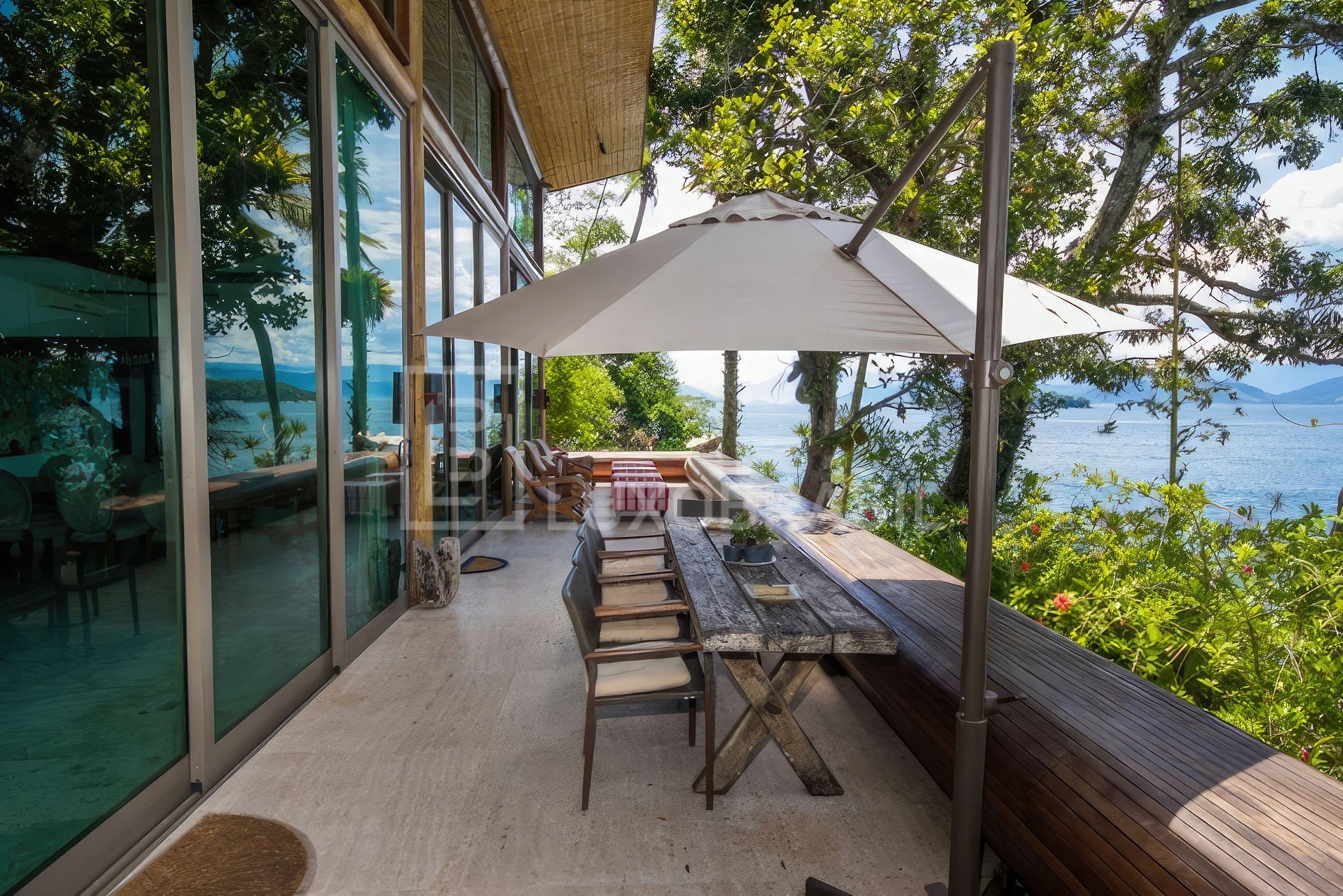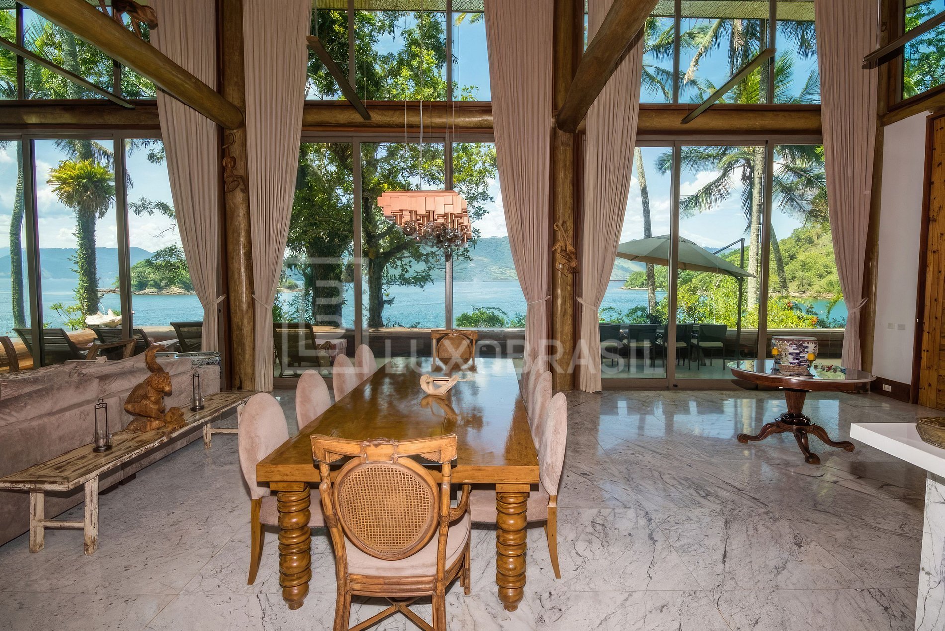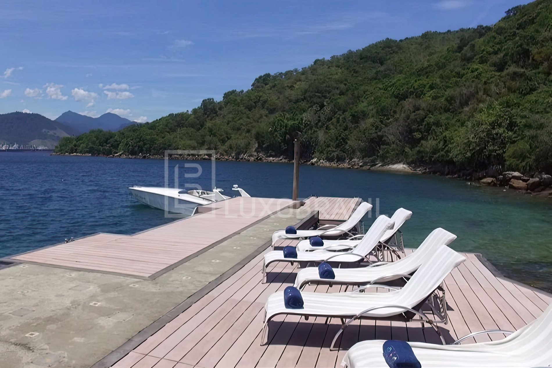 Esta é a única residência da ilha, composta pela Casa Principal, que possui sala de estar, sala de TV, lavabo, cozinha, churrasqueira e 02 Suítes Master. Além disso, há 02 Bangalôs conectados à casa, com mais 05 suítes disponíveis para receber convidados. Todas as 07 suítes têm a mesma configuração e tamanho, com 1 cama king e banheiros revestidos de mármore Carrara. O deque e as 3 boias de atracação permitem ancorar barcos de até 80 Pés. O acesso à ilha é feito por meio do embarque na Marina do Portogalo. Na diária estão inclusos 1 cozinheira, 1 arrumadeira, 1 governanta e 1 marinheiro. Além disso, há uma estação de energia solar para abastecer a ilha e um gerador para os dias nublados.