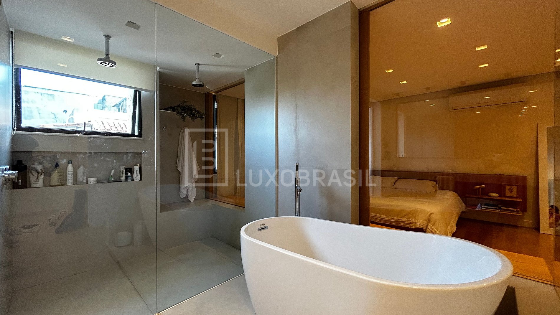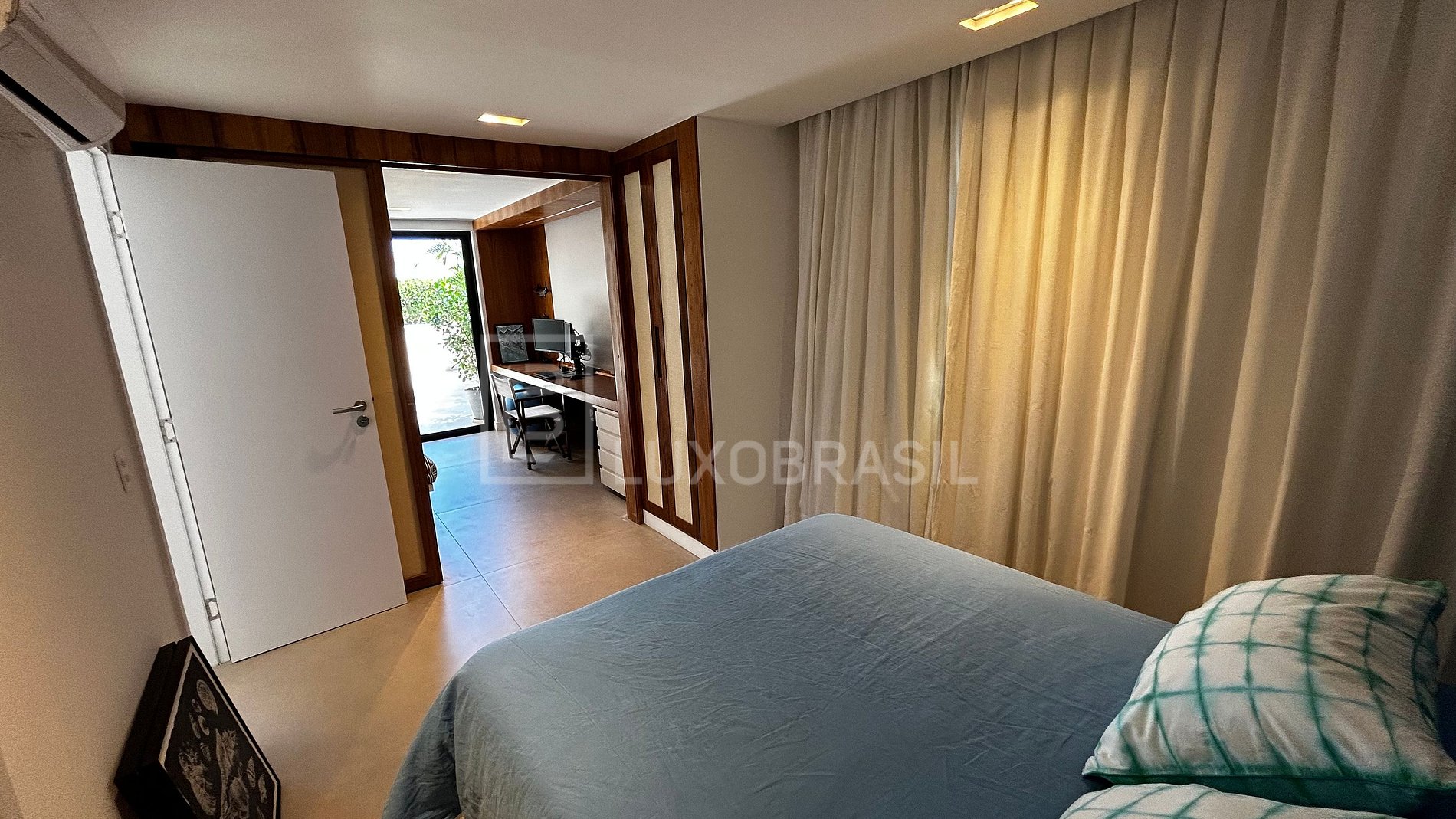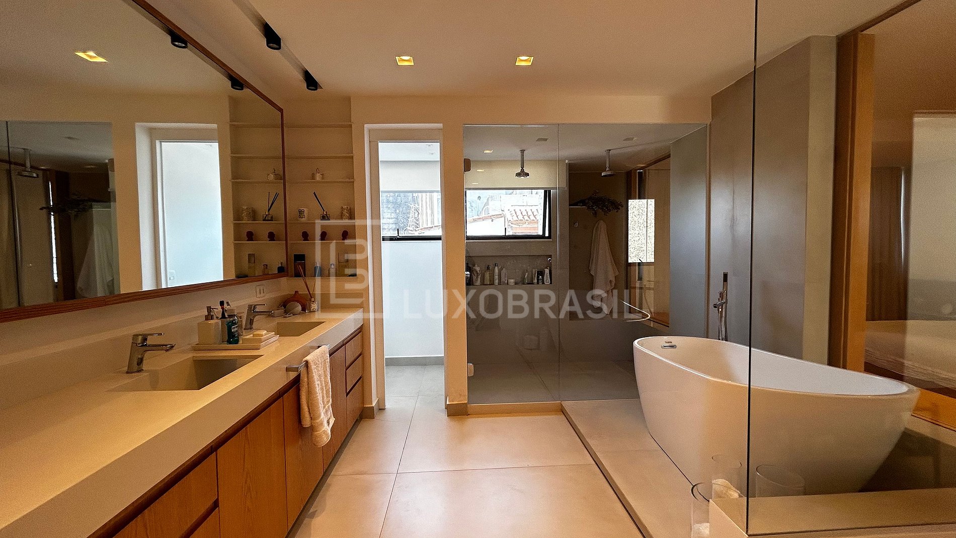 O segundo andar é um espetáculo à parte: conta com sala de TV, espaço gourmet completo, sauna, piscina privativa com vista encantadora para a Pedra da Gávea e uma suíte adicional integrada a um escritório e espaço de treino. Ideal para quem valoriza conforto, lazer e produtividade em casa.