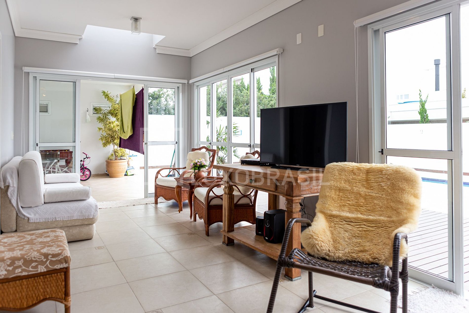 Construída com um espaço generoso de 350 m² de área privativa, oferece uma atmosfera acolhedora e pitoresca, seja para ler um livro na aconchegante sala de estar ou para curtir com amigos e família na área da piscina e churrasqueira.
