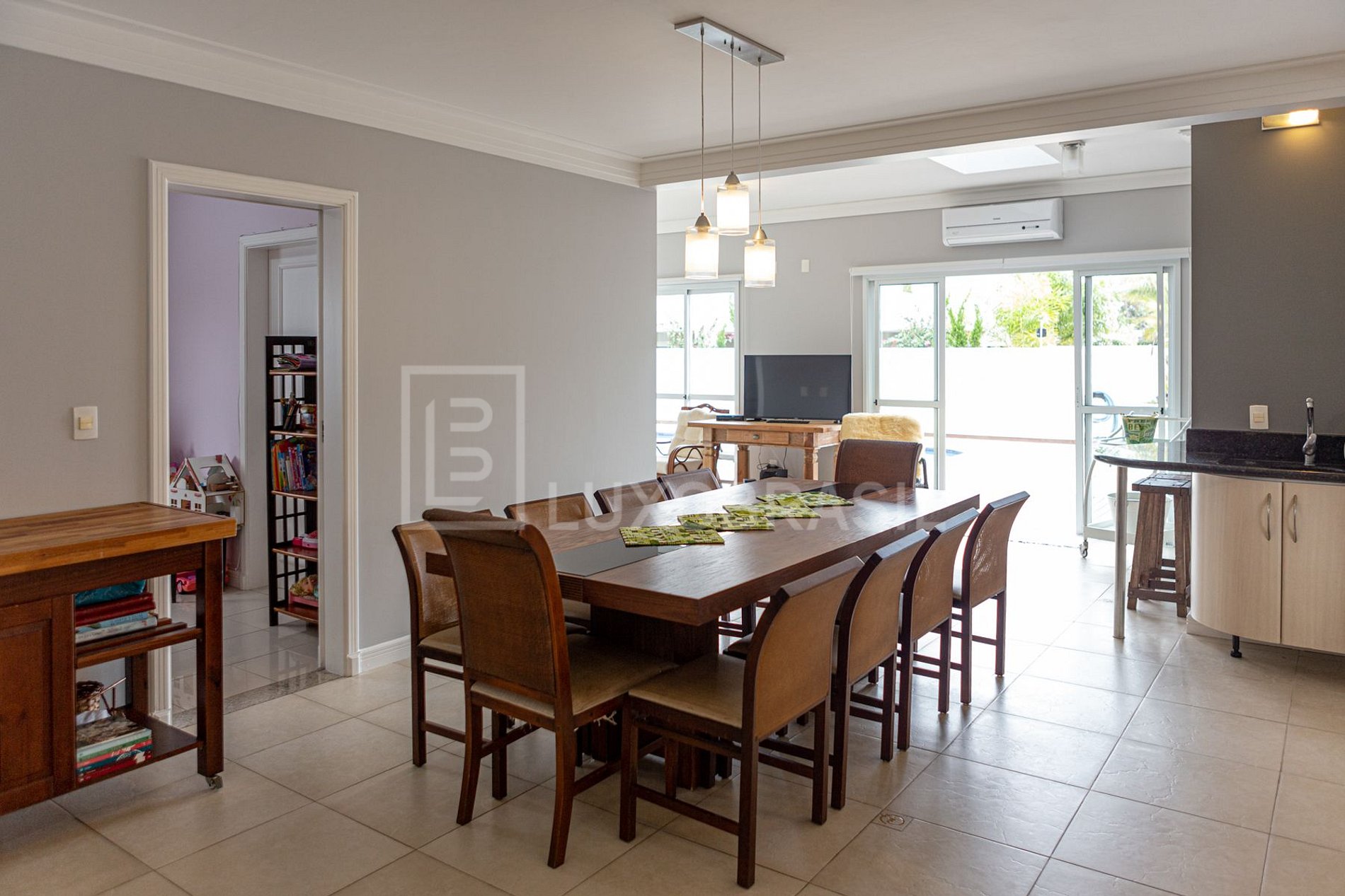 Construída com um espaço generoso de 350 m² de área privativa, oferece uma atmosfera acolhedora e pitoresca, seja para ler um livro na aconchegante sala de estar ou para curtir com amigos e família na área da piscina e churrasqueira.