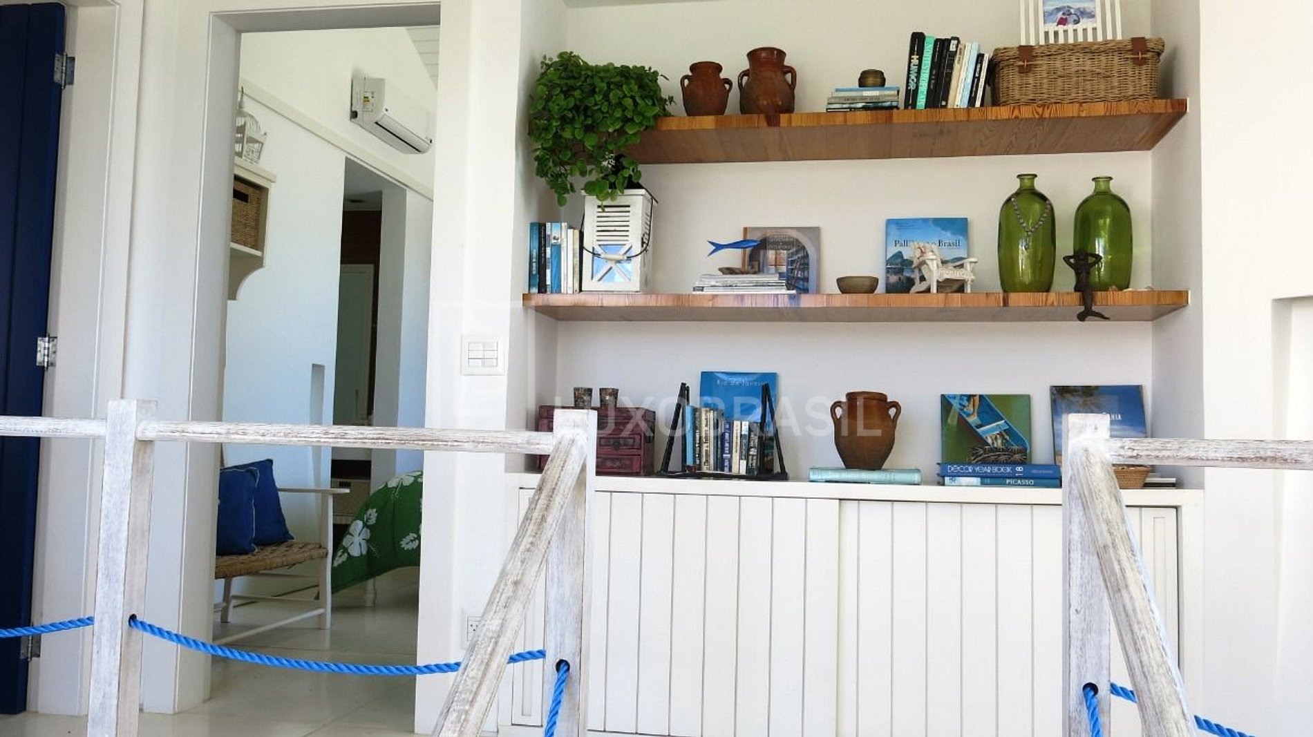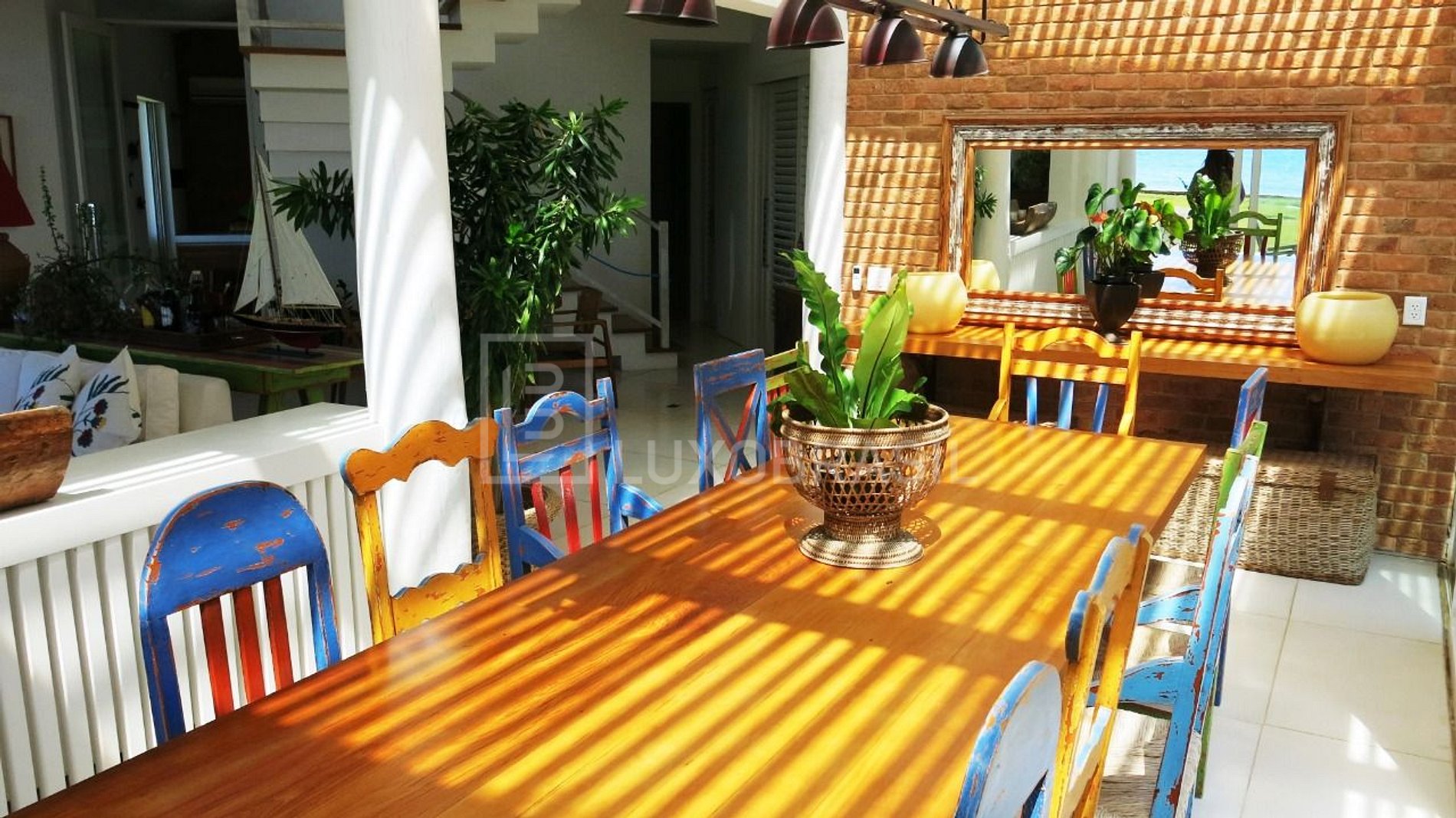 Com 05 amplas suítes, todas com ar-condicionado, espaçosa sala de estar com vista mar, sala de tv, sala de jantar com mesa para10 lugares, cozinha no estilo americano totalmente equipada e adega.