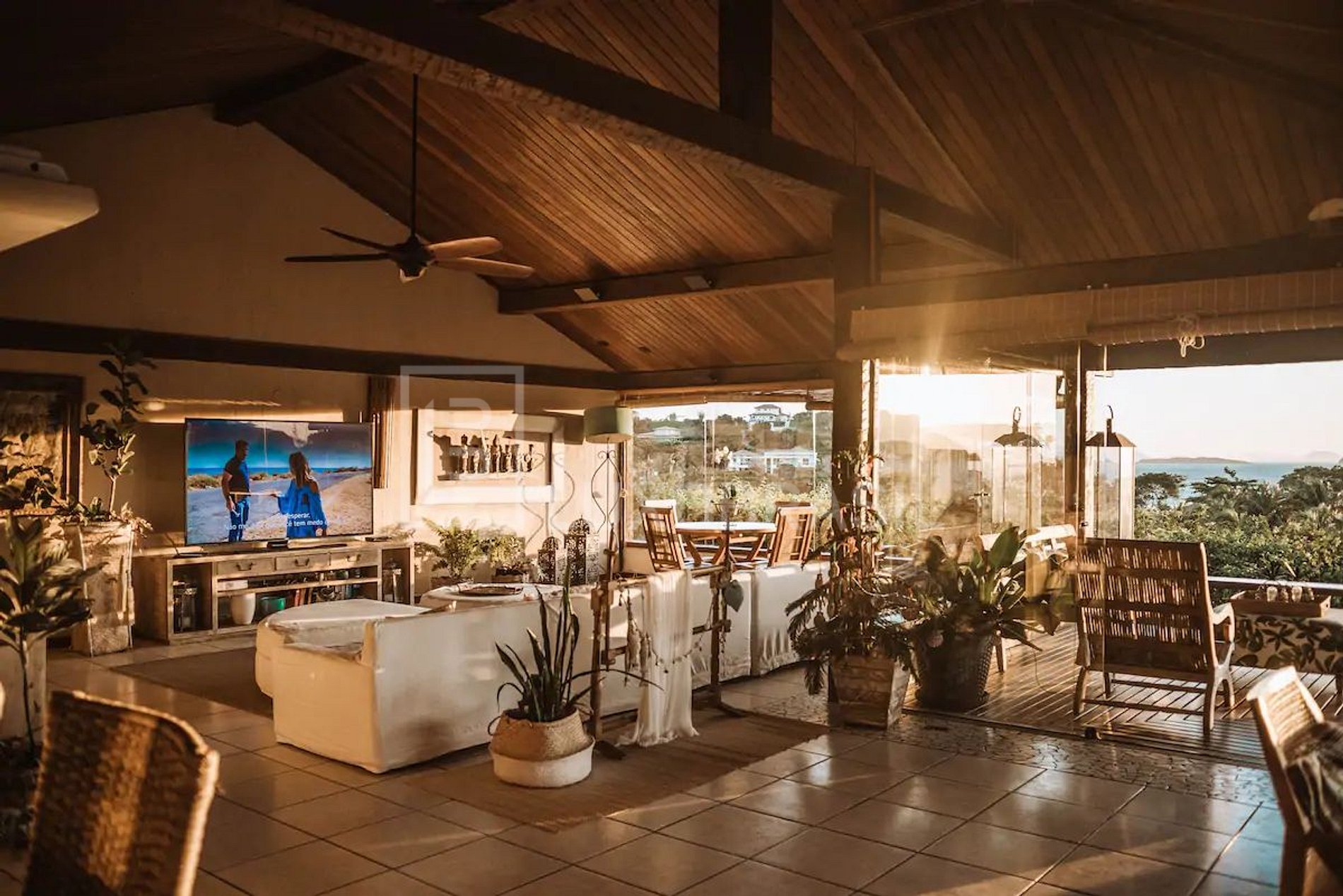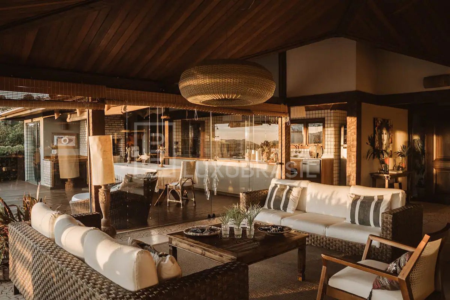 Todos os cômodos da casa principal com vista para o mar. A casa é composta por 07 amplas suítes, todas climatizadas com ar-condicionado, uma ampla sala em 03 ambientes, onde a sala de estar se conecta com a sala de jantar e a sala de TV, sala de televisão possui uma poltrona para 10 pessoas com Smart TV de 75 '4K com Netflix. Um lugar ideal para relaxar a tarde quando o sol se põe. Cozinha totalmente equipada, com dupla circulação, interligando a sala principal e ao deck externo. Além de uma vista incrível para o mar!